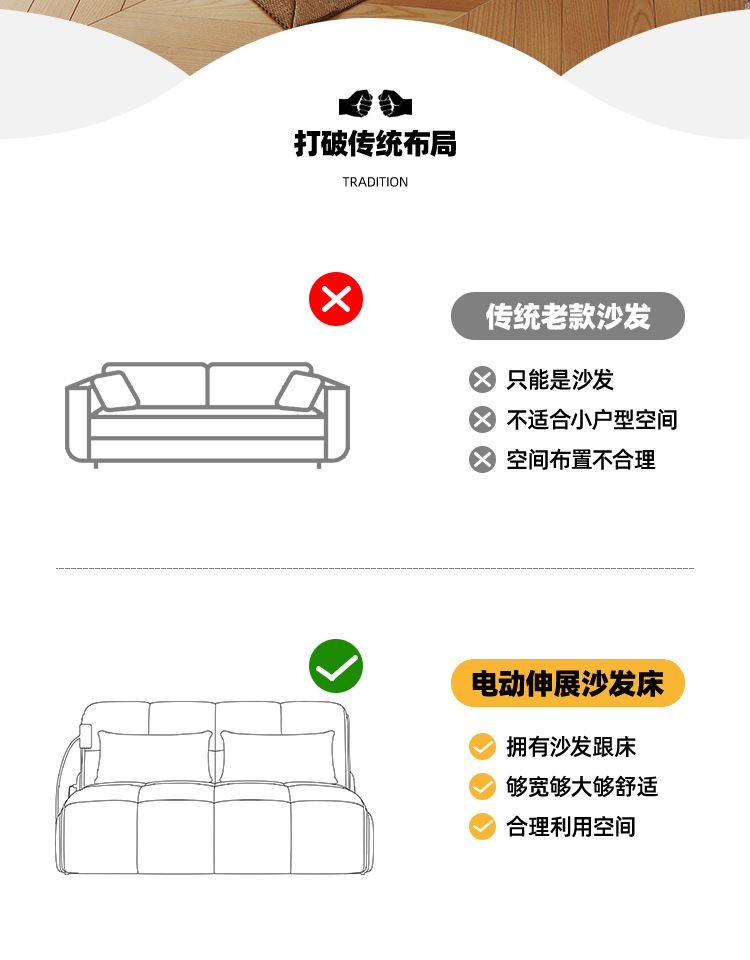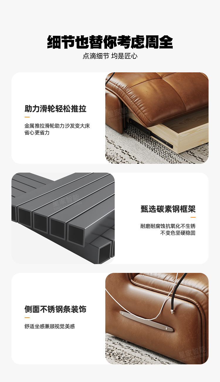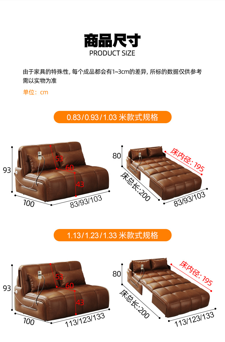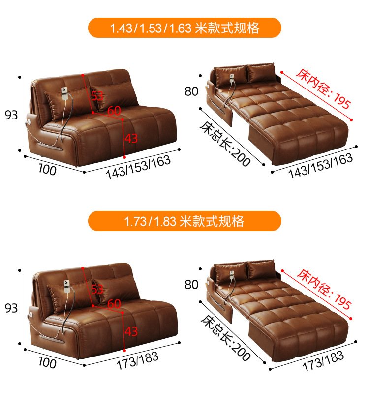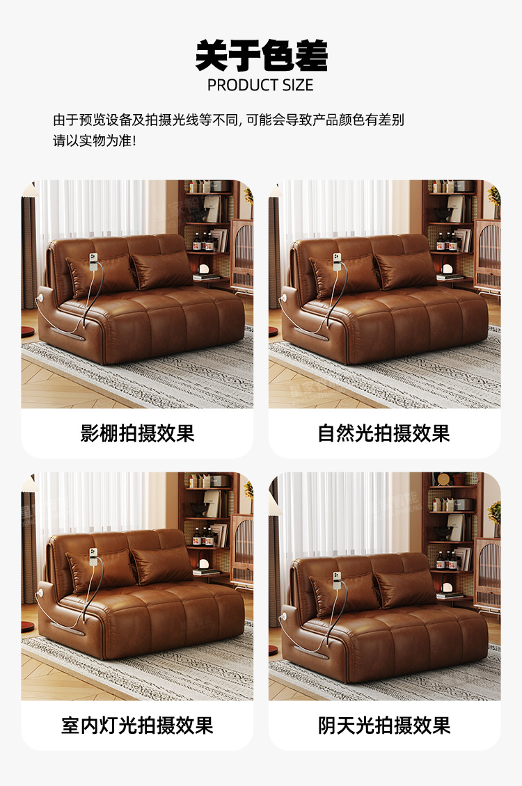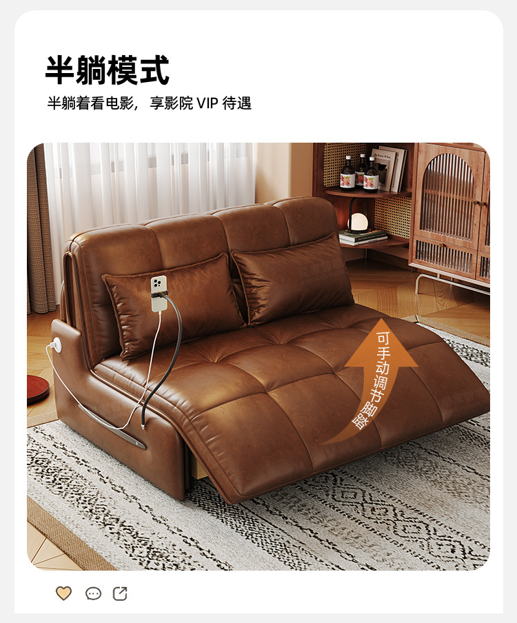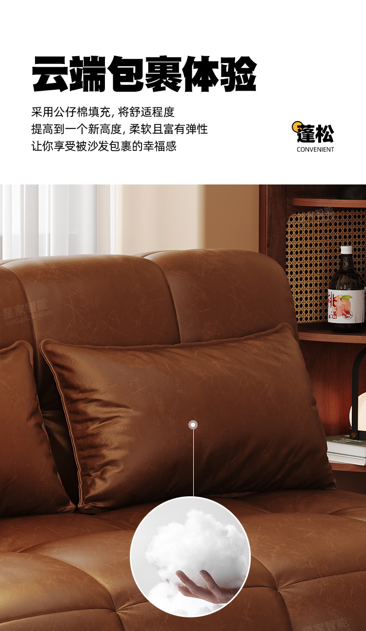 지능형 전기 소파 침대 접이식 이중 목적 2025 새로운 다기능 소형 아파트 거실 기름칠 왁스 스킨 빗 침대스토어 가기