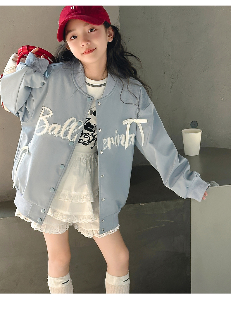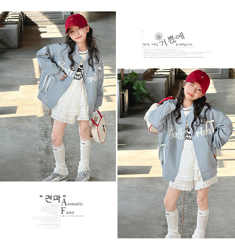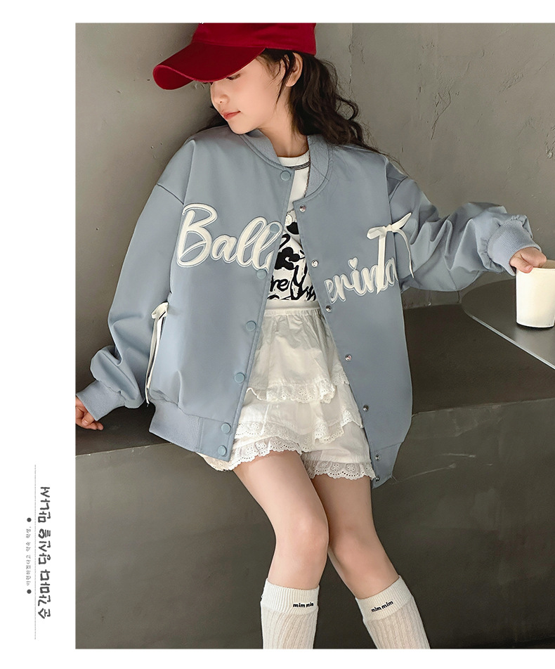 여자 아메리칸 스타일 레트로 레터 재킷 2025 봄 새로운 한국 스타일 느슨한 디자인 센스 보우 야구 세트 트렌디스토어 가기