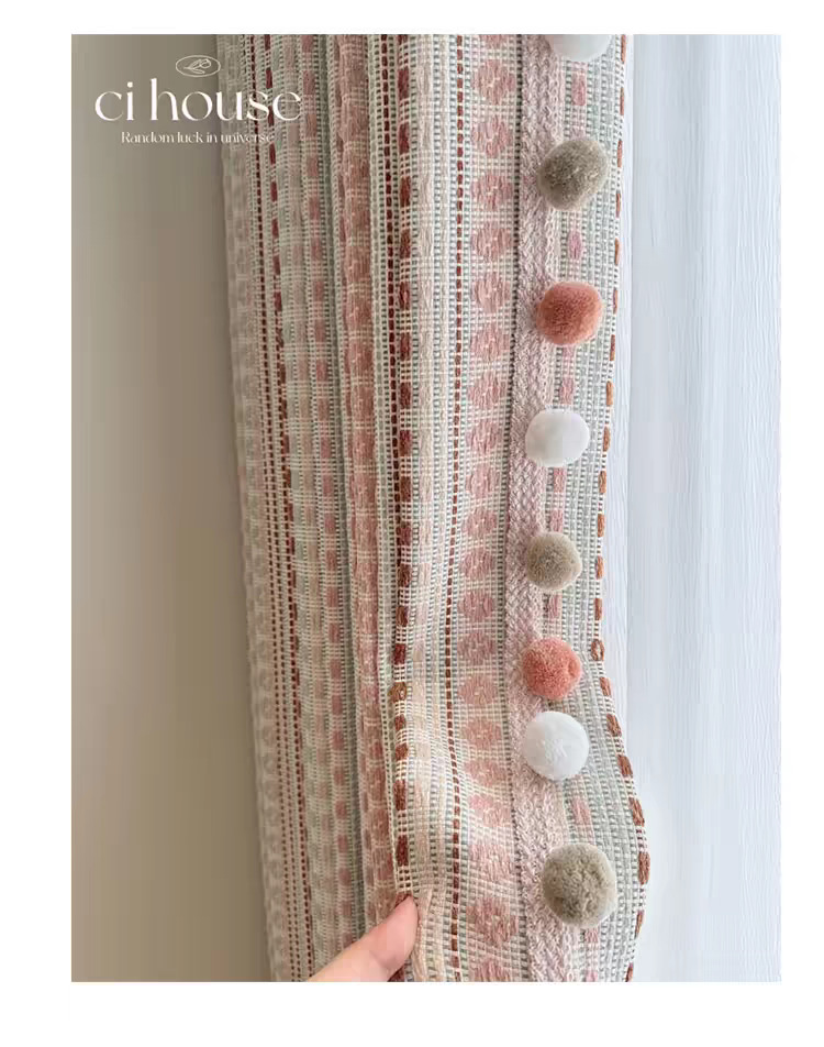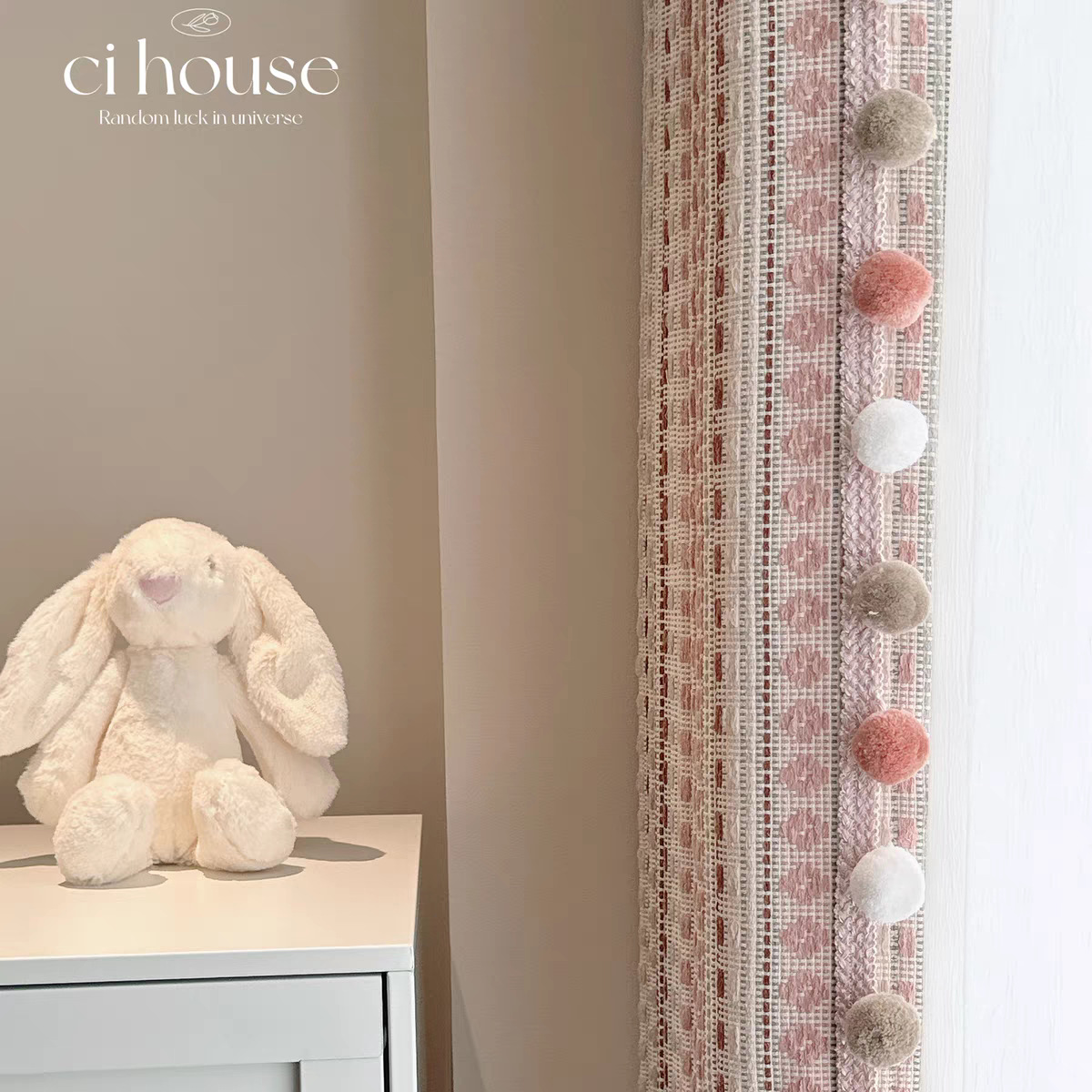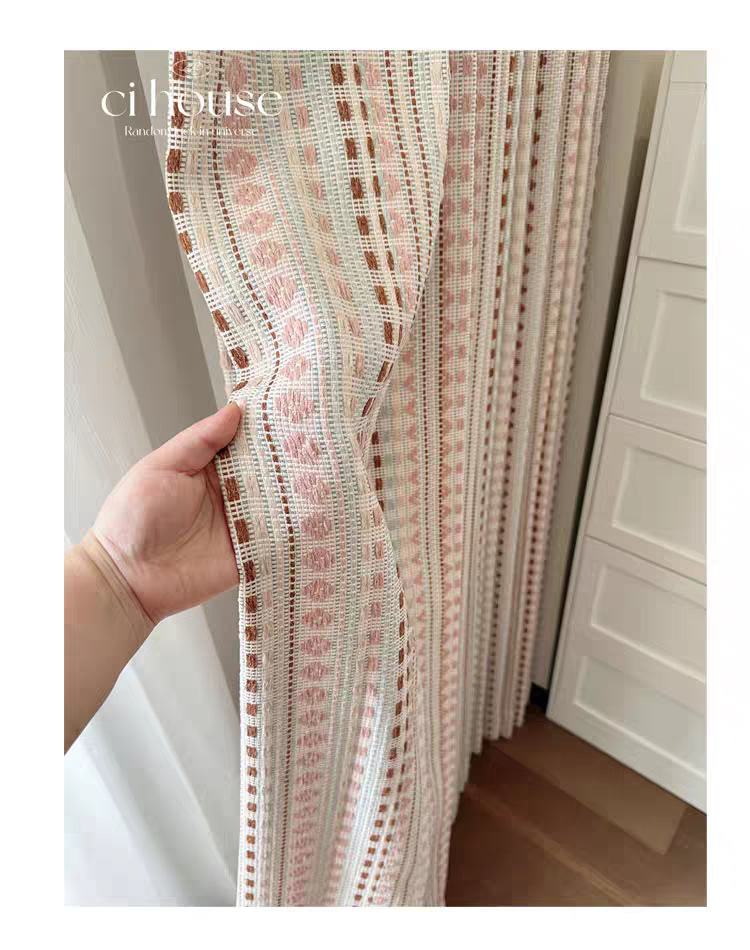 페어 아일랜드 원사 염색 자카드 커튼 로맨틱 도파민 어린이 방 빛 럭셔리 프랑스 스타일 레트로 새 스타일 소녀 침실