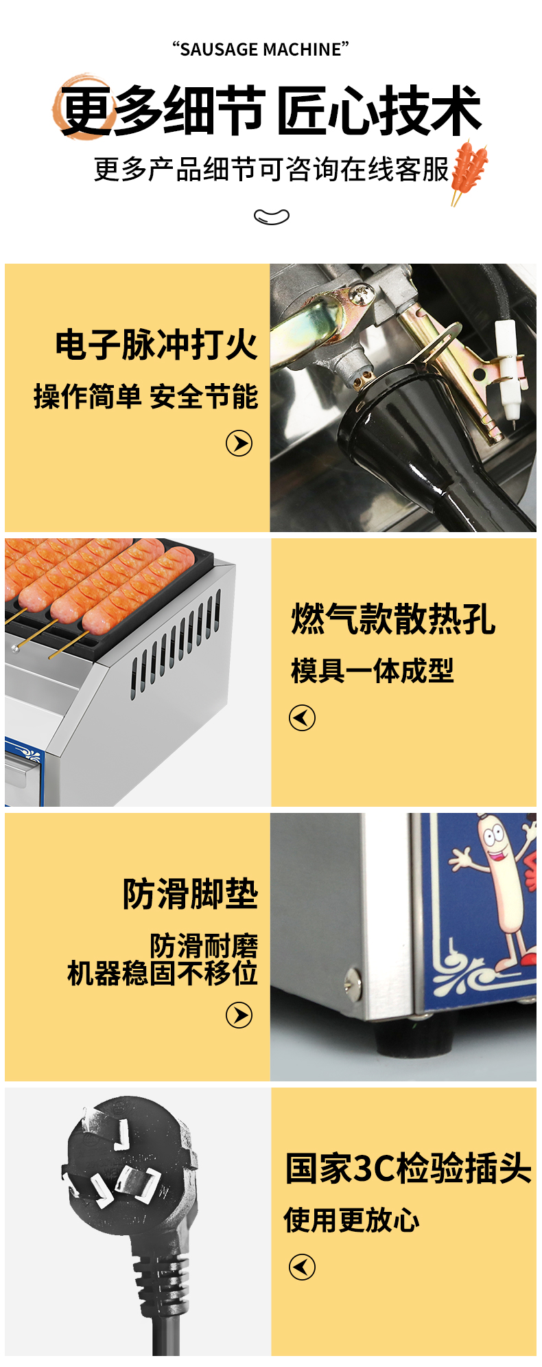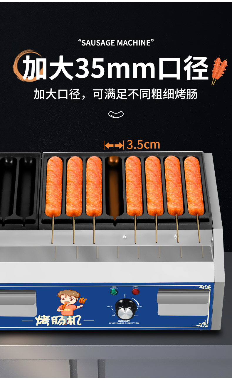 베이킹 소시지 기계 상업용 전기 완전 자동 바삭한 전분 소시지 베이킹 머신 야시장 매점 길가 마구간 소시지 기계 플러그 전기 스토브