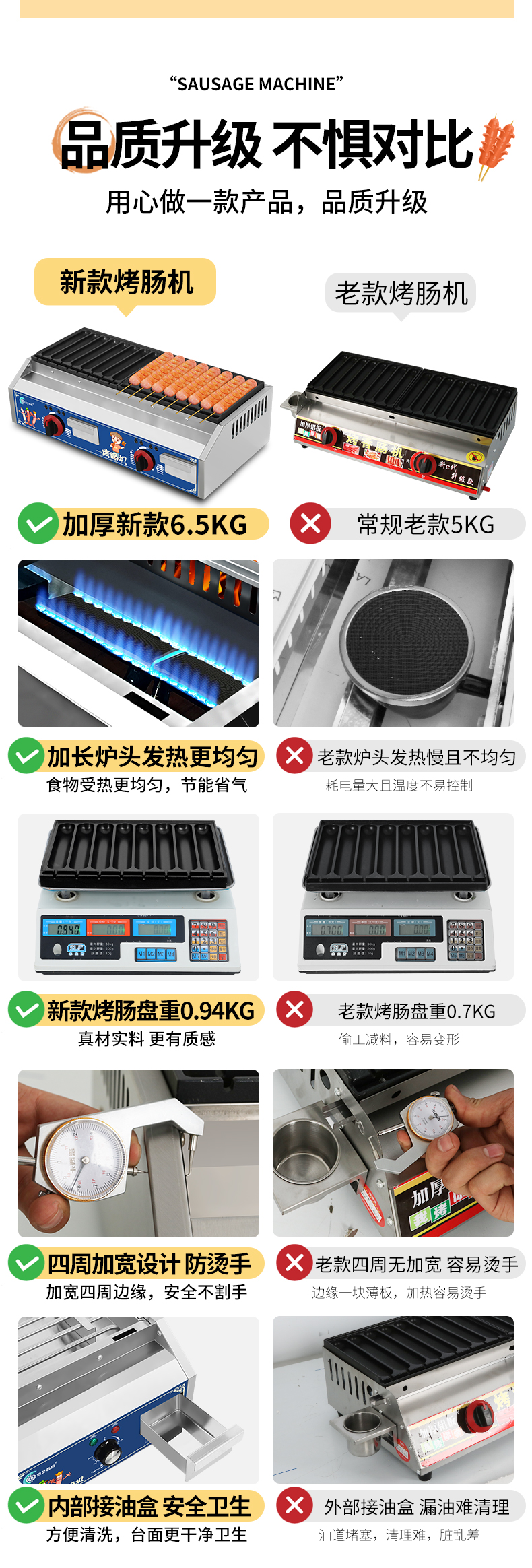 • 업그레이드된 [접이식 A형 카트] 가스 16구 소시지 그릴||화염정지 보호