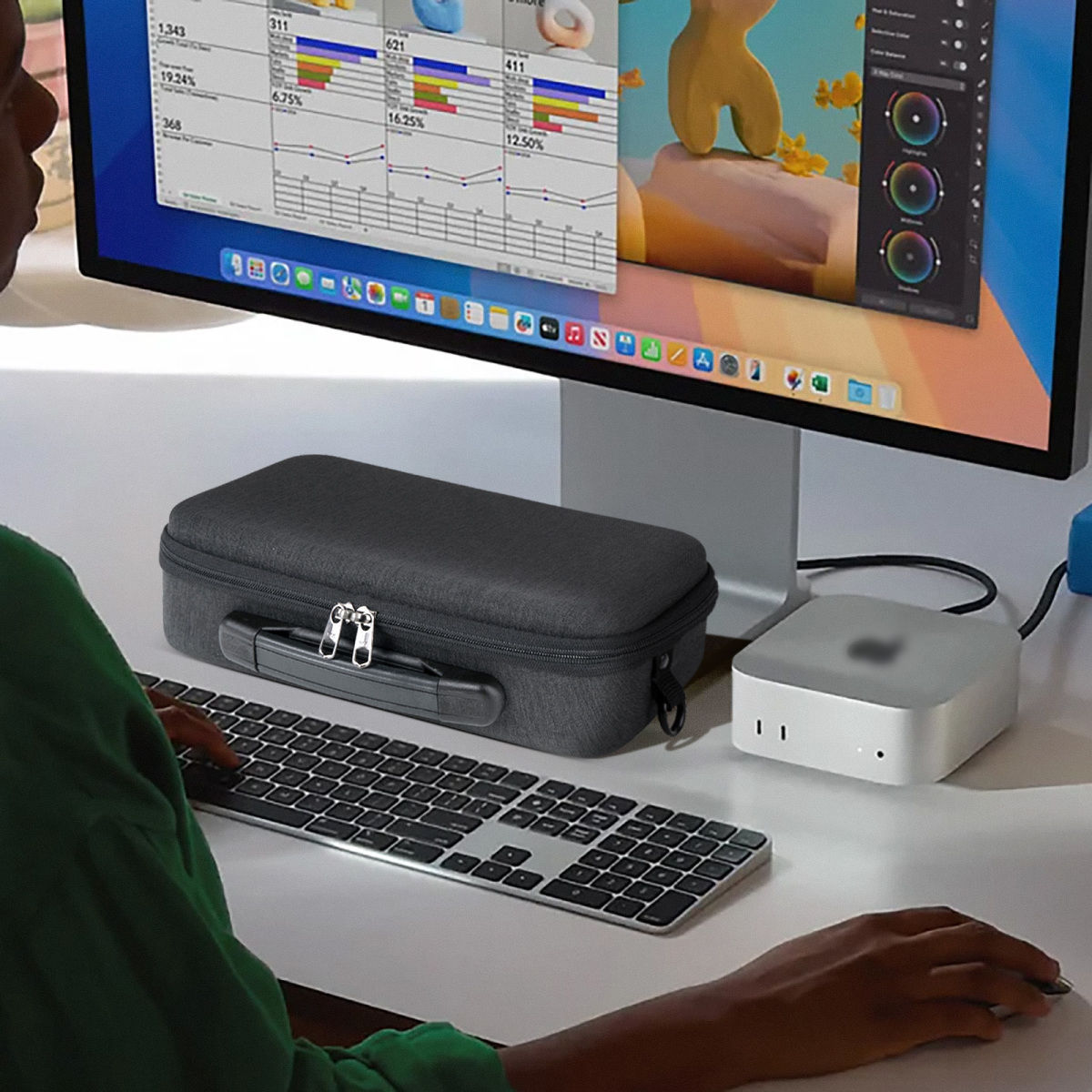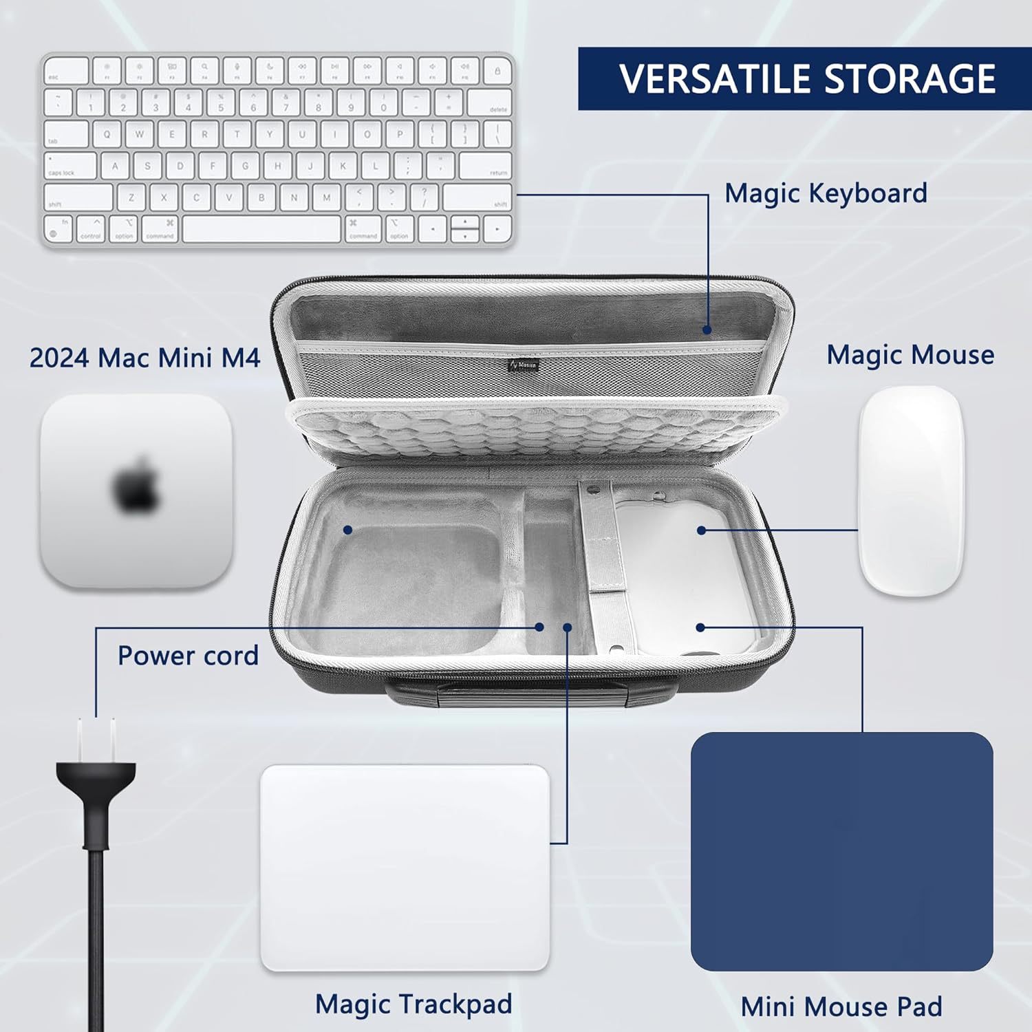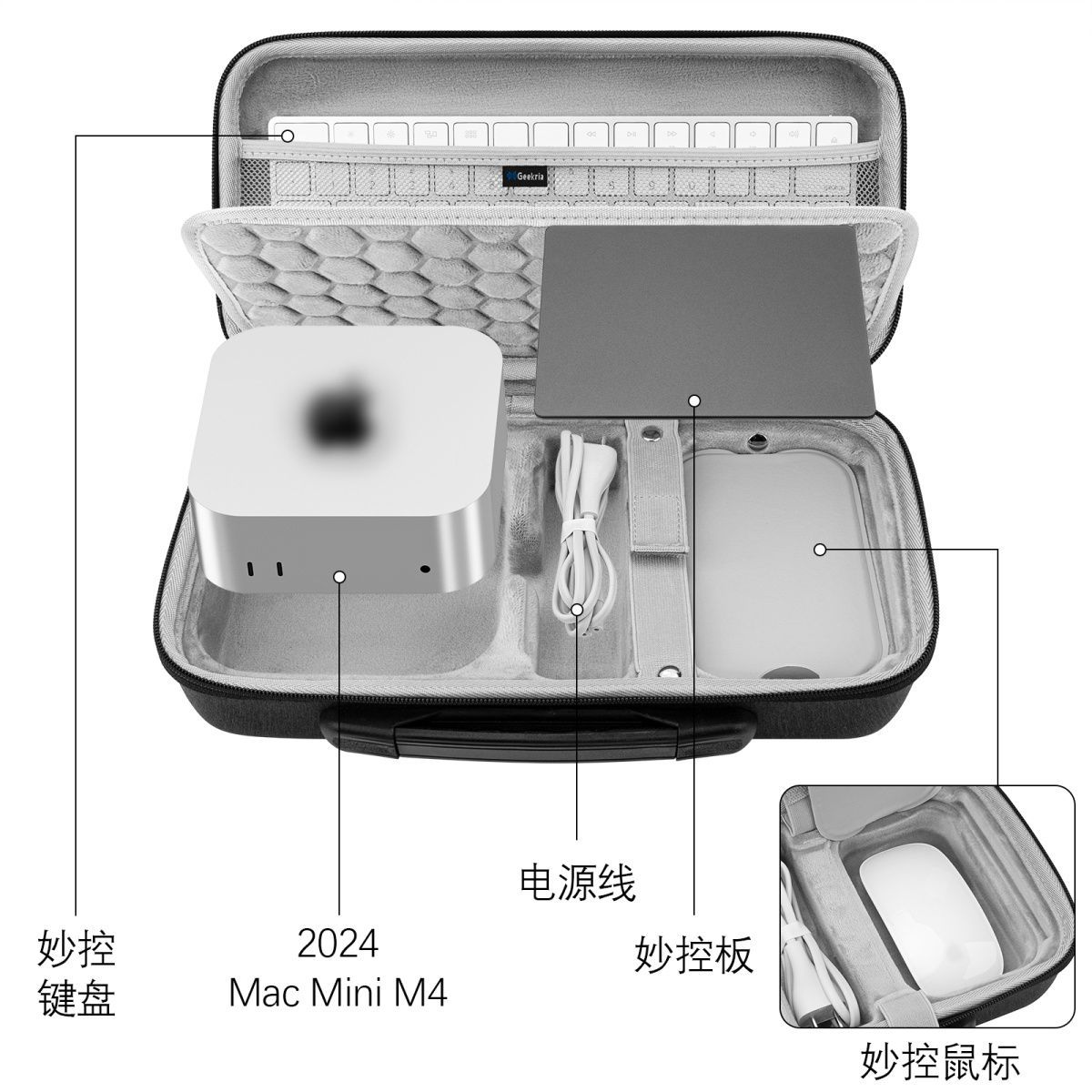 【产品品名】Mac Mini M4/M4pro收纳包键鼠妙控板便携一体硬壳收纳盒