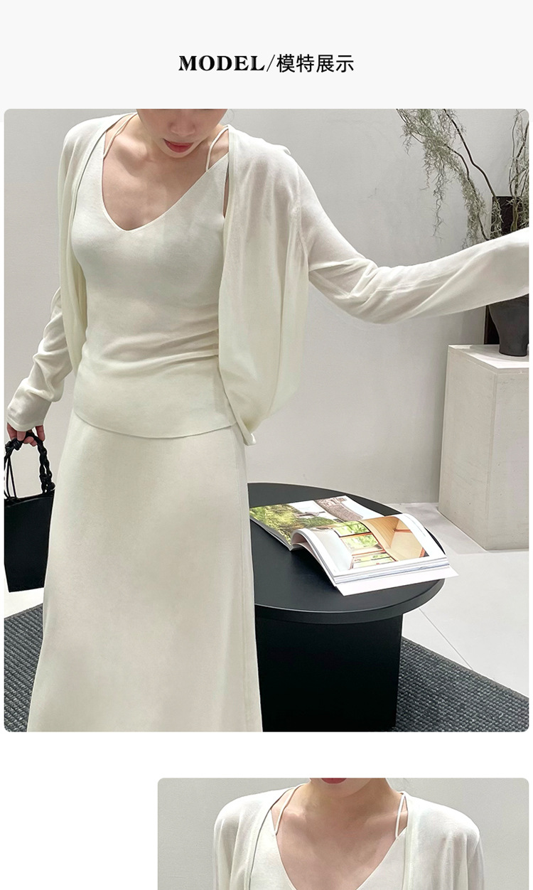 텐셀 블렌드 멀 베리 실크 니트 카디건 여성용 얇은 목도리 여름 스커트와 슬링 오버 셔츠 니트 탑