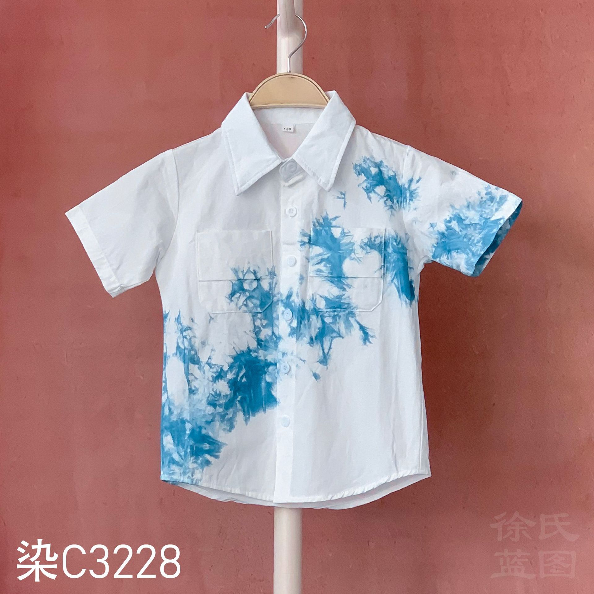 Dali 수제 타이 염색 민족 스타일 소년 반팔 셔츠 여름 여행 청색 염색 어린이 캐주얼 셔츠스토어 가기