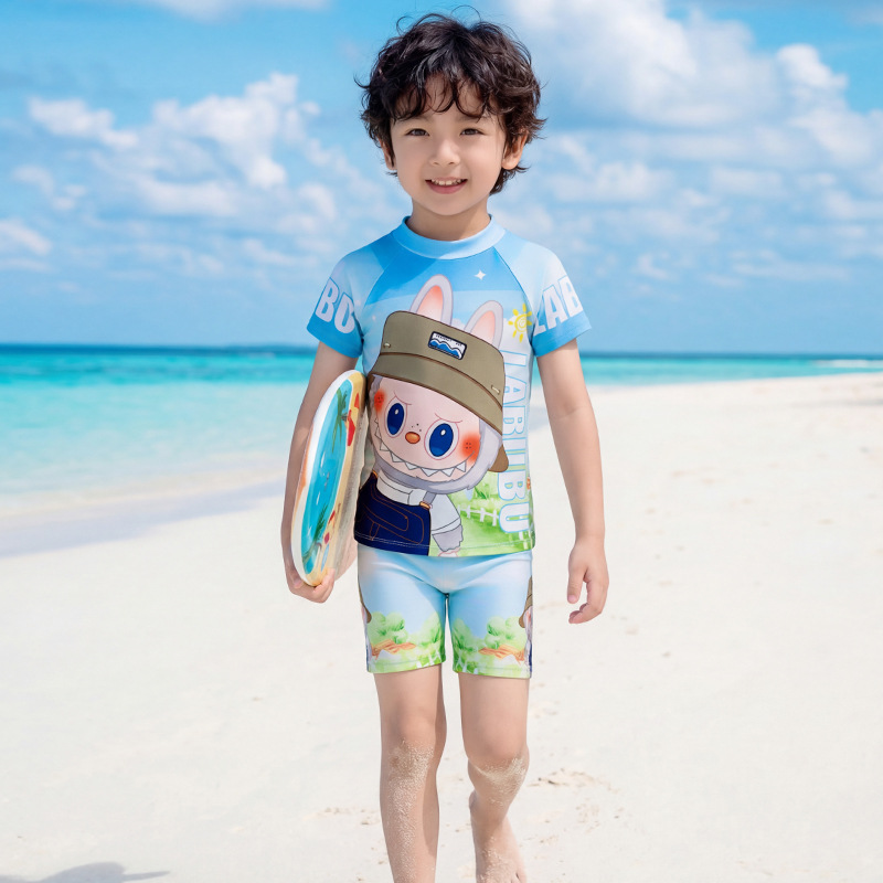 2025 새로운 어린이 수영복 소년 대형, 중소 어린이 분할 수영복 빠른 건조 온천 수영복 세트 트렁크스토어 가기