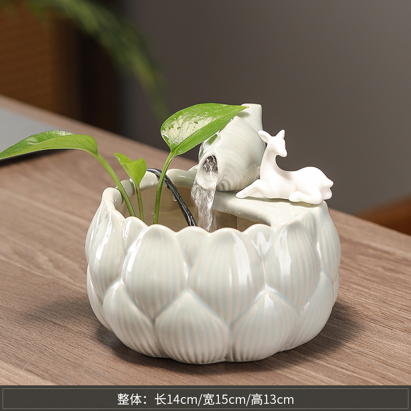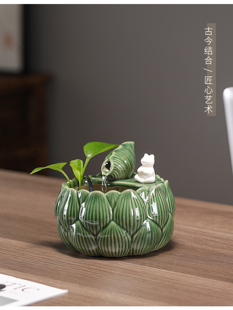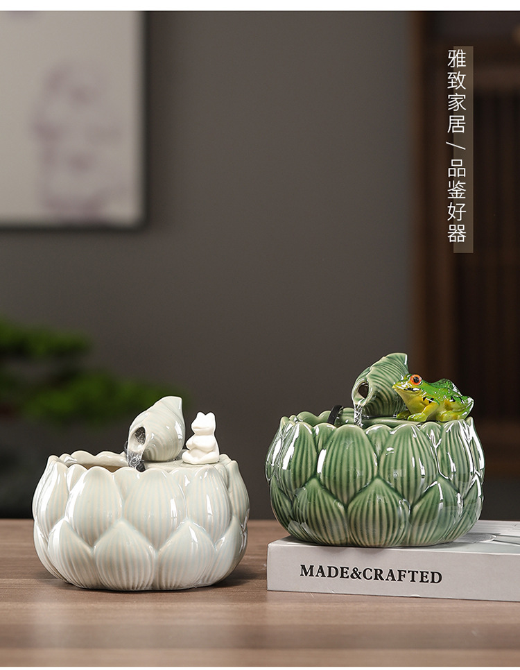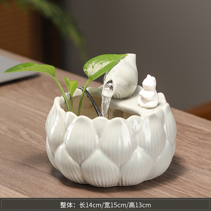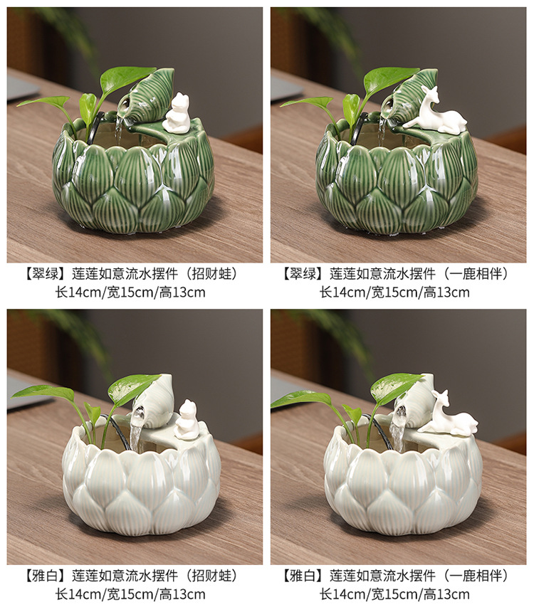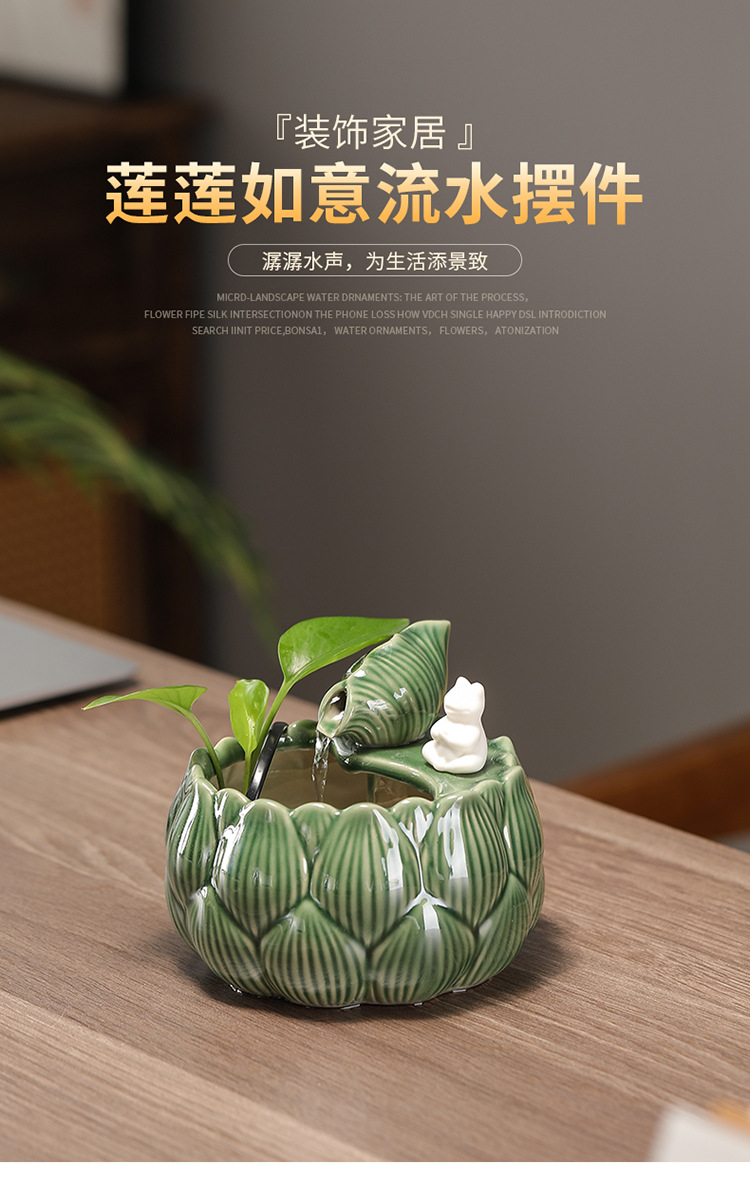 새로운 중국 스타일 부 초대 물 장식품 세라믹 작은 데스크탑 거실 차 테이블 사무실 장식 순환 물 풍경