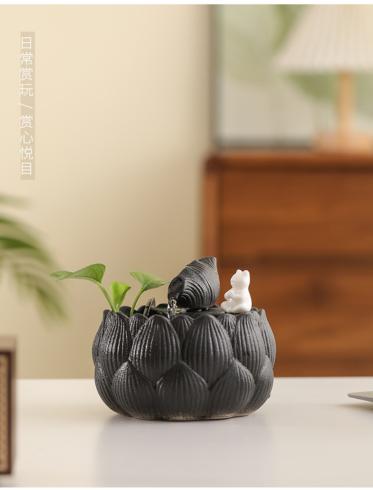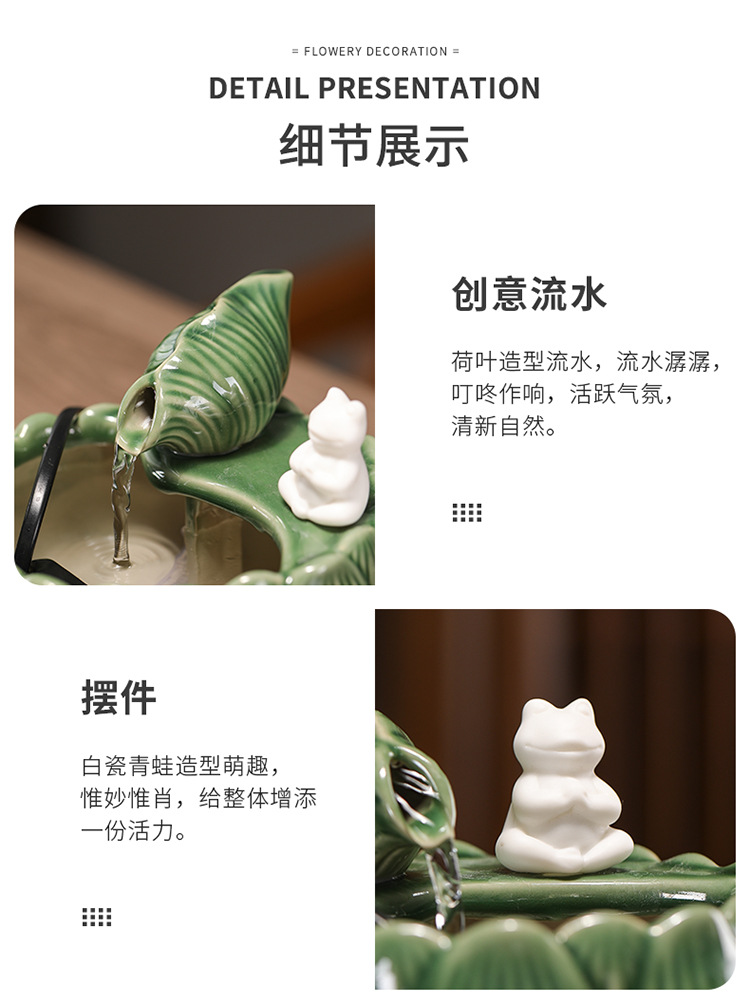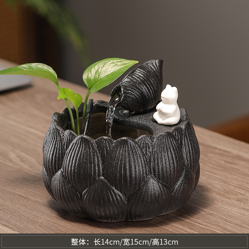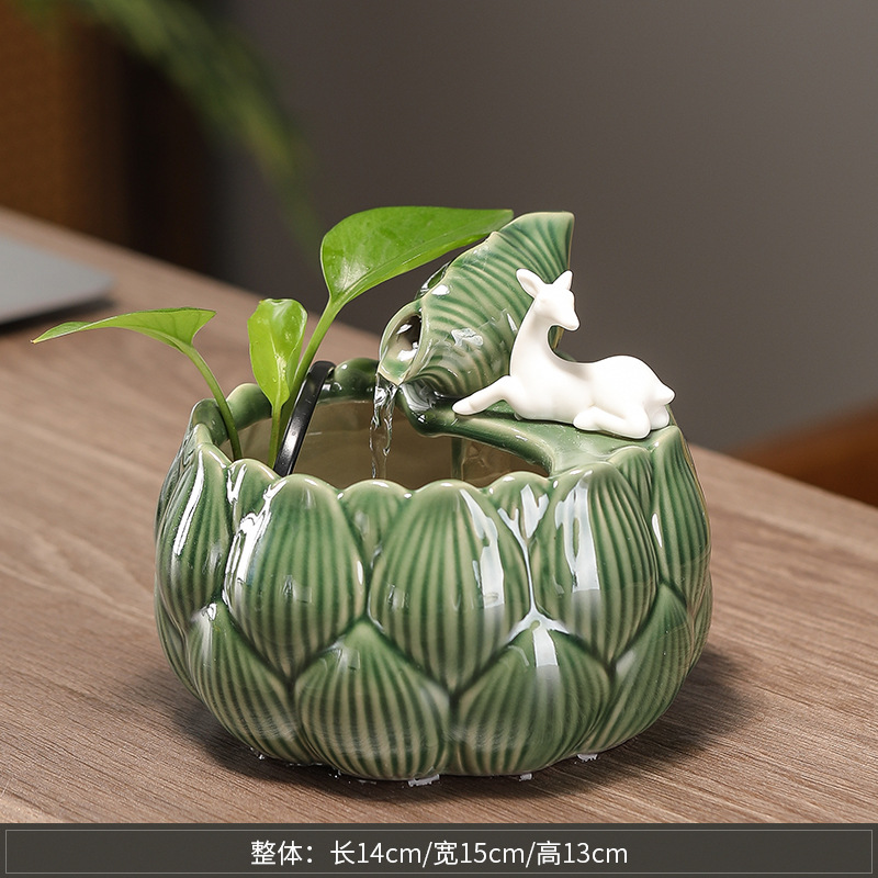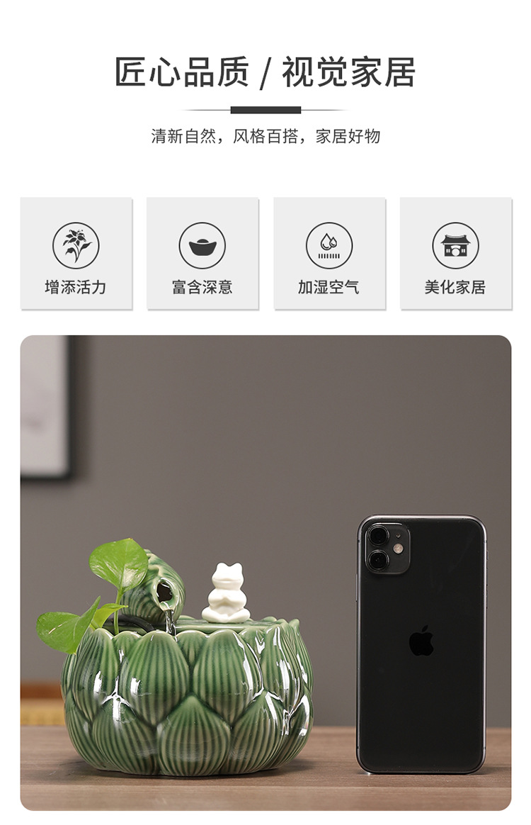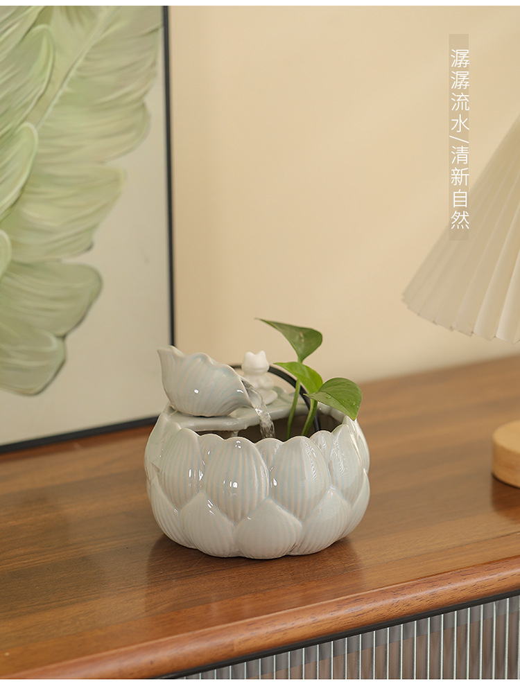 새로운 중국 스타일 부 초대 물 장식품 세라믹 작은 데스크탑 거실 차 테이블 사무실 장식 순환 물 풍경