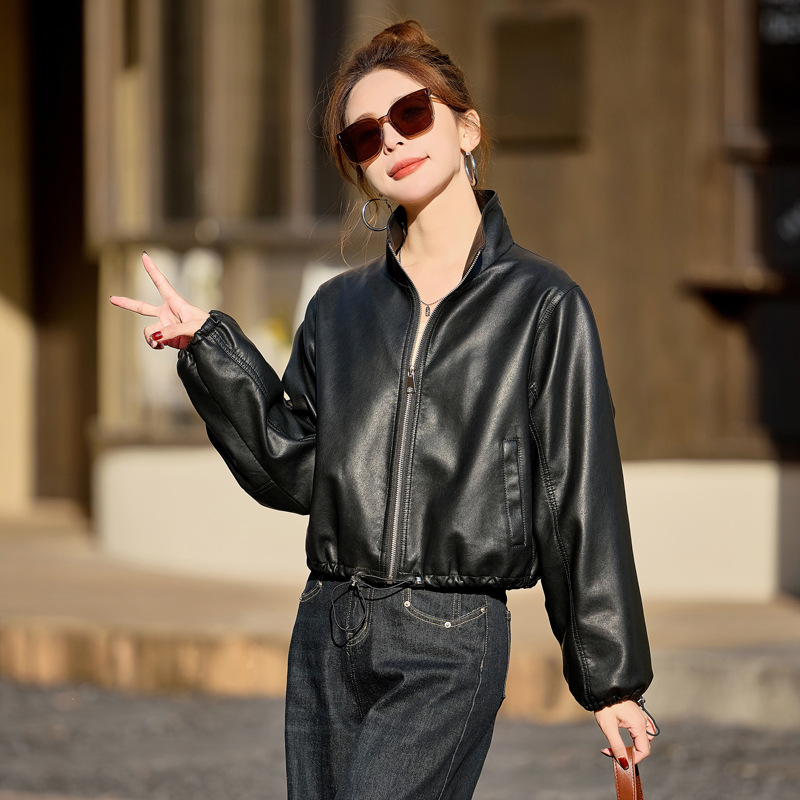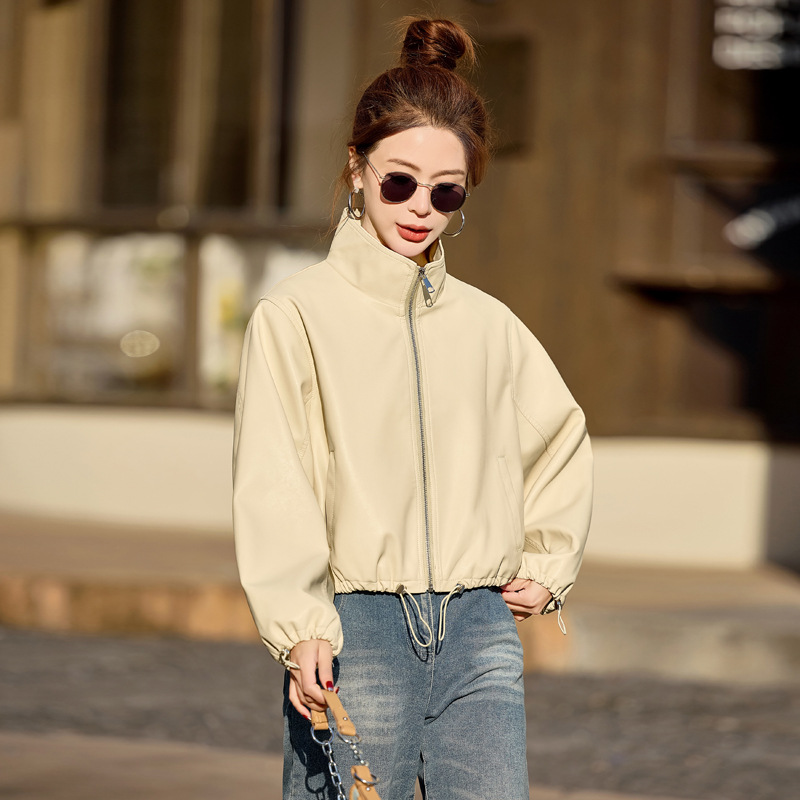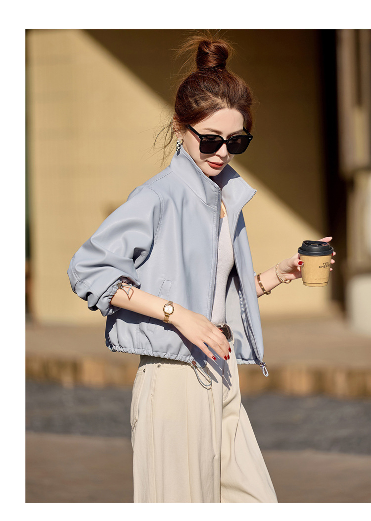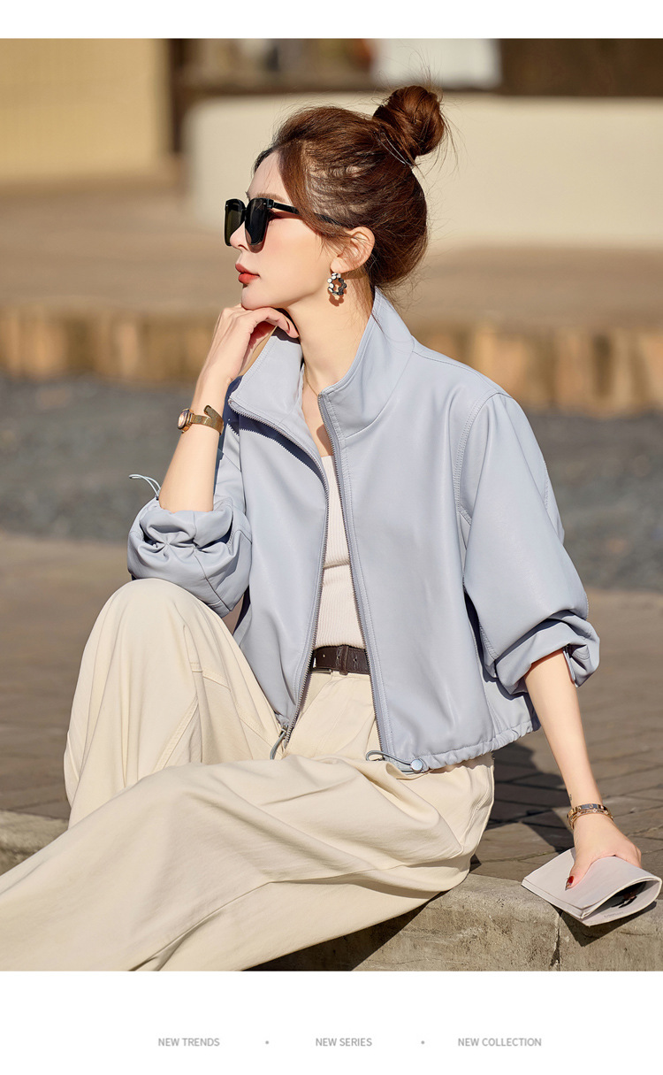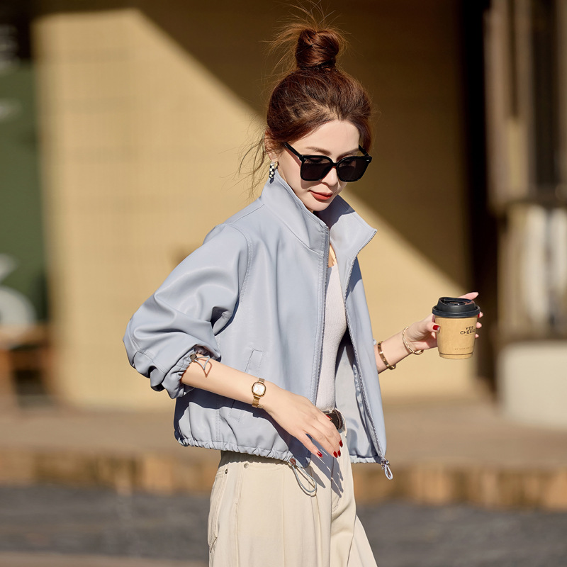 2025 봄 새로운 증오 정품 가죽 여성의 짧은 수입 탑 양가죽 느슨한 칼라 재킷 코트스토어 가기