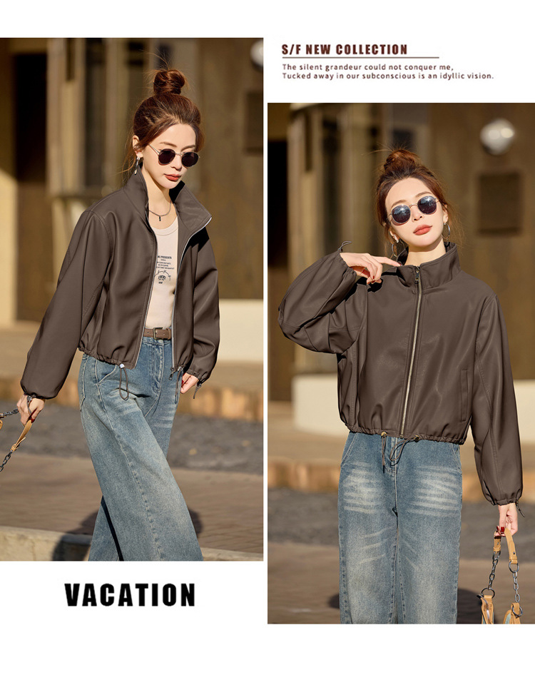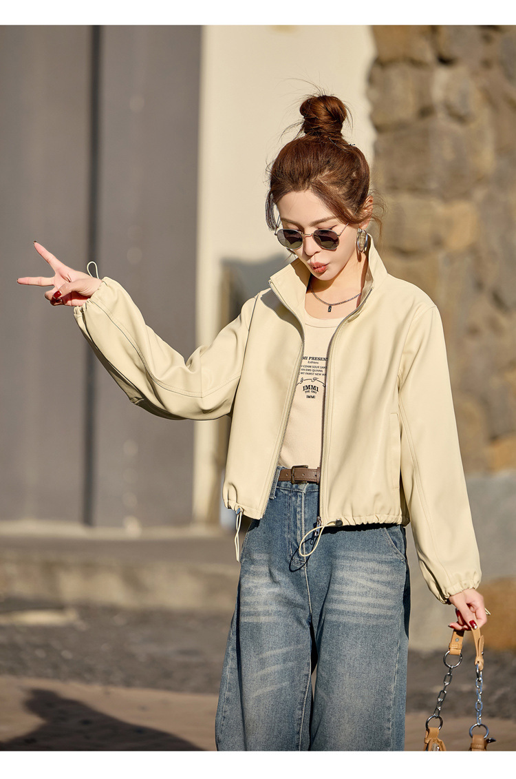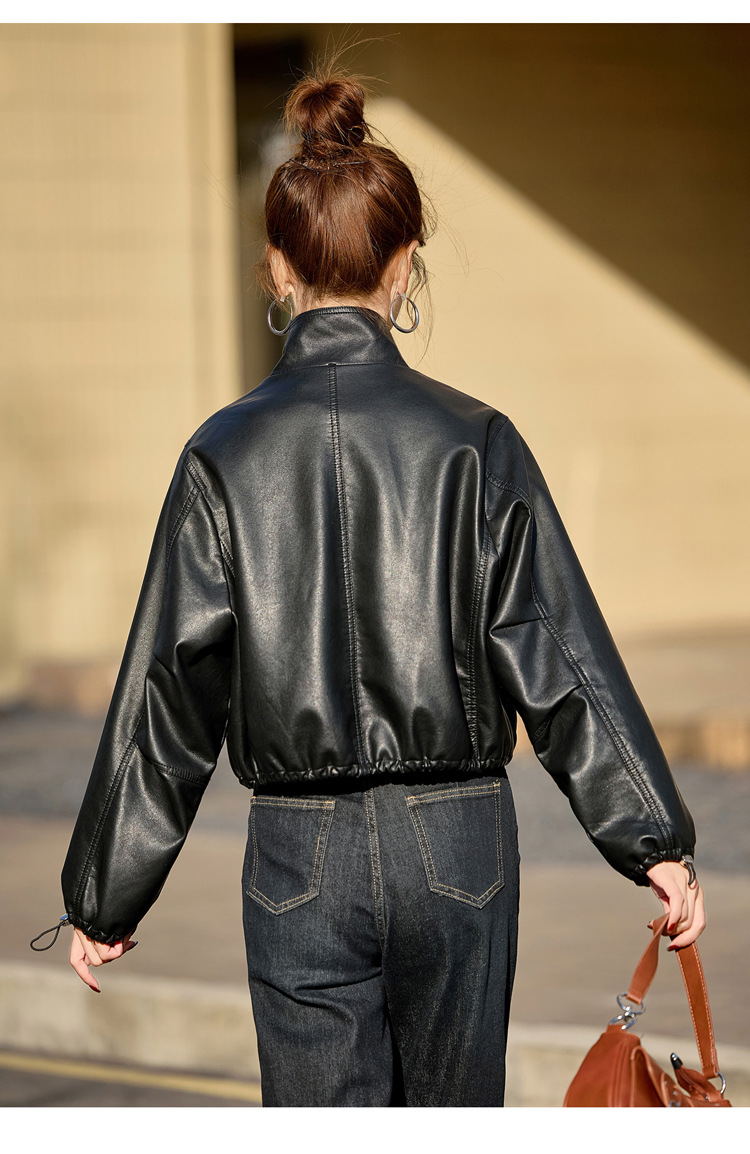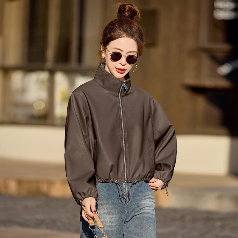 2025 봄 새로운 증오 정품 가죽 여성의 짧은 수입 탑 양가죽 느슨한 칼라 재킷 코트스토어 가기