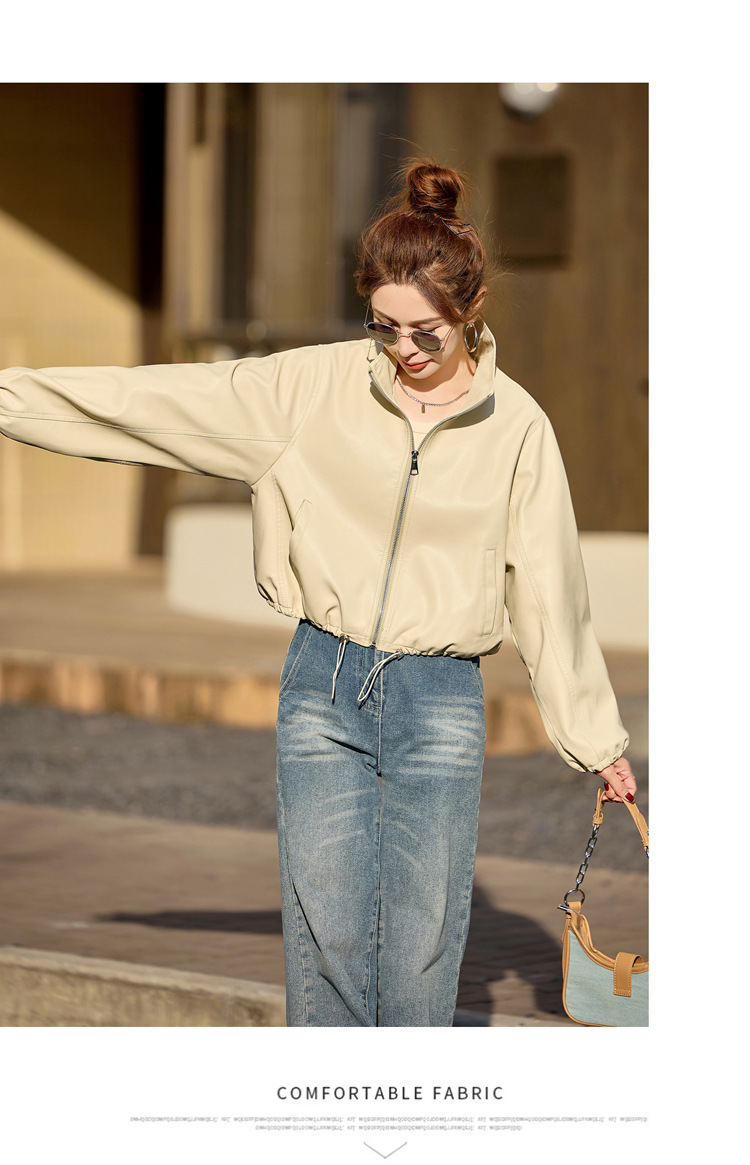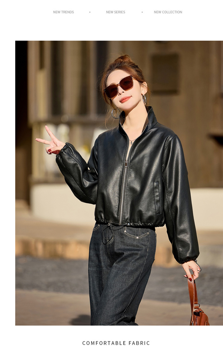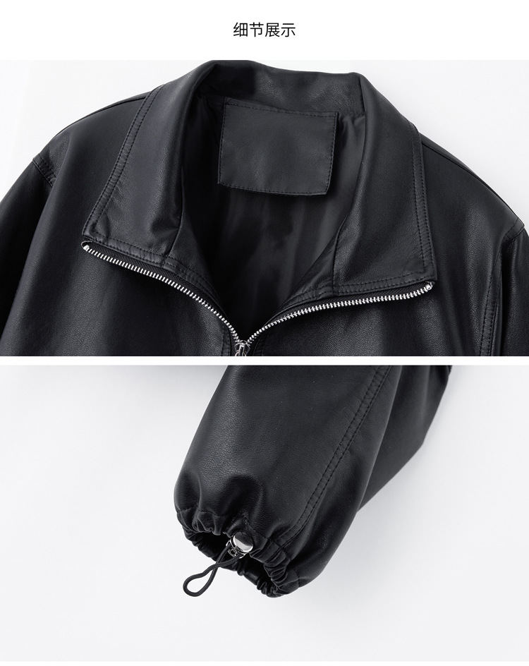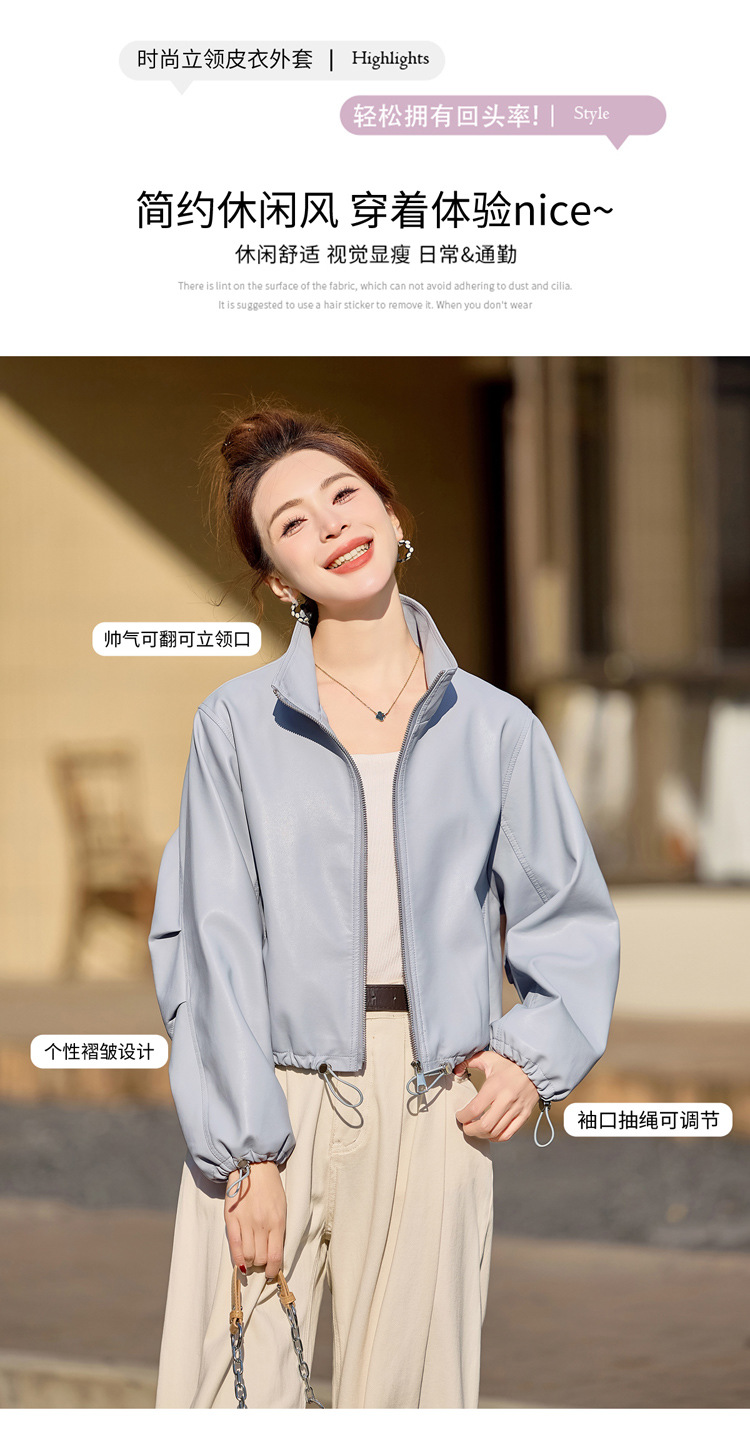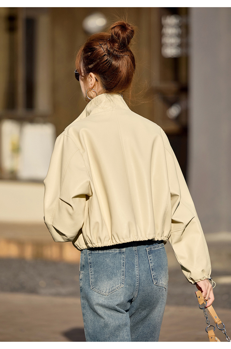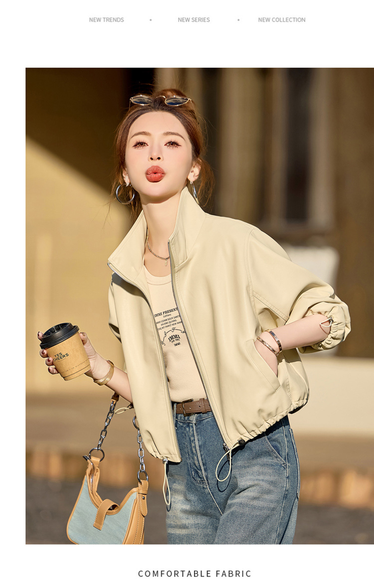 2025 봄 새로운 증오 정품 가죽 여성의 짧은 수입 탑 양가죽 느슨한 칼라 재킷 코트