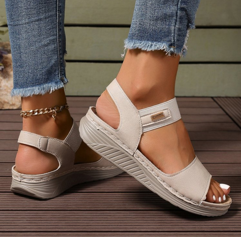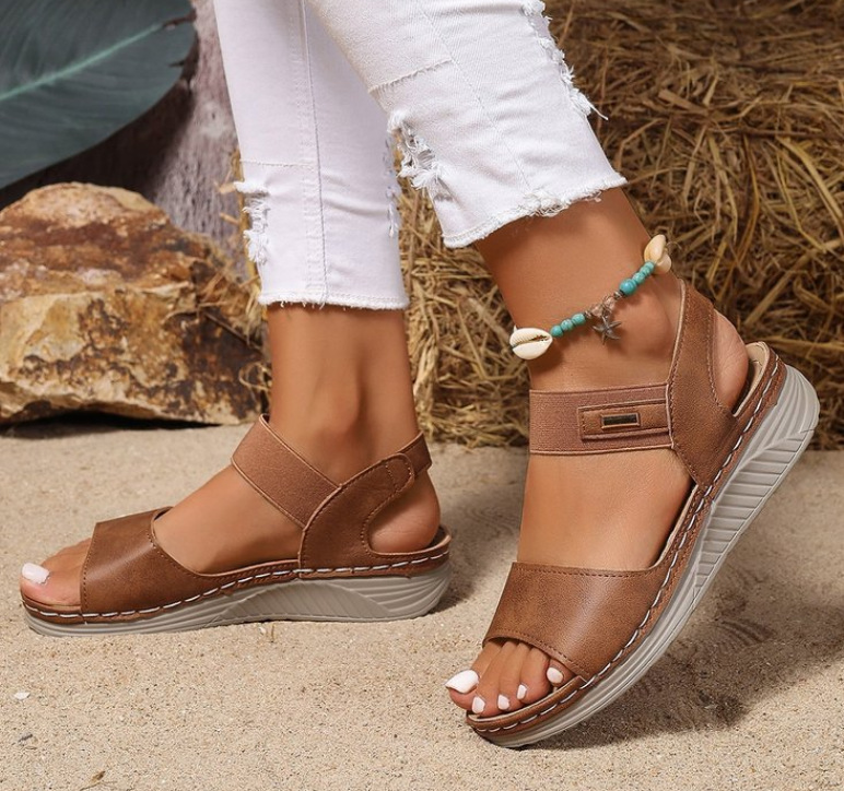 국경 간 대외 무역 플러스 사이즈 플랫 샌들 여성의 2024 년 여름 새로운 복고풍 편안한 캐주얼 샌들 여성스토어 가기