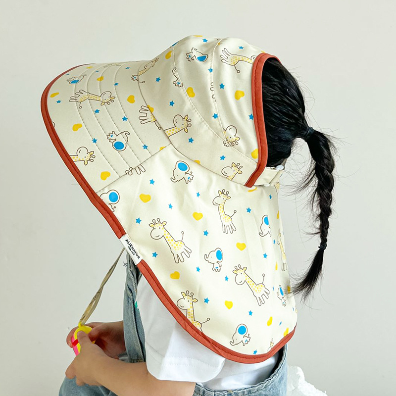 어린 이용 선 스크린 모자 소년 소녀를위한 여름 빈 탑 모자 봄과 여름 목도리 목 보호자는 아기의 햇빛 모자를 위해 큰 코니스를 묶을 수 있습니다