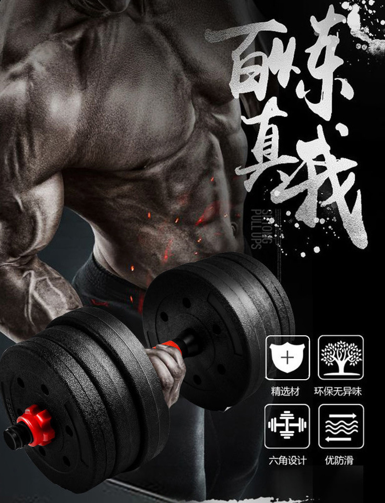 공장 직송 친환경 시멘트 덤벨 조절 가능한 피트니스 장비 세트 조합 바벨 변형 고무 코팅 덤벨 남성용스토어 가기