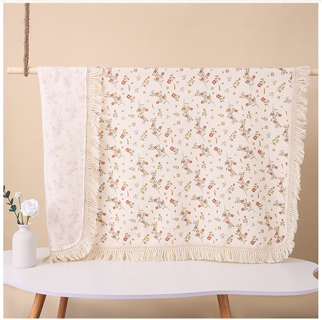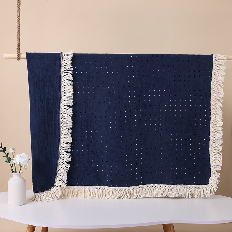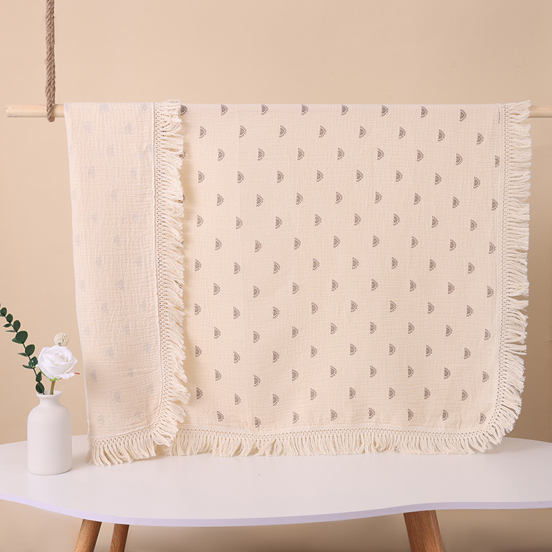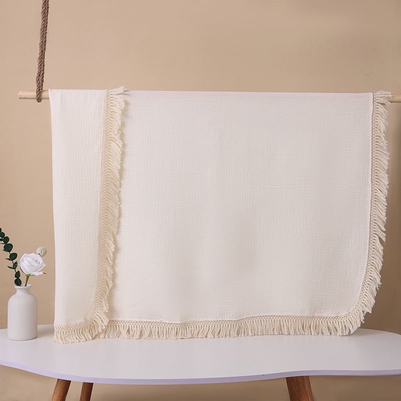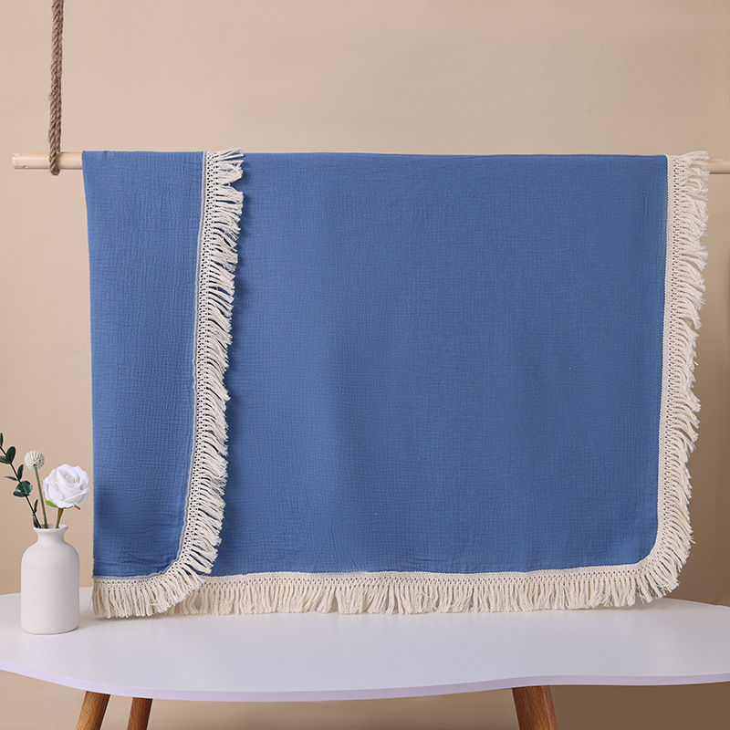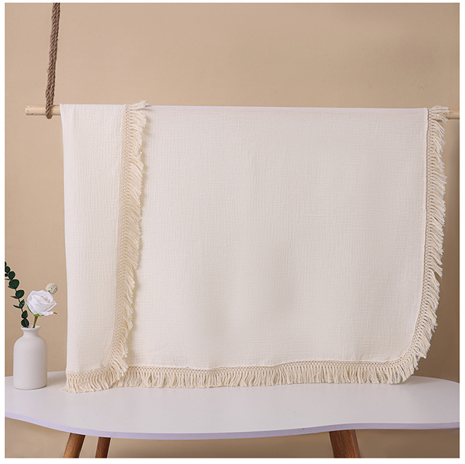 여름 에어컨 퀼트 베이비 유모차 담요 더블 크레페 베이비 타슬 담요 퓨어 코튼 거즈 어린이 랩 타월 담요