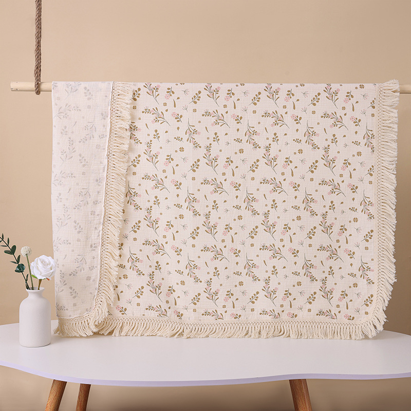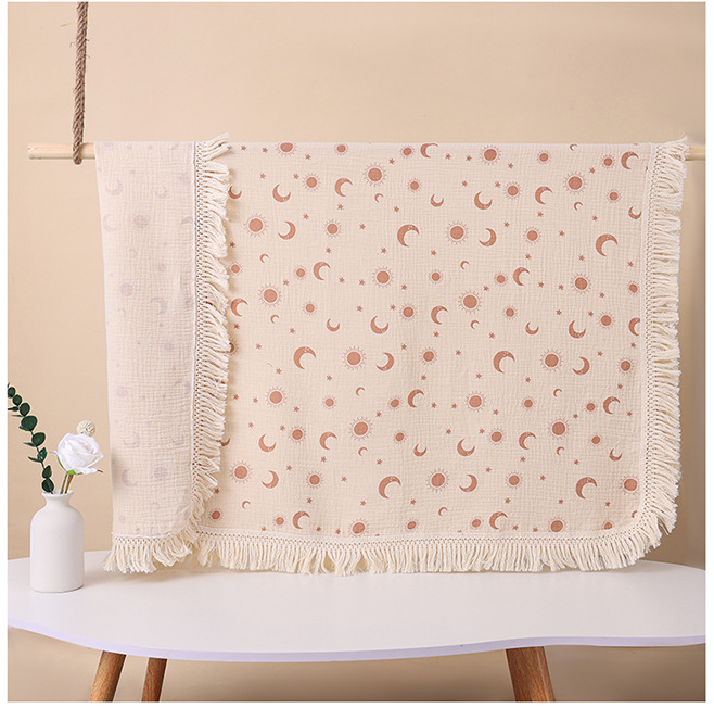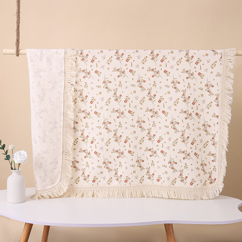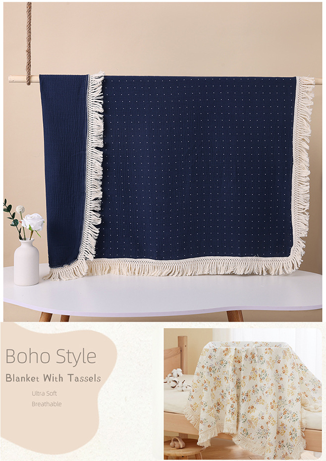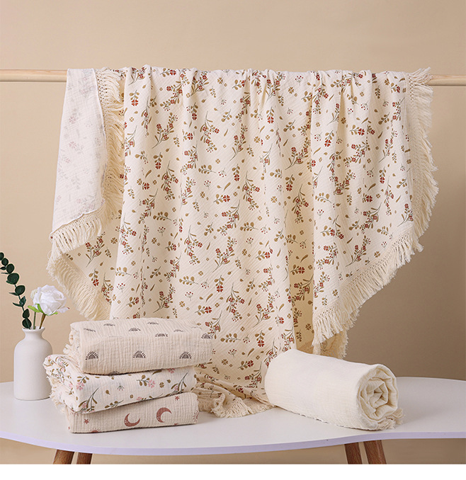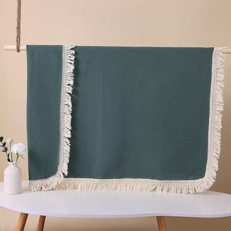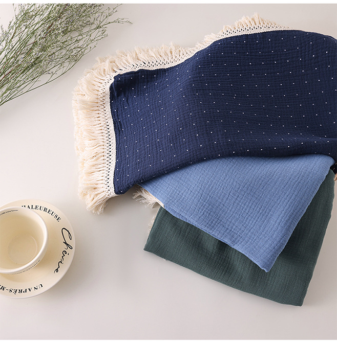여름 에어컨 퀼트 베이비 유모차 담요 더블 크레페 베이비 타슬 담요 퓨어 코튼 거즈 어린이 랩 타월 담요