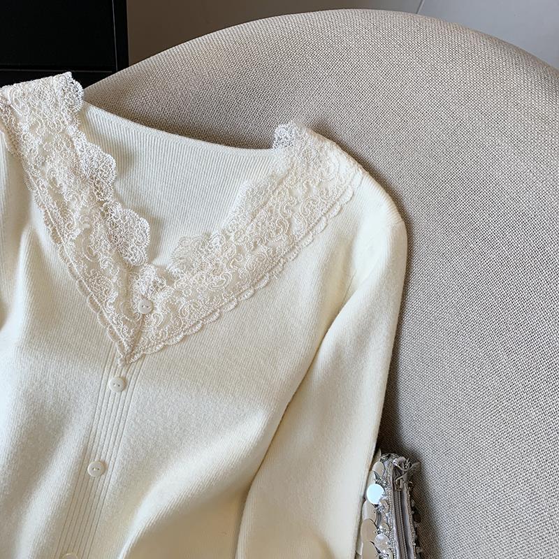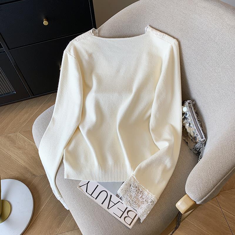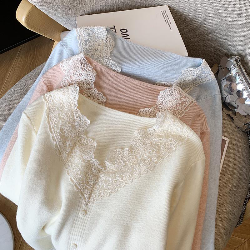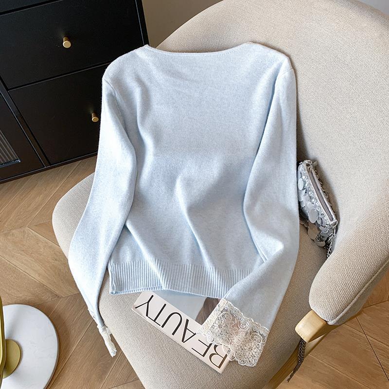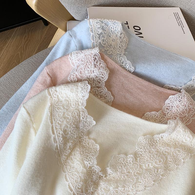 봄 2025 새로운 여성 레이스 니트 베이스 셔츠 내부 착용 프랑스 스웨터 쇼트 탑