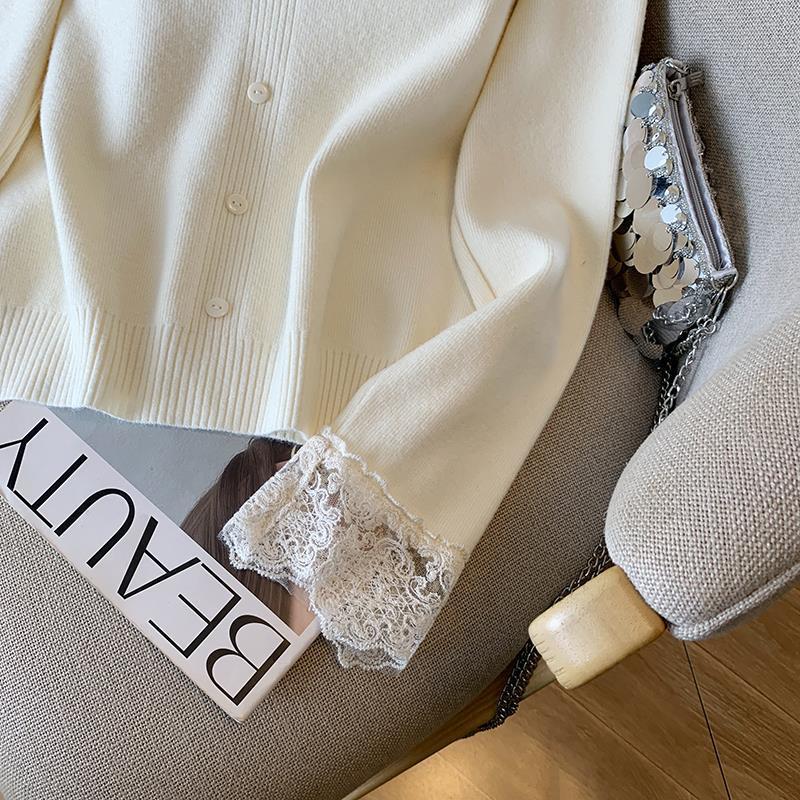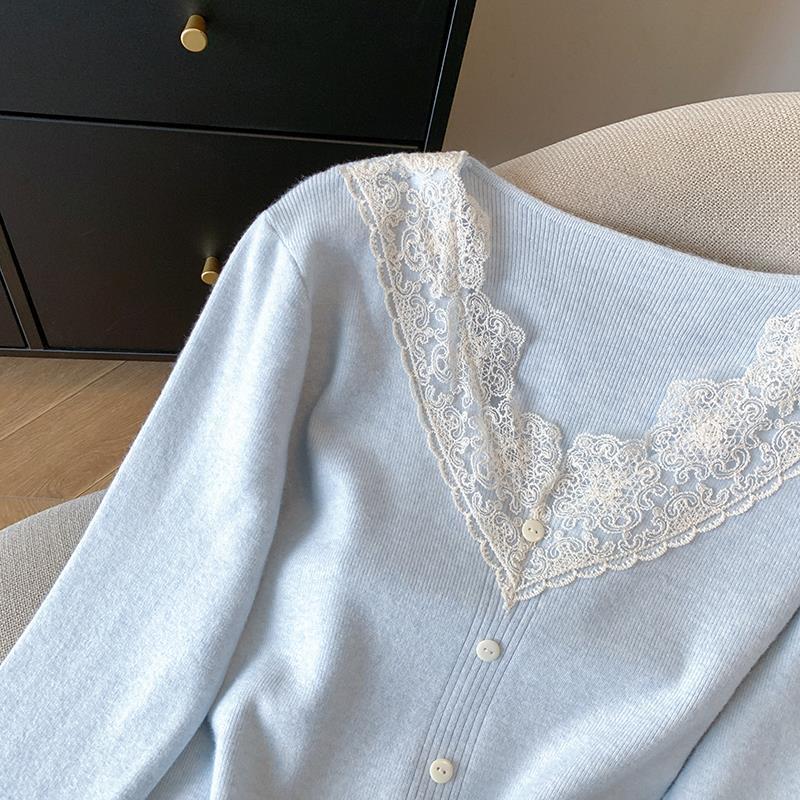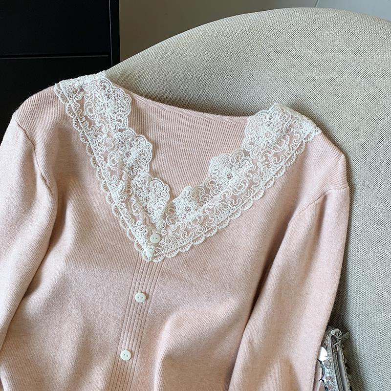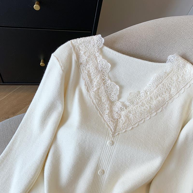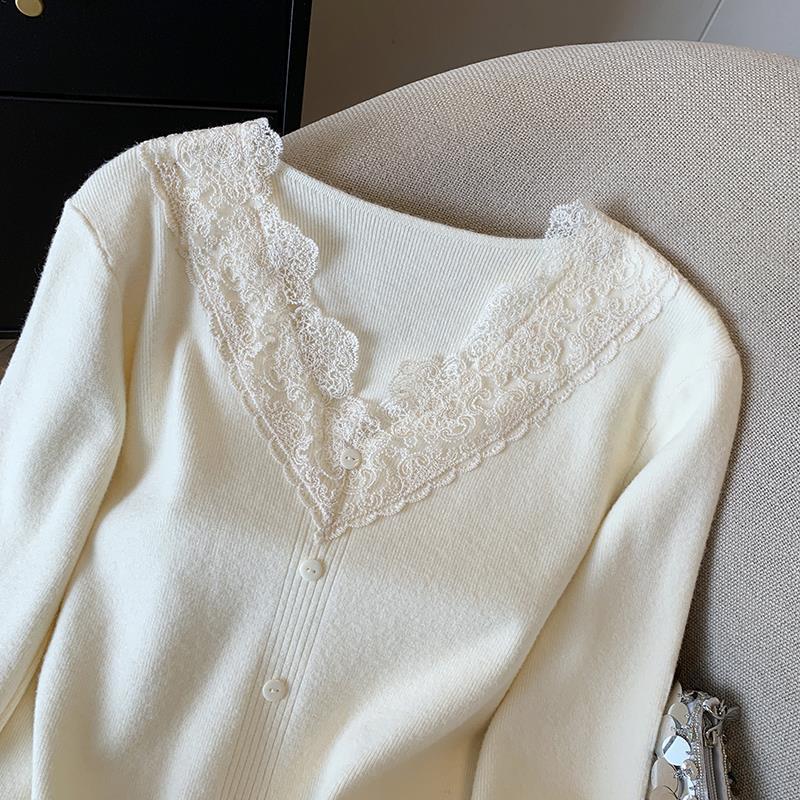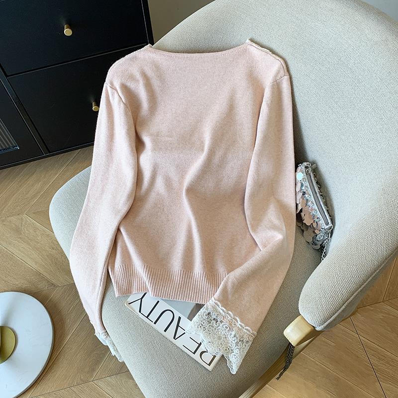 봄 2025 새로운 여성 레이스 니트 베이스 셔츠 내부 착용 프랑스 스웨터 쇼트 탑