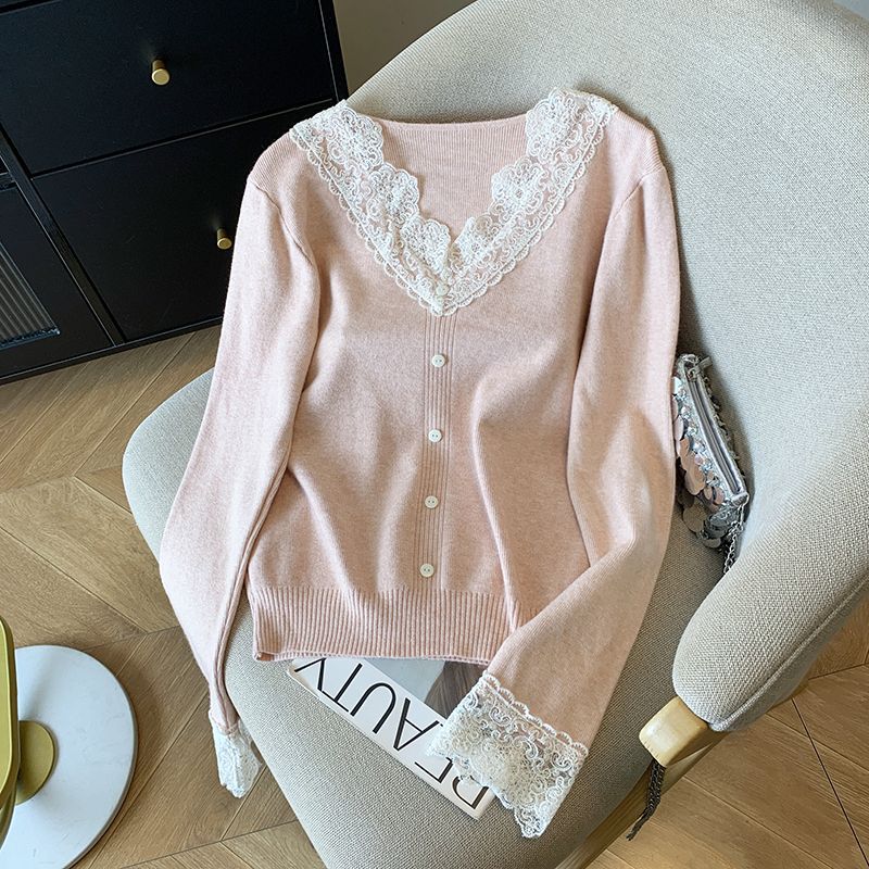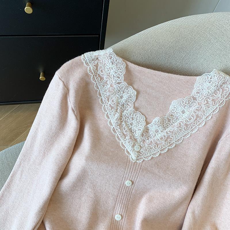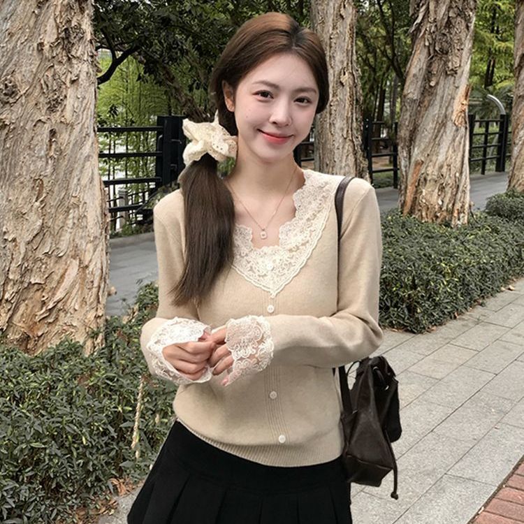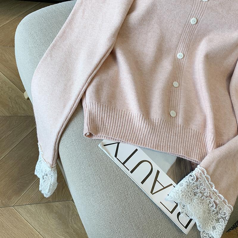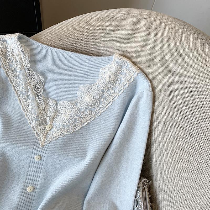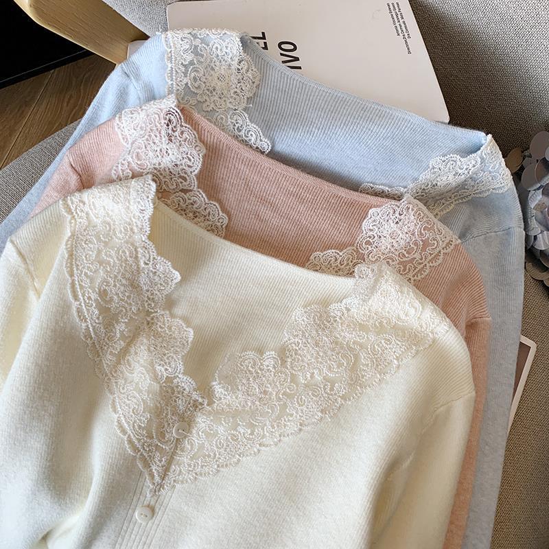 봄 2025 새로운 여성 레이스 니트 베이스 셔츠 내부 착용 프랑스 스웨터 쇼트 탑스토어 가기