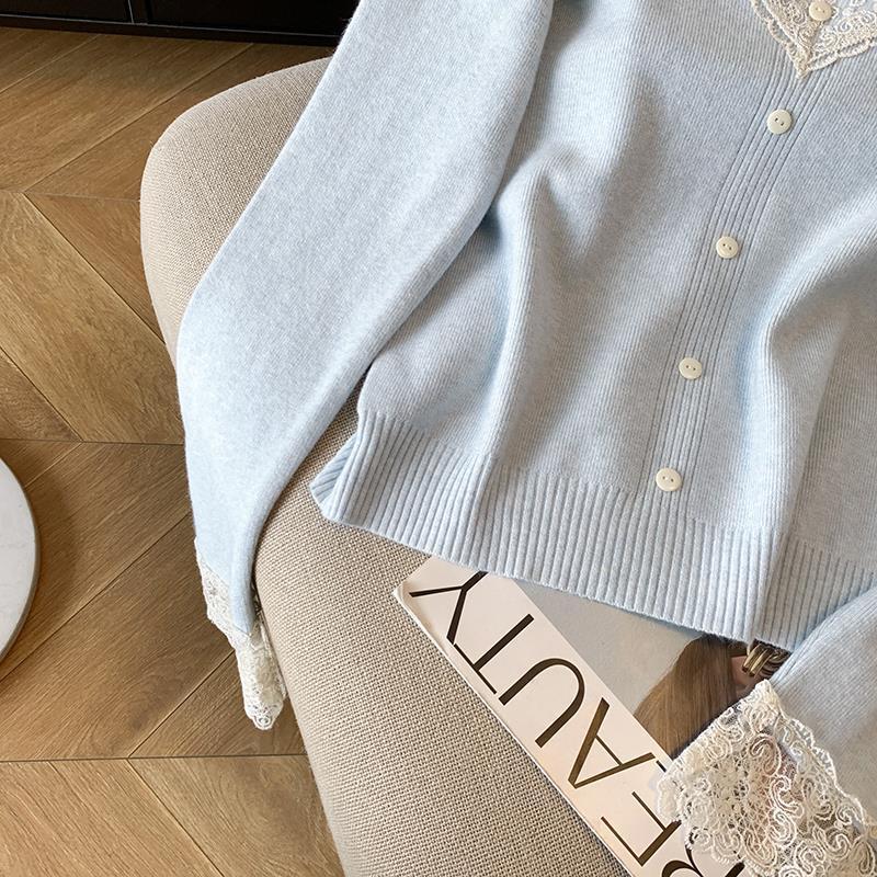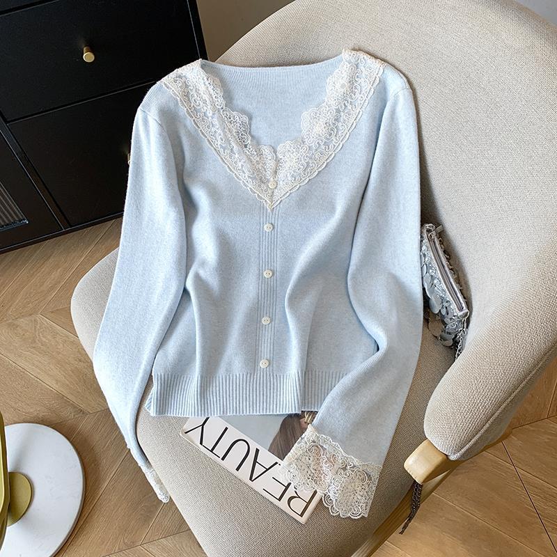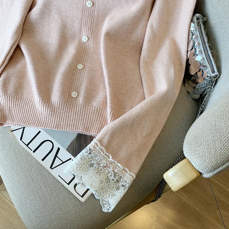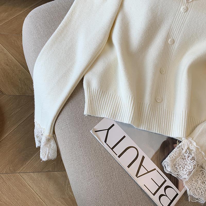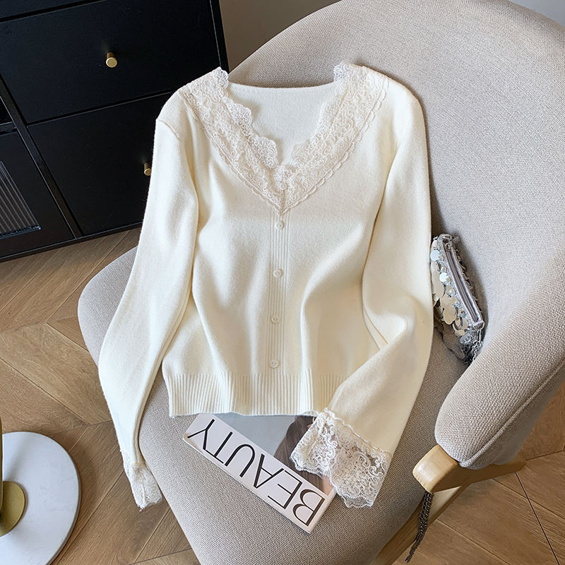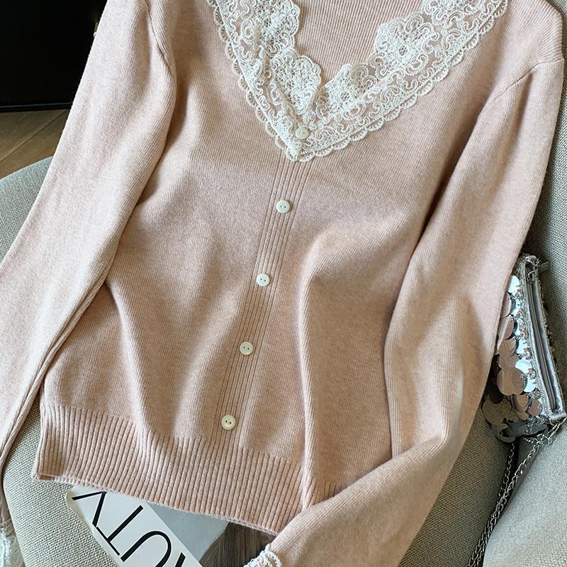 봄 2025 새로운 여성 레이스 니트 베이스 셔츠 내부 착용 프랑스 스웨터 쇼트 탑스토어 가기