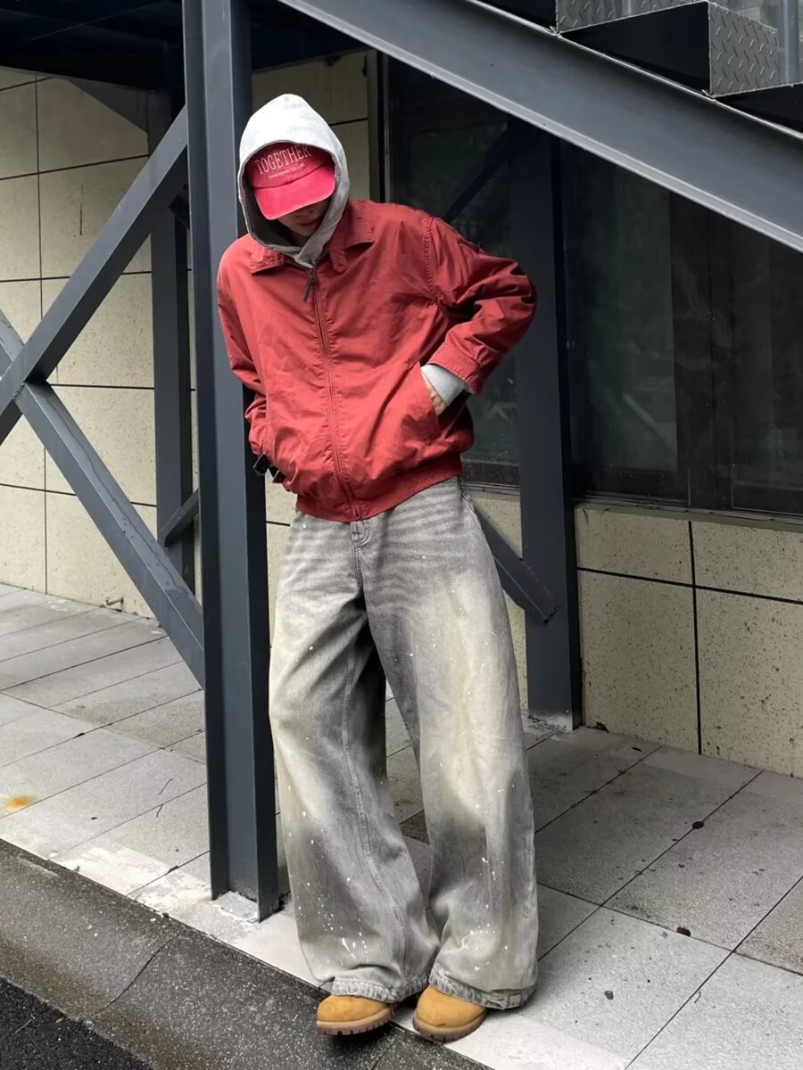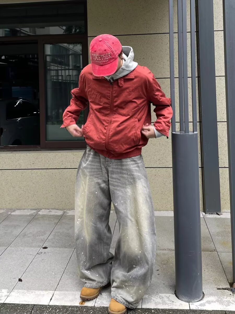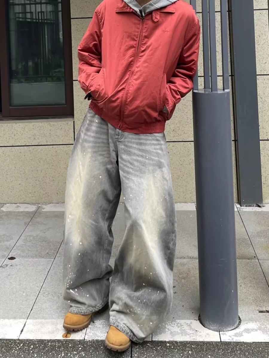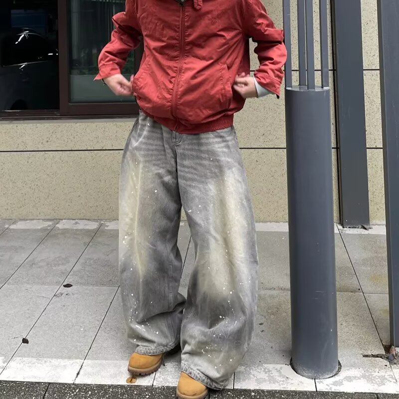 미국 스타일의 빈티지 디자인 타이-염료 트렌디 브랜드 청바지 소년과 소녀를위한 새로운 스트레이트 세척 느슨한 하이 스트리트 바지스토어 가기