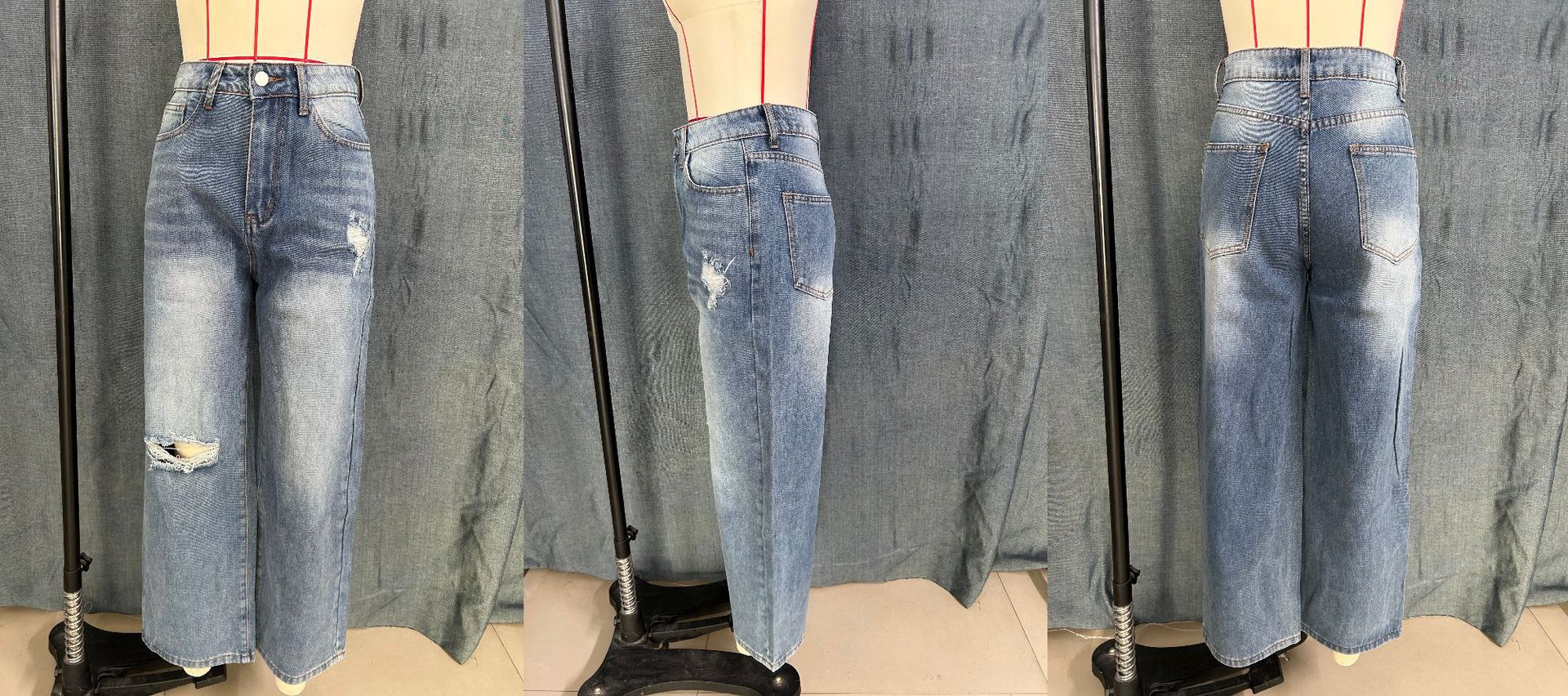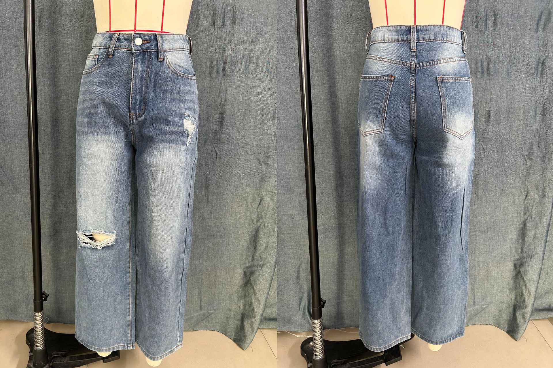 크로스보더 smx' 와이드 레그 스트레이트 핫셀링 하이웨이스트 롱 팬츠 여성용 찢어진 청바지 여성용 연청색 아마존 2025스토어 가기