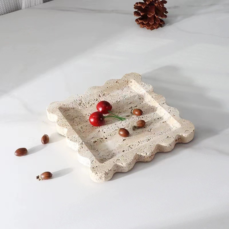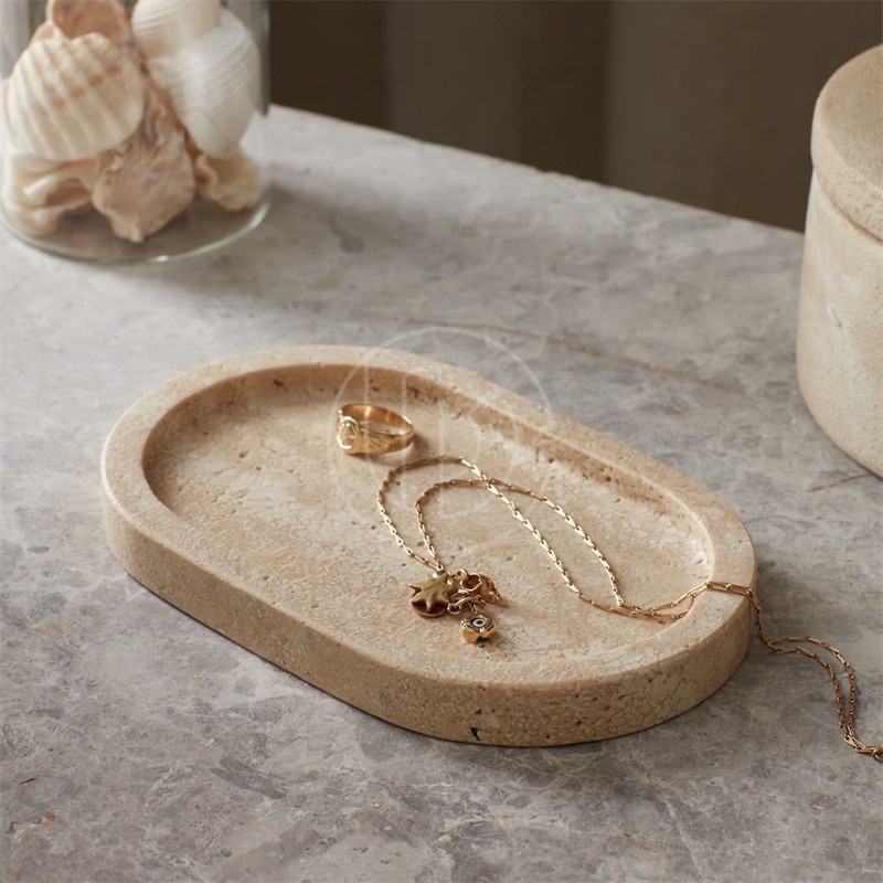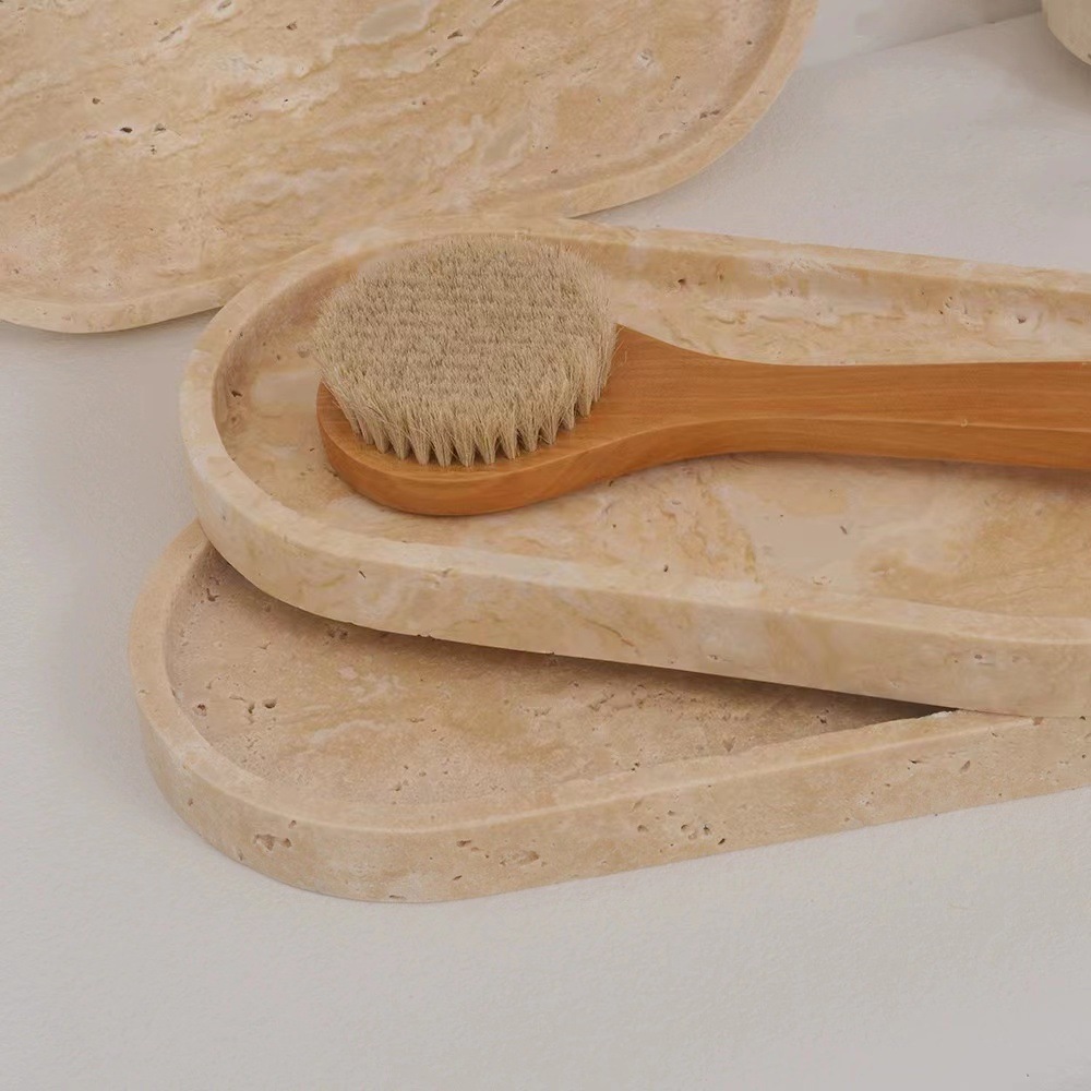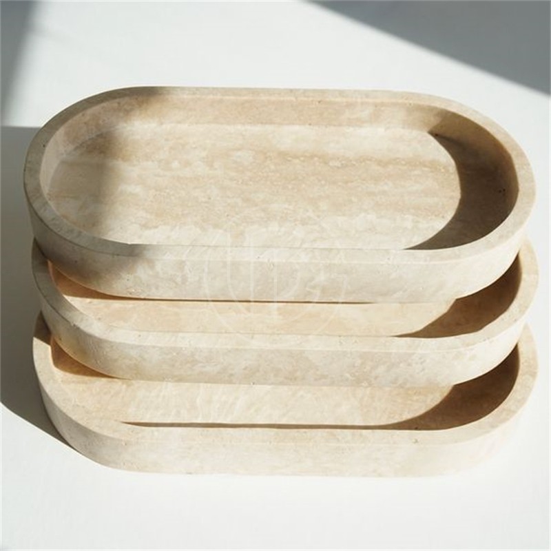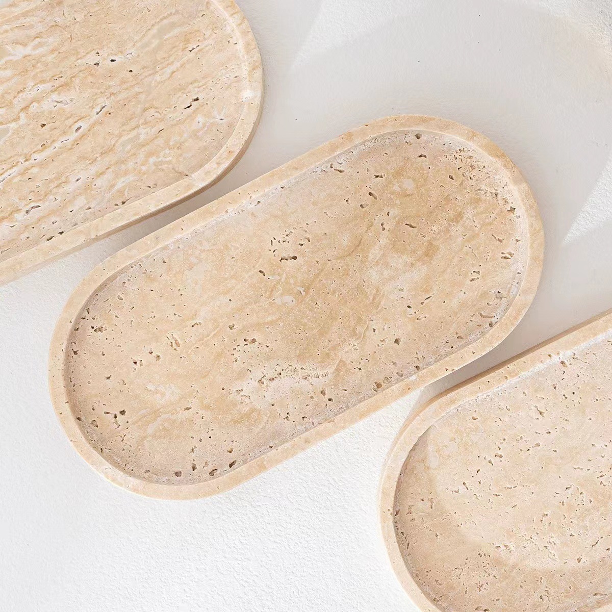 북유럽 미니멀리스트 와비사비 스타일 노란색 석회암 대리석 과일 욕실 화장실 침실 연구 액세서리 트레이 장식품