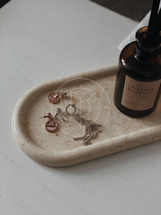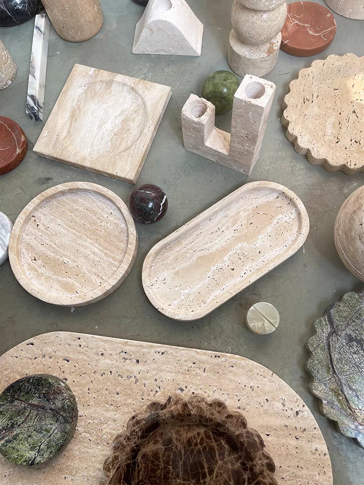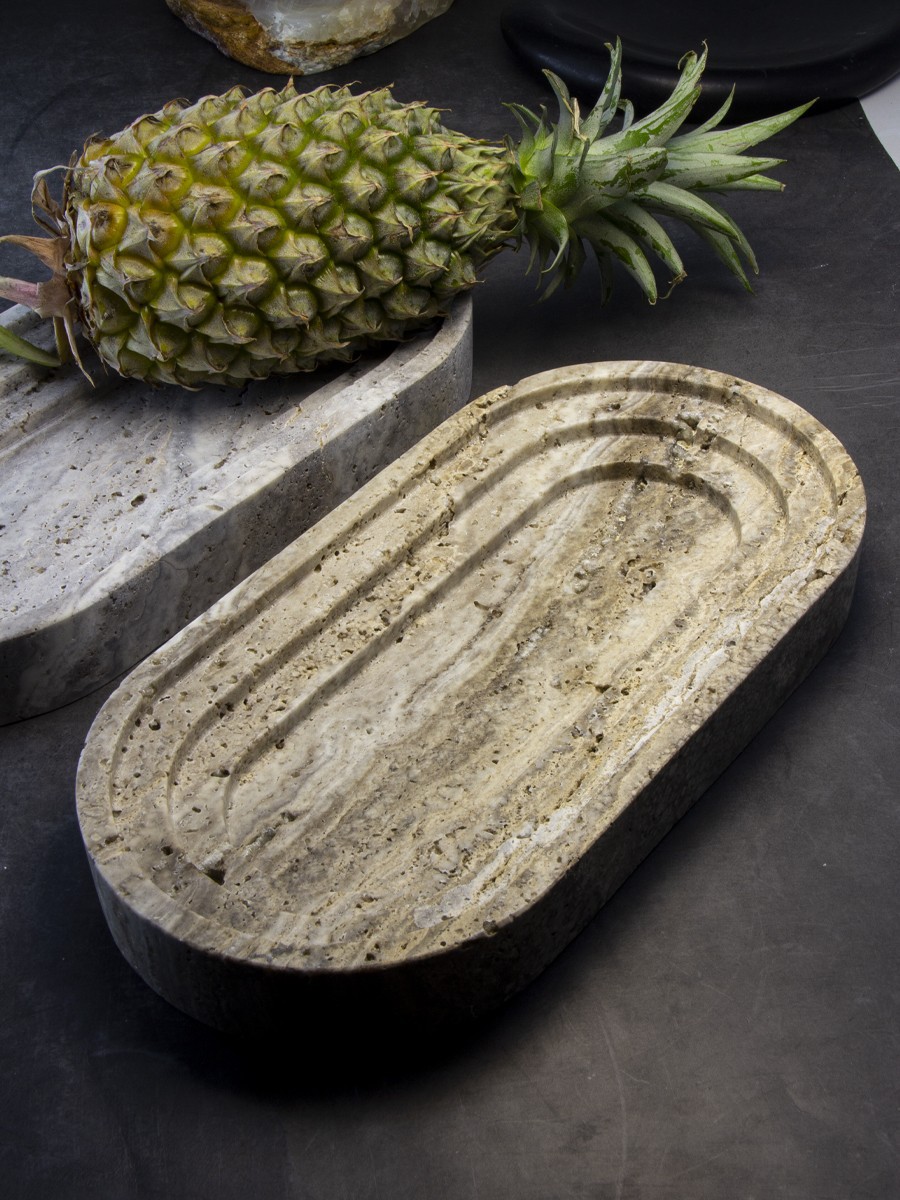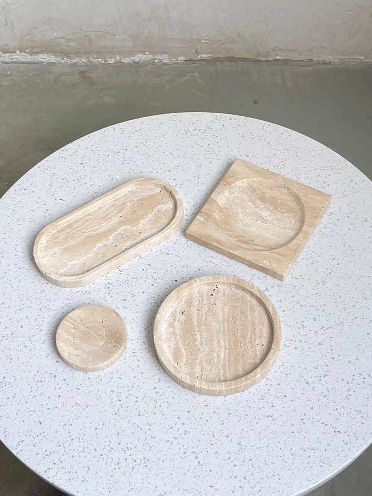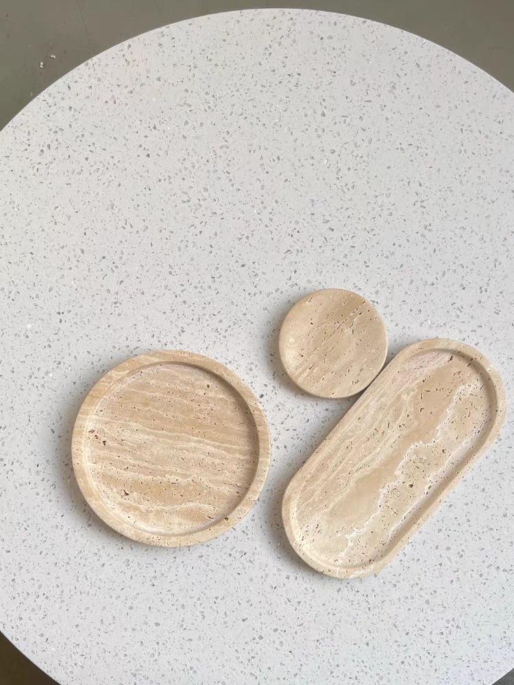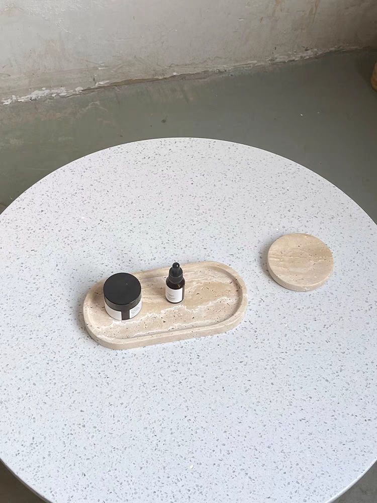 북유럽 미니멀리스트 와비사비 스타일 노란색 석회암 대리석 과일 욕실 화장실 침실 연구 액세서리 트레이 장식품