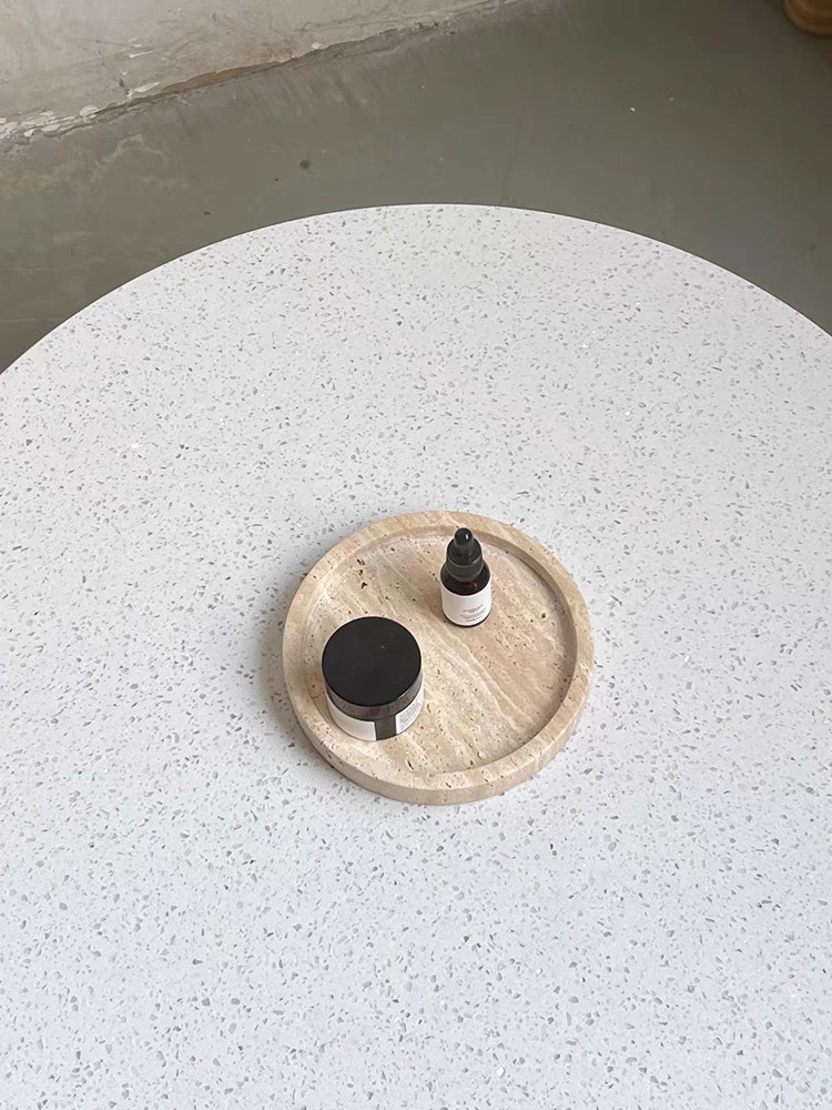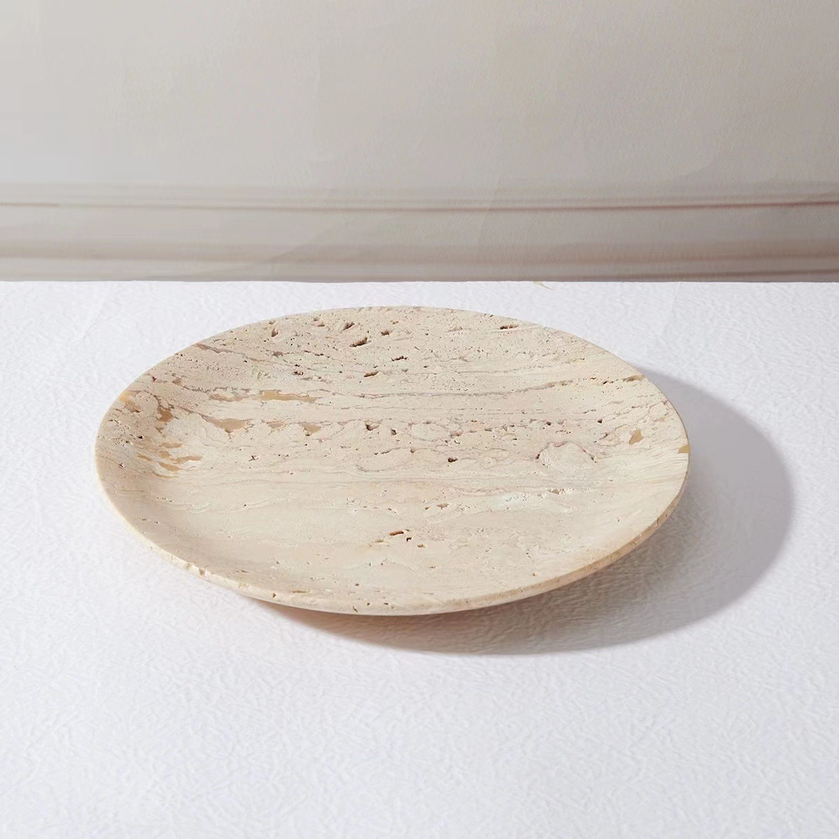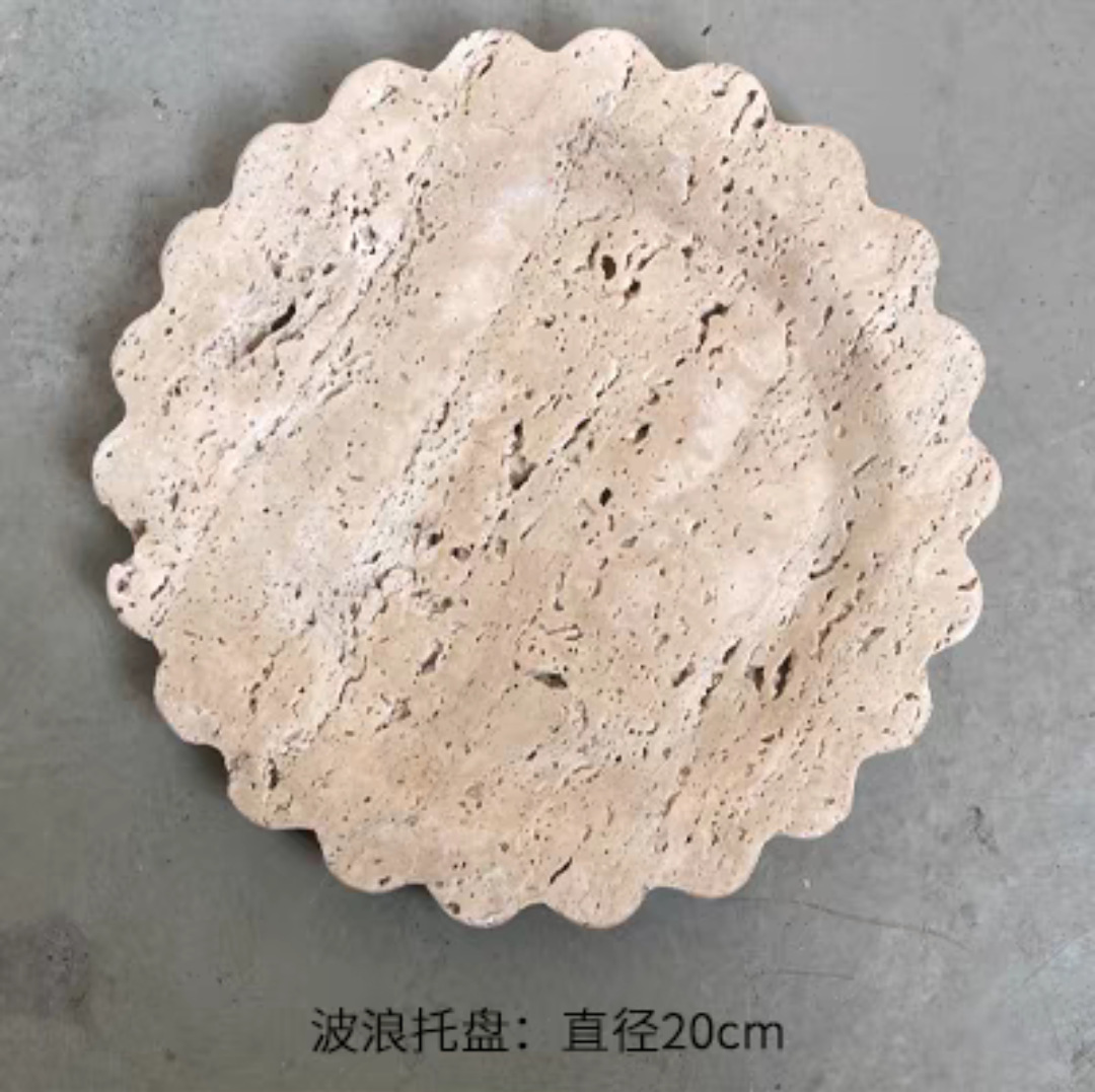 • 노란색 석회암 홈 트레이 + 원형 패턴 18cm