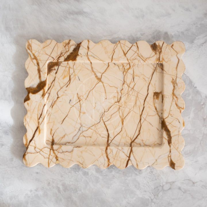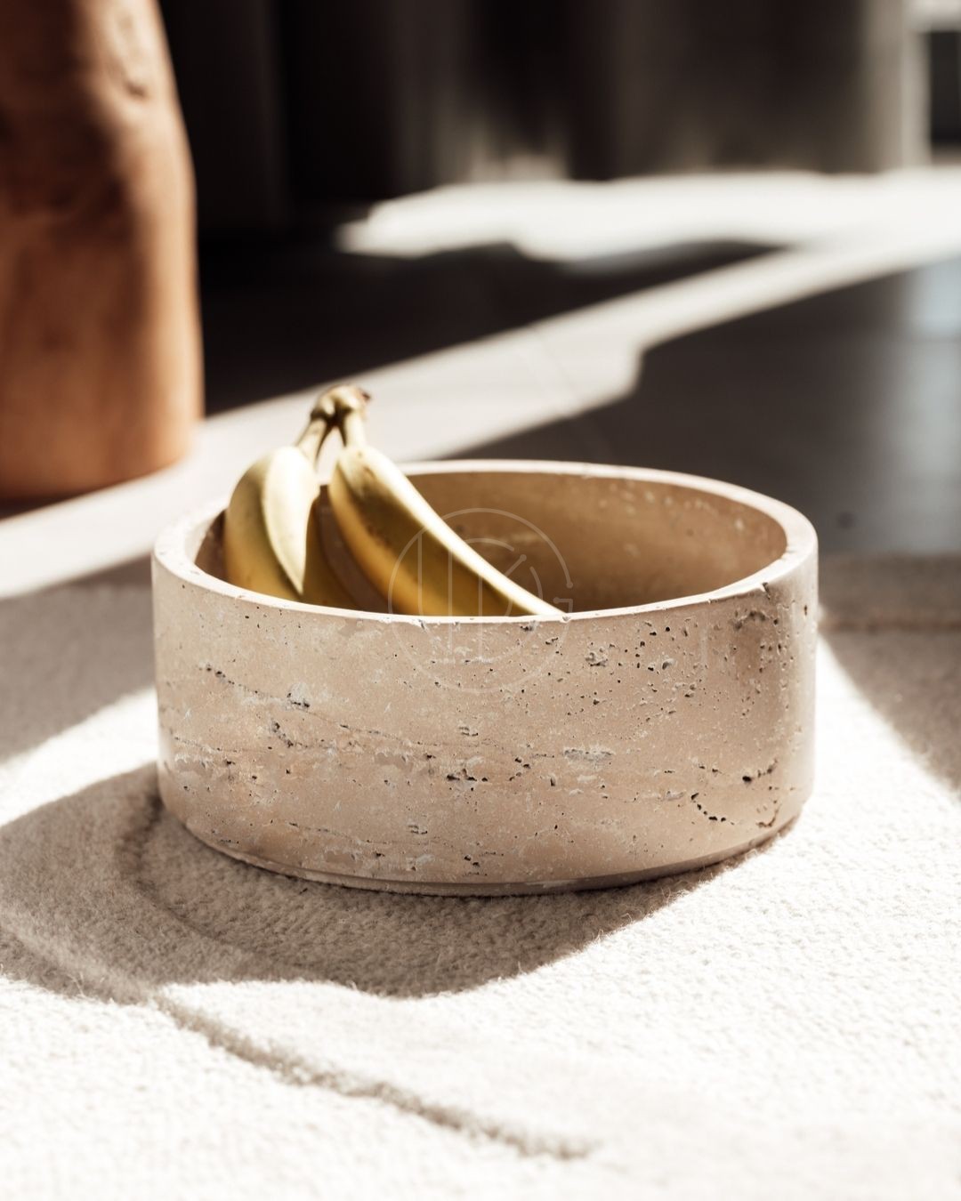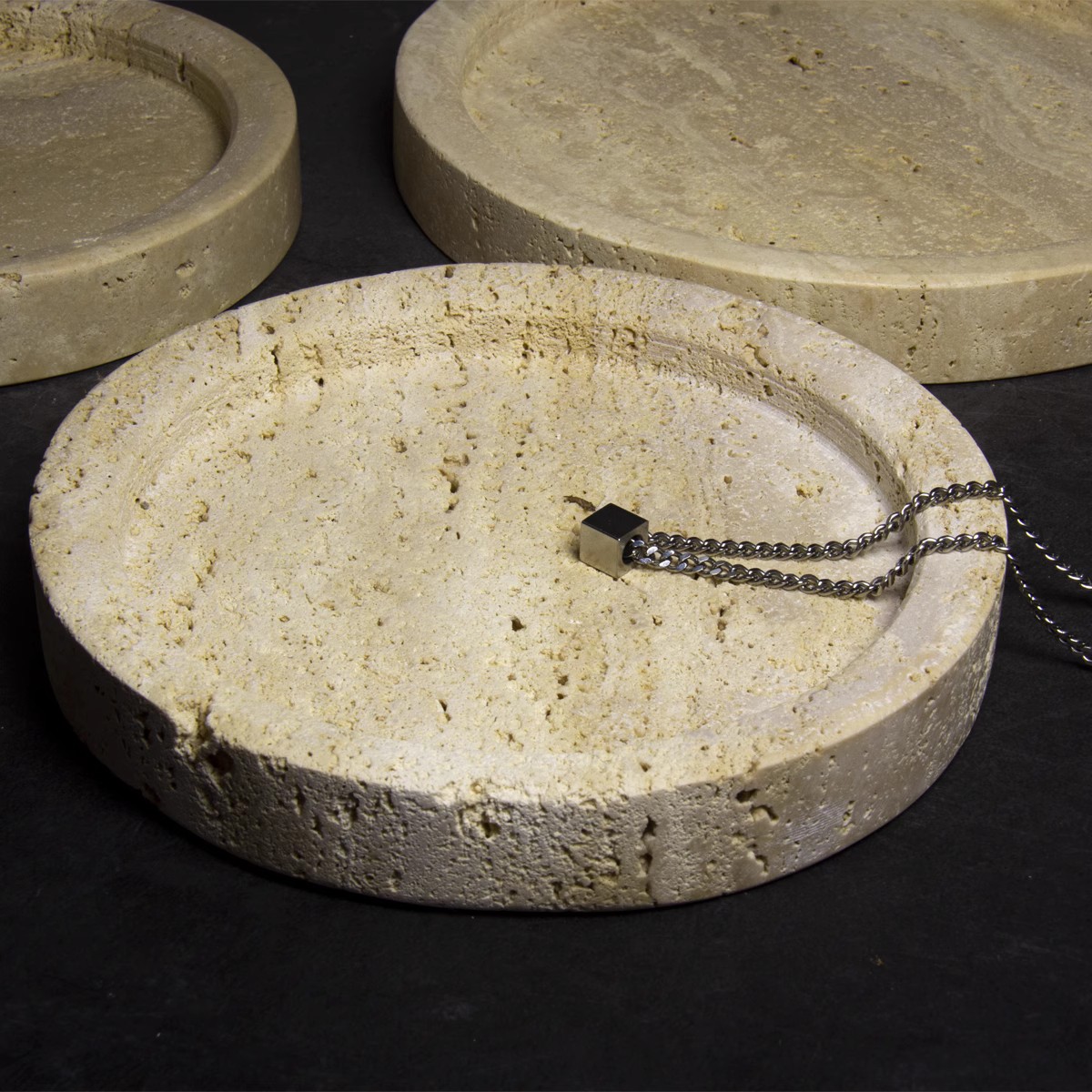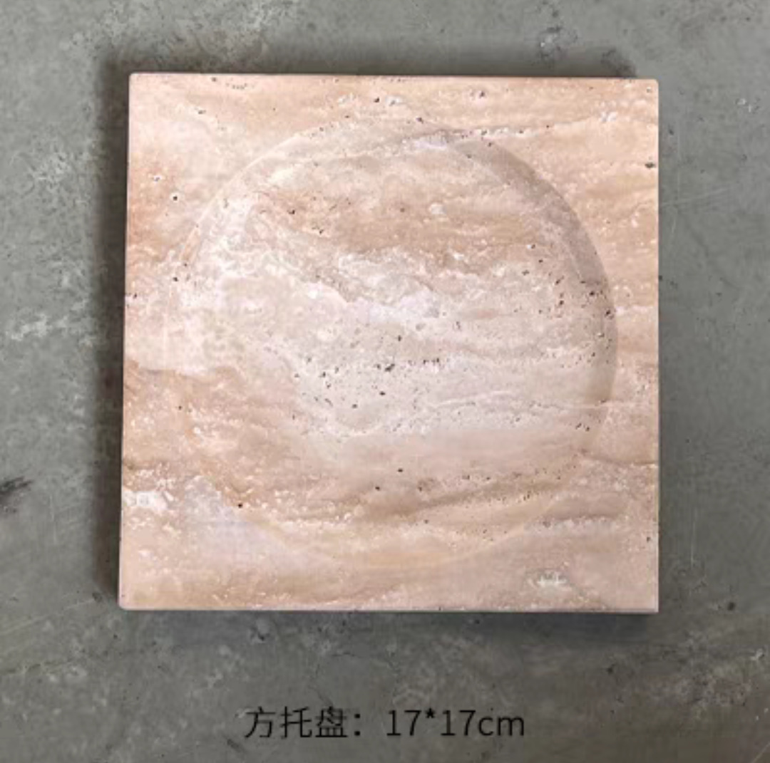 • 노란색 석회암 홈 트레이 + 원형 패턴 18cm