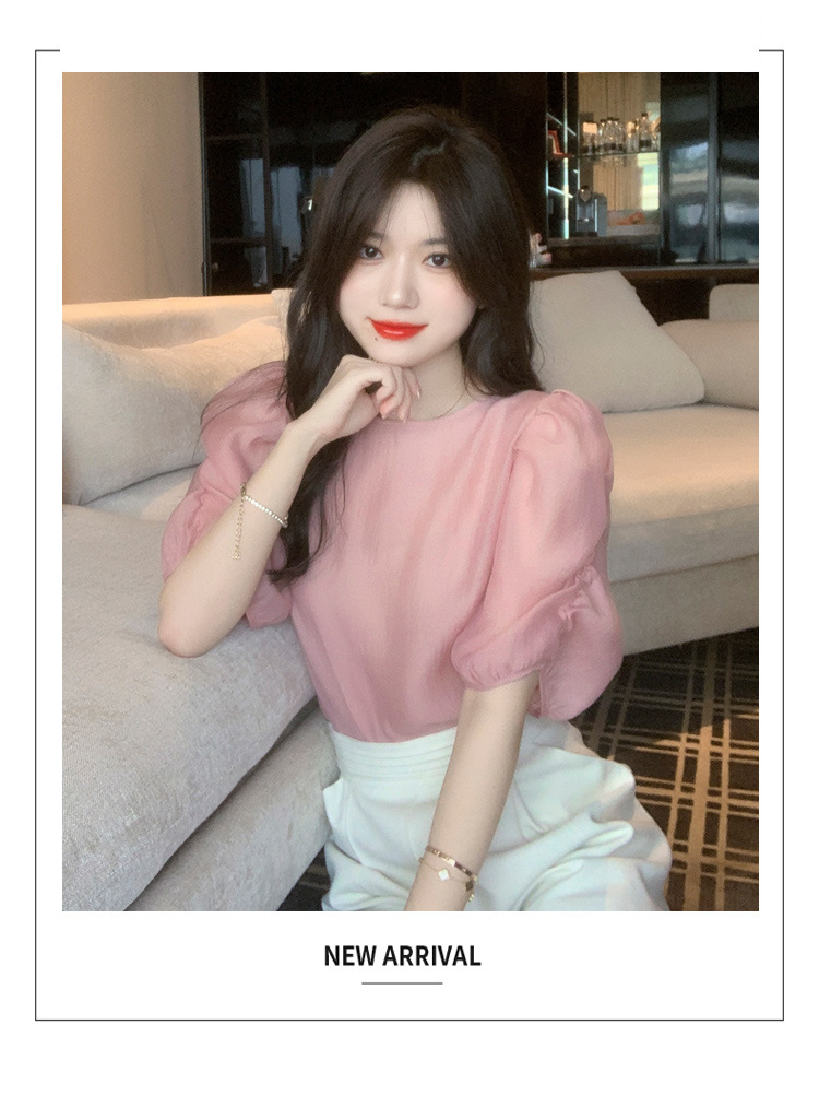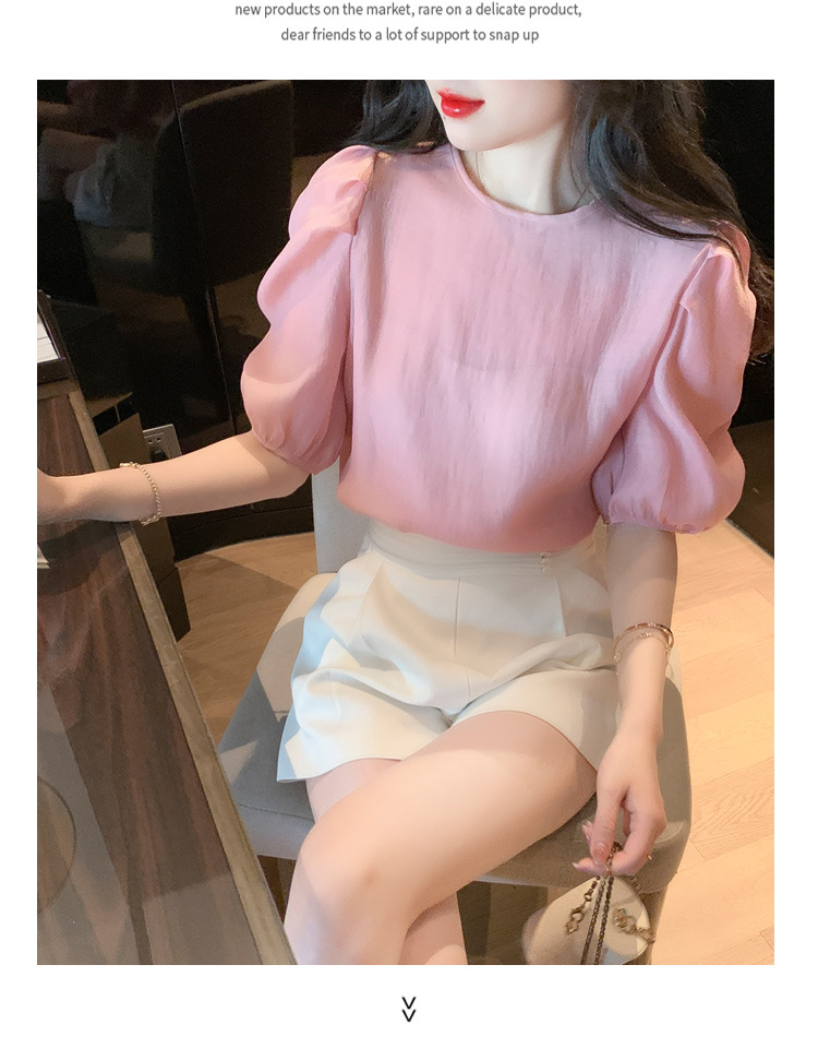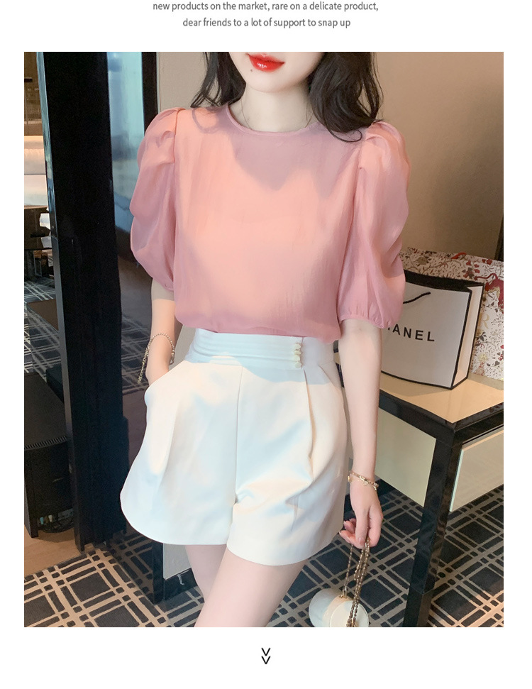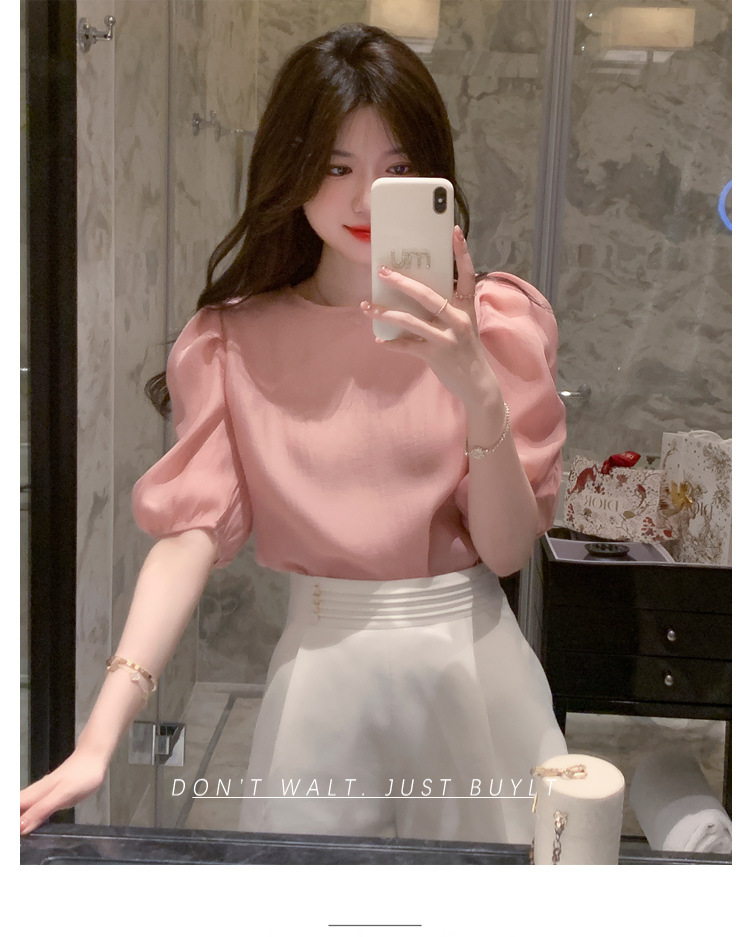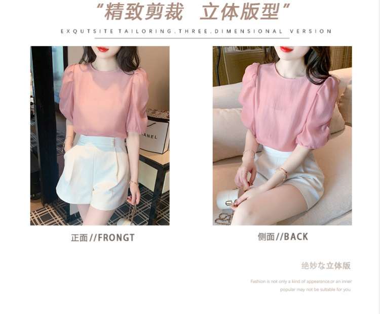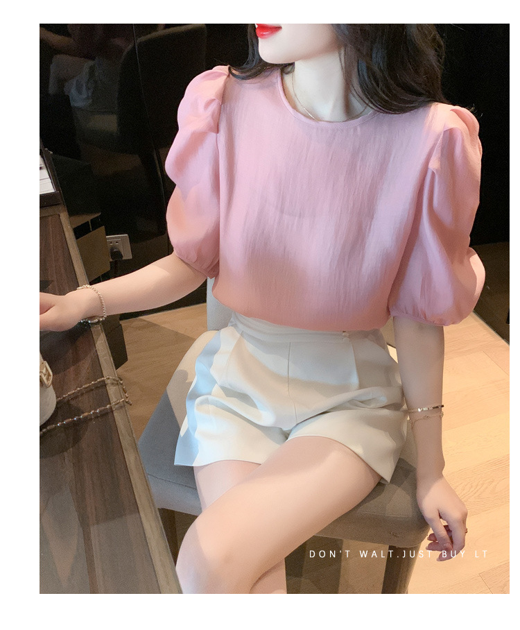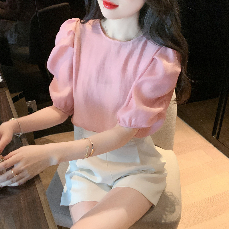 달콤하고 부드러운 스타일의 버블 슬리브 쉬폰 기질 작은 셔츠 2025 여름 새로운 짧은 소매 틈새 여성 셔츠 탑스토어 가기