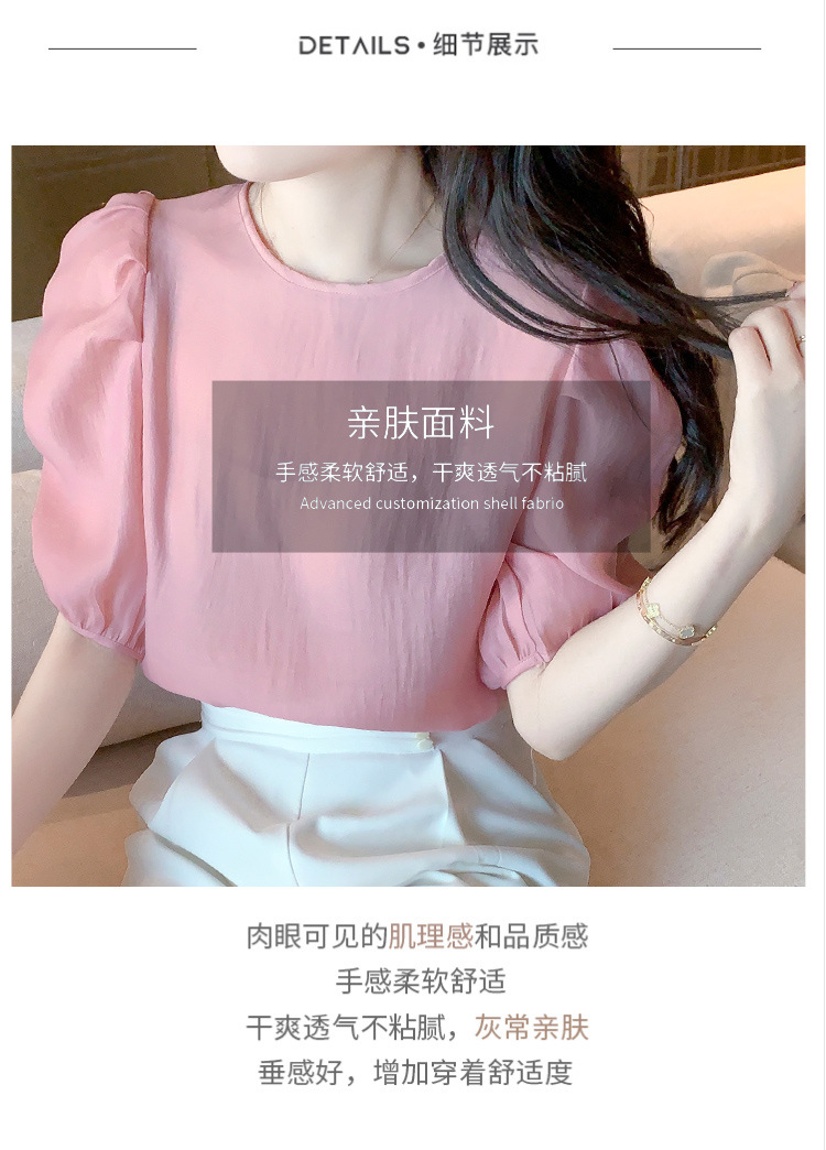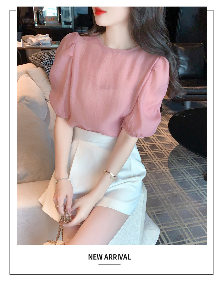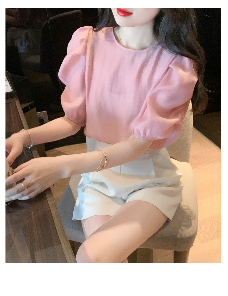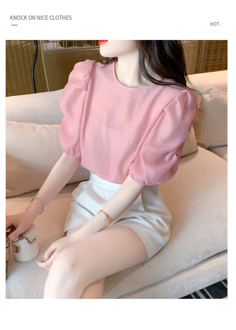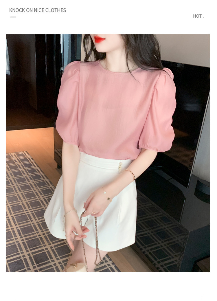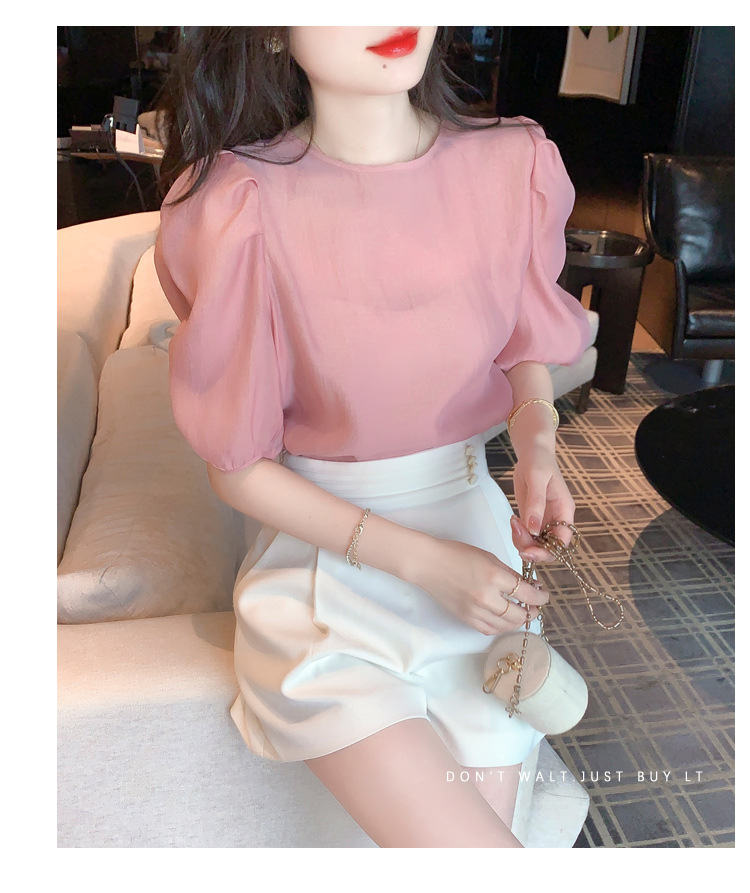 달콤하고 부드러운 스타일의 버블 슬리브 쉬폰 기질 작은 셔츠 2025 여름 새로운 짧은 소매 틈새 여성 셔츠 탑스토어 가기