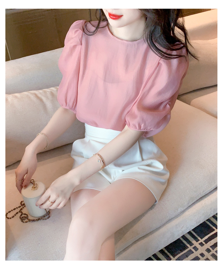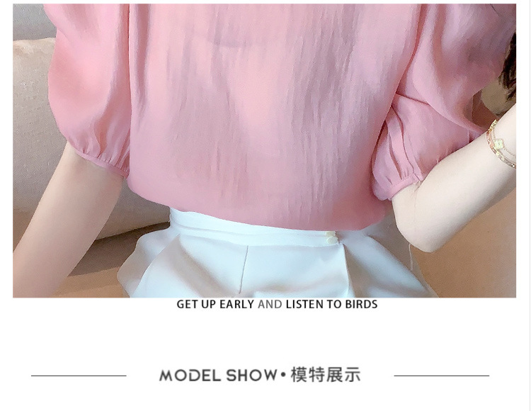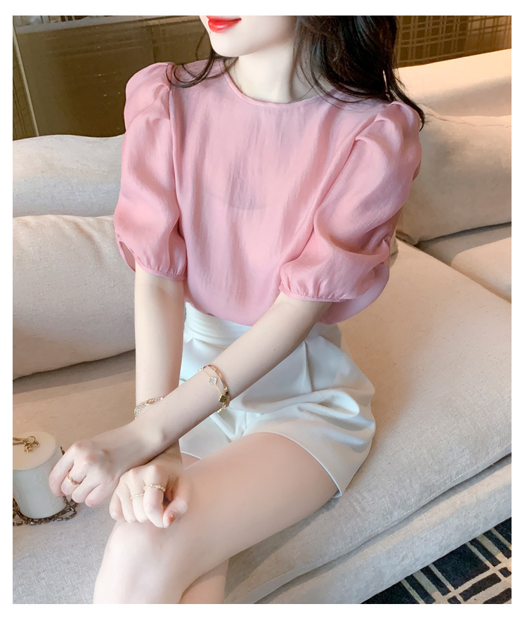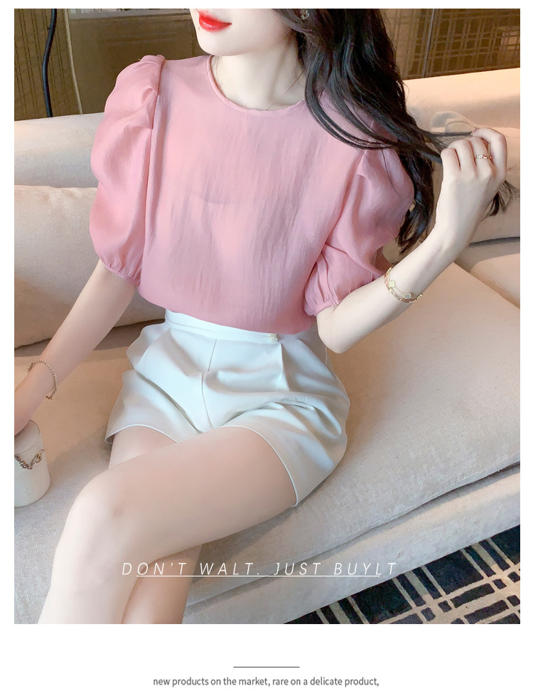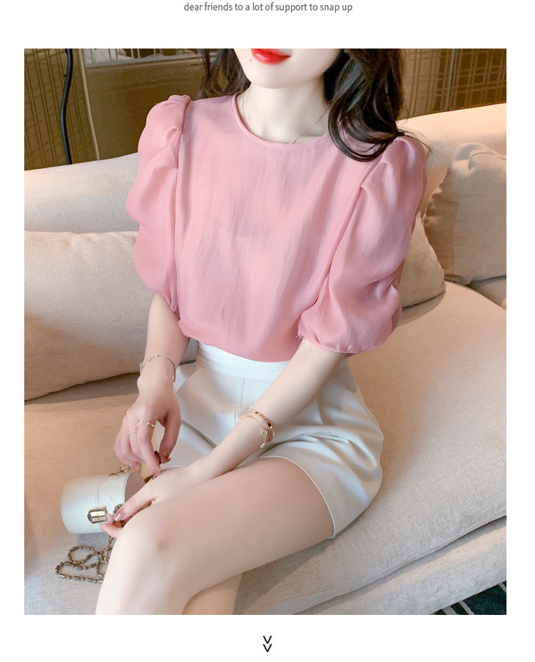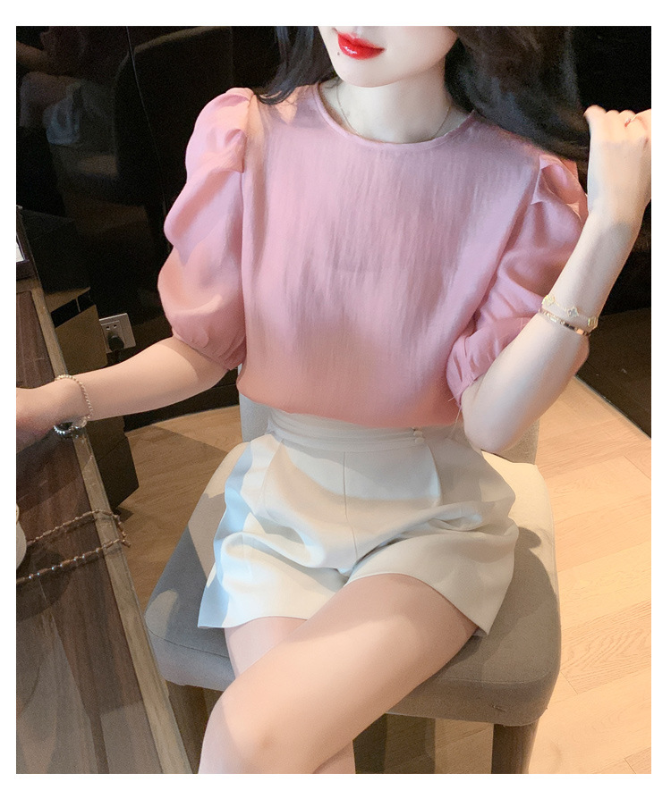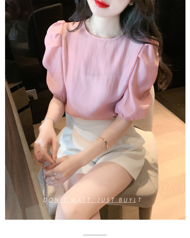달콤하고 부드러운 스타일의 버블 슬리브 쉬폰 기질 작은 셔츠 2025 여름 새로운 짧은 소매 틈새 여성 셔츠 탑스토어 가기
