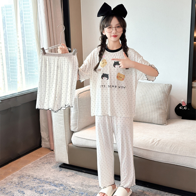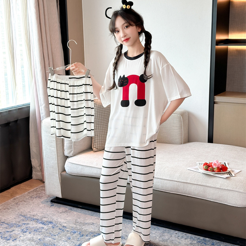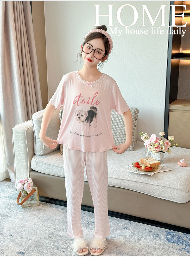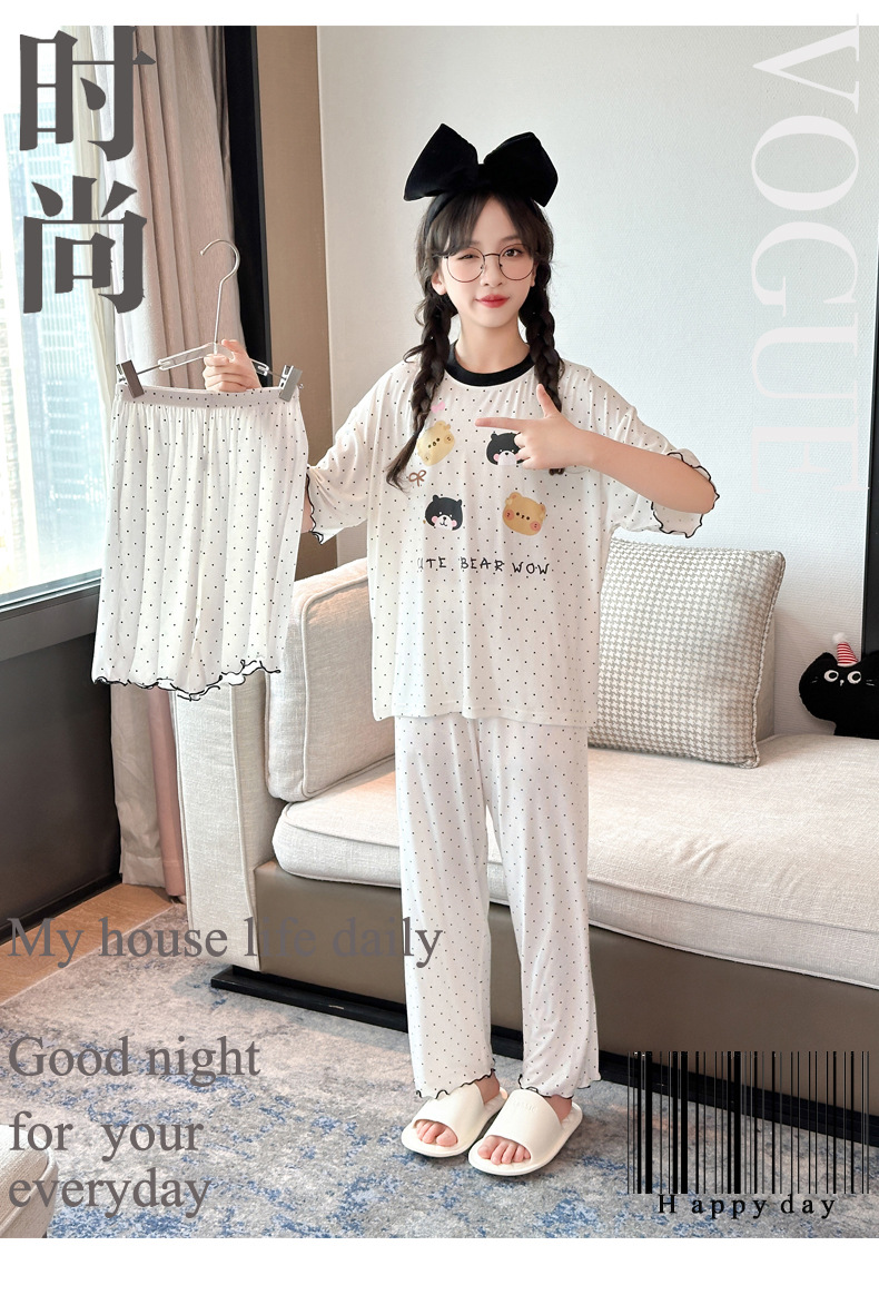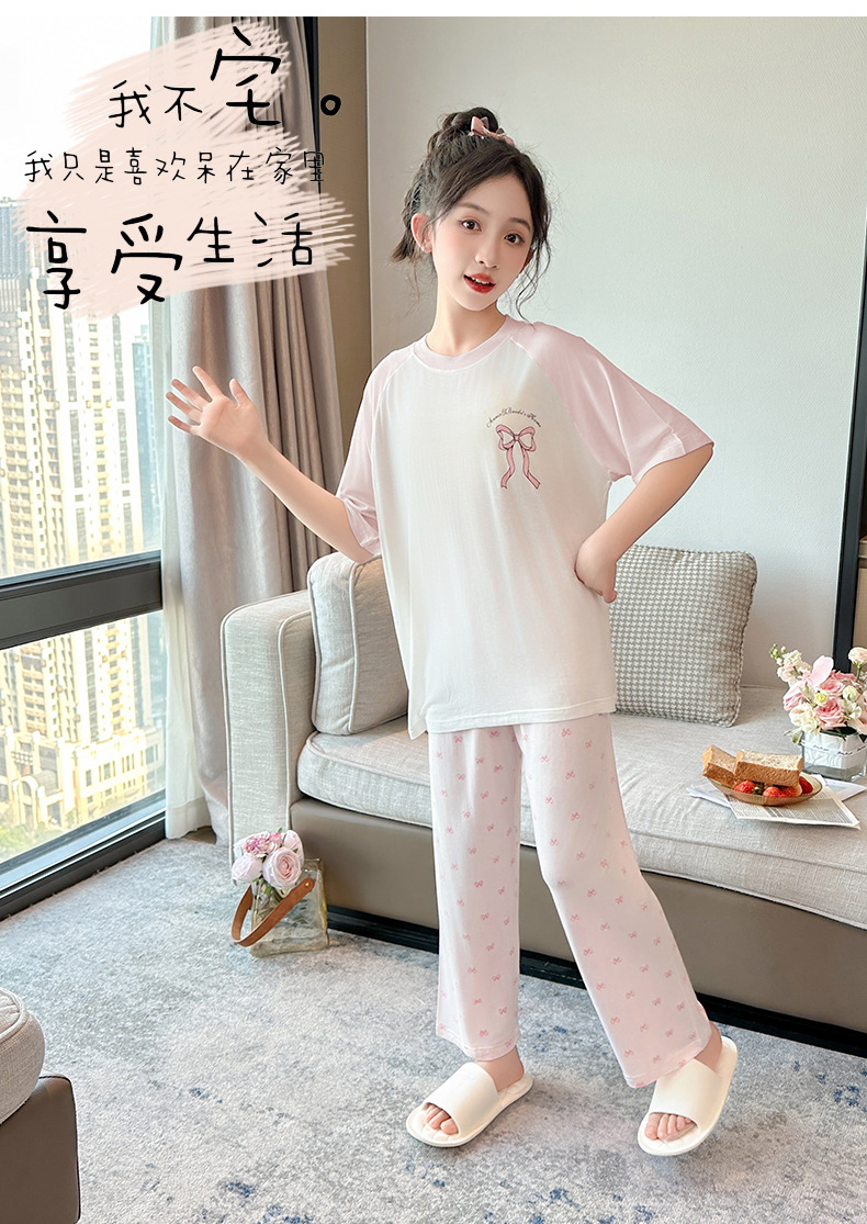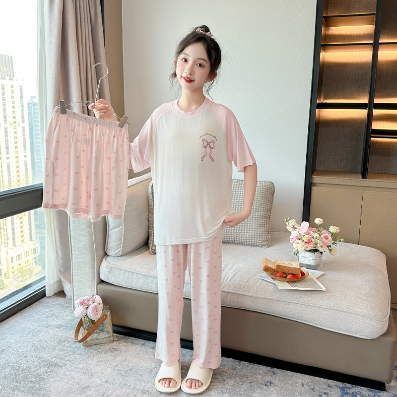 어린이 모달 파자마 여름 2025 새로운 소녀 하이 엔드 얇은 홈 옷 소녀 인터넷 인기 핫 세트