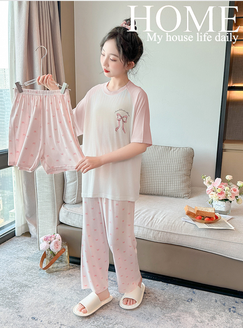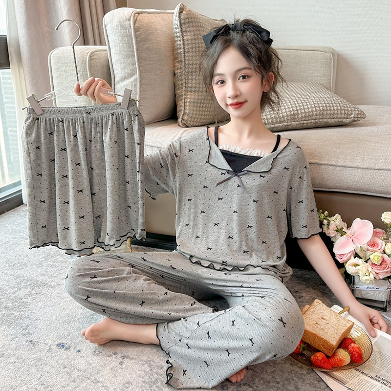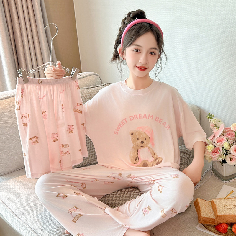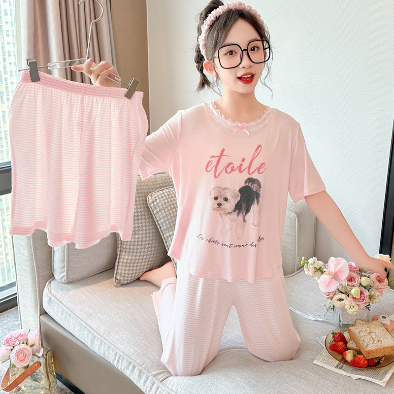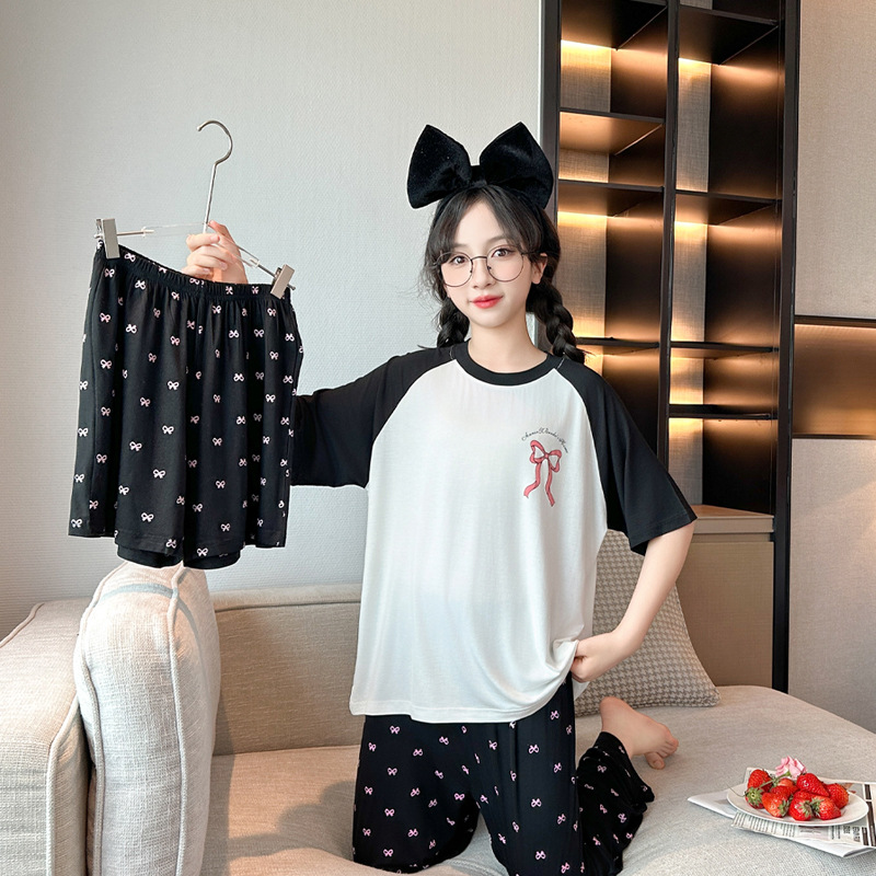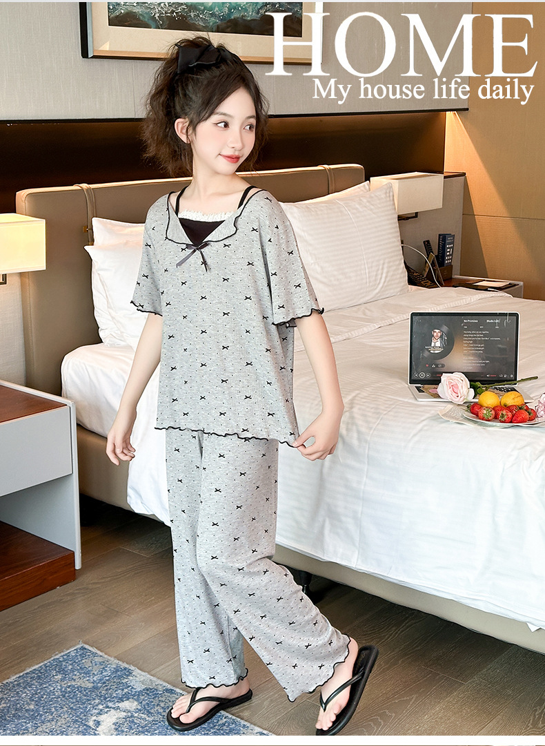 어린이 모달 파자마 여름 2025 새로운 소녀 하이 엔드 얇은 홈 옷 소녀 인터넷 인기 핫 세트