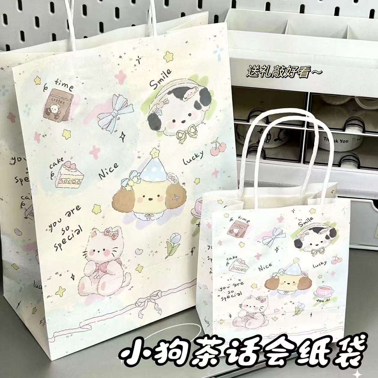 높은 Yan 가치 Ins 강아지 티 파티 선물 가방 절묘한 선물 포장 가방 만화 귀여운 핸드백 크래프트 종이스토어 가기