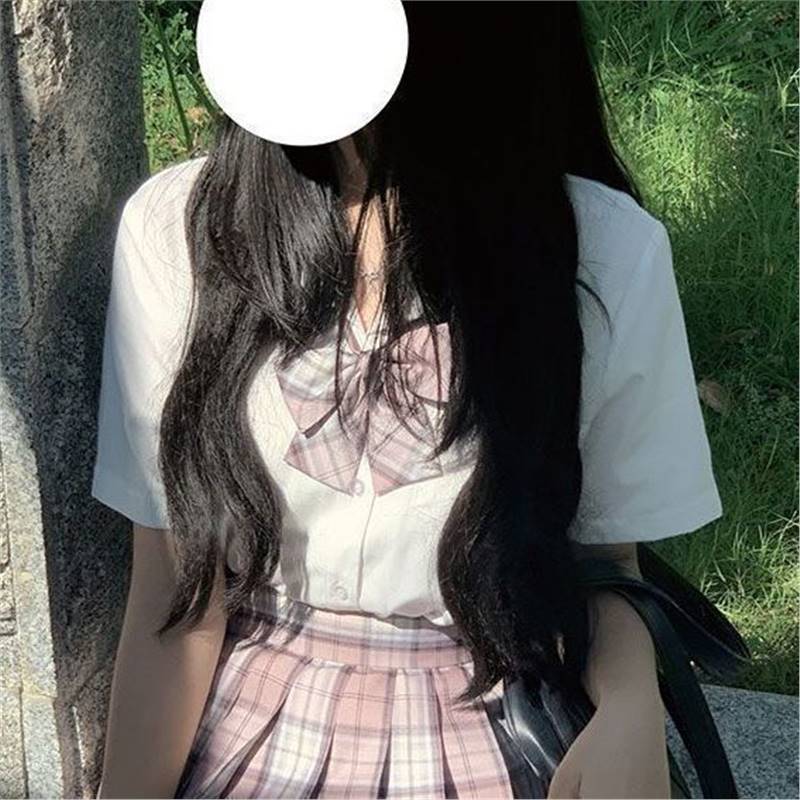 • Lan 중간 반팔 정장 + 나비 넥타이 + 스몰 아이스베리 체크 무늬 스커트