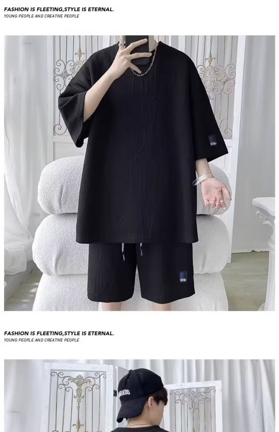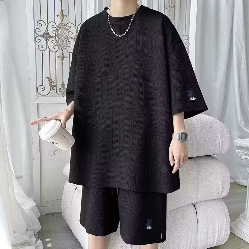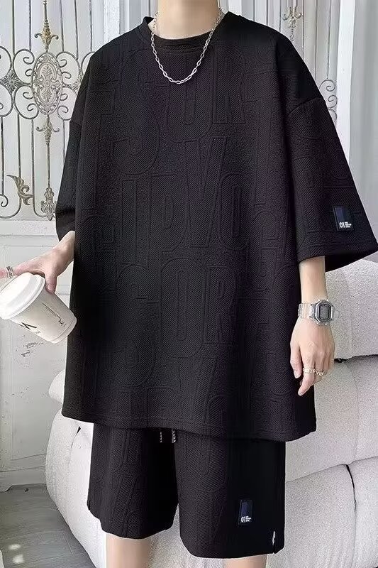 도매 여름 무거운 캐주얼 세트 남성용 느슨한 플러스 사이즈 짧은 소매 티셔츠 반바지와 뚱뚱한 증가 뚱뚱한 남자 세트스토어 가기
