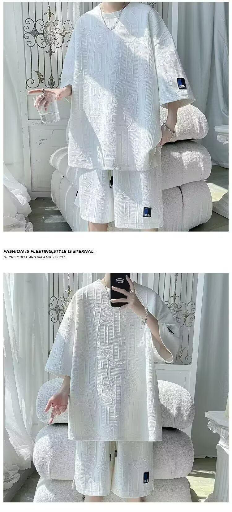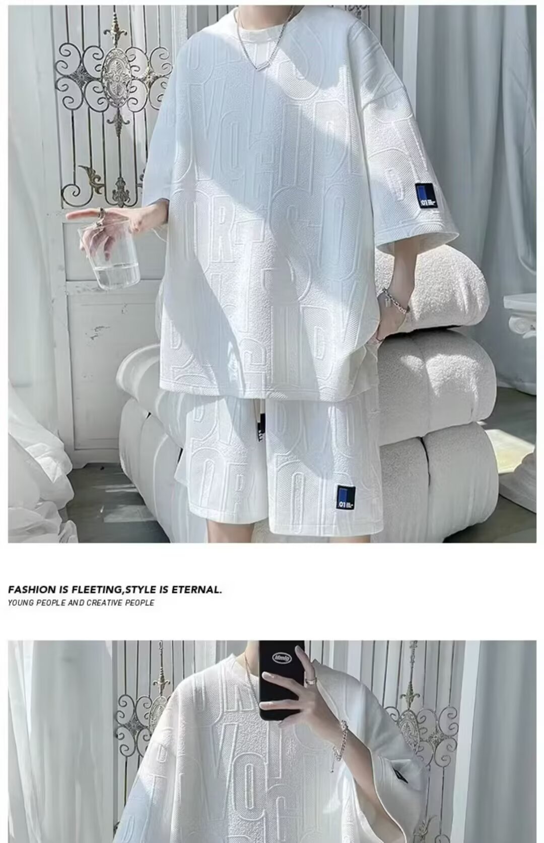도매 여름 무거운 캐주얼 세트 남성용 느슨한 플러스 사이즈 짧은 소매 티셔츠 반바지와 뚱뚱한 증가 뚱뚱한 남자 세트