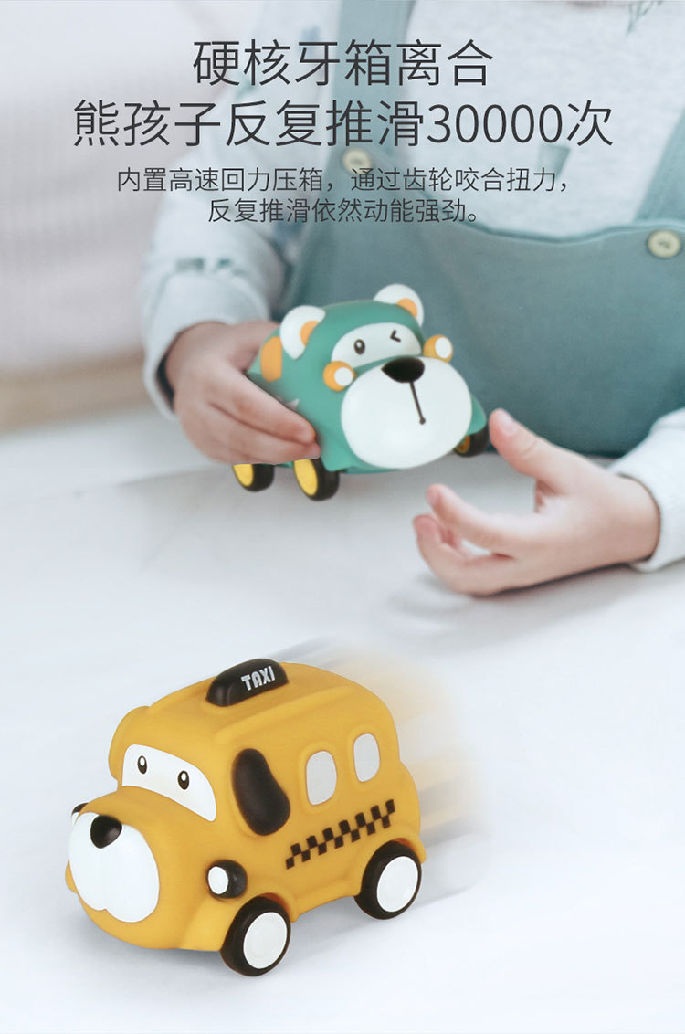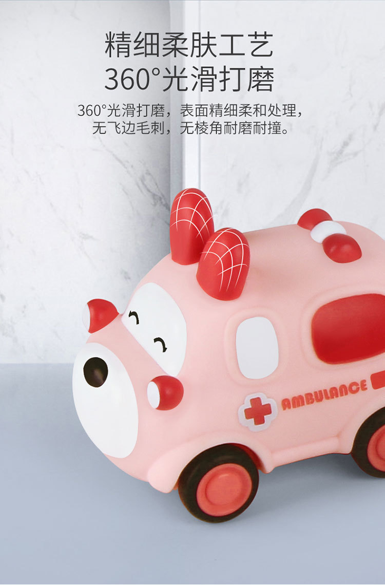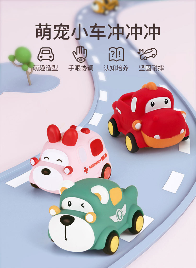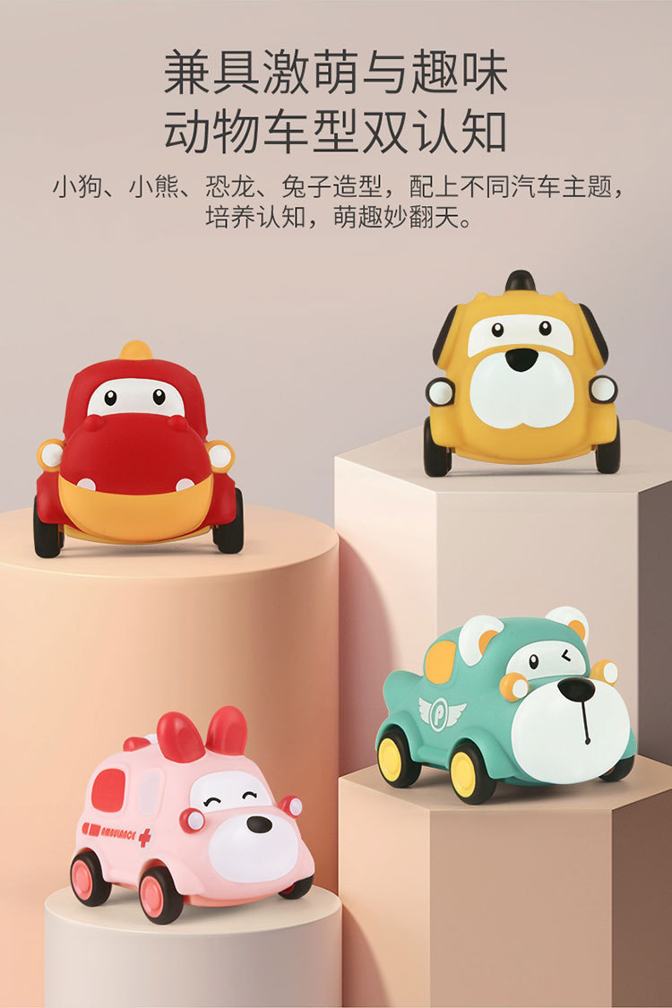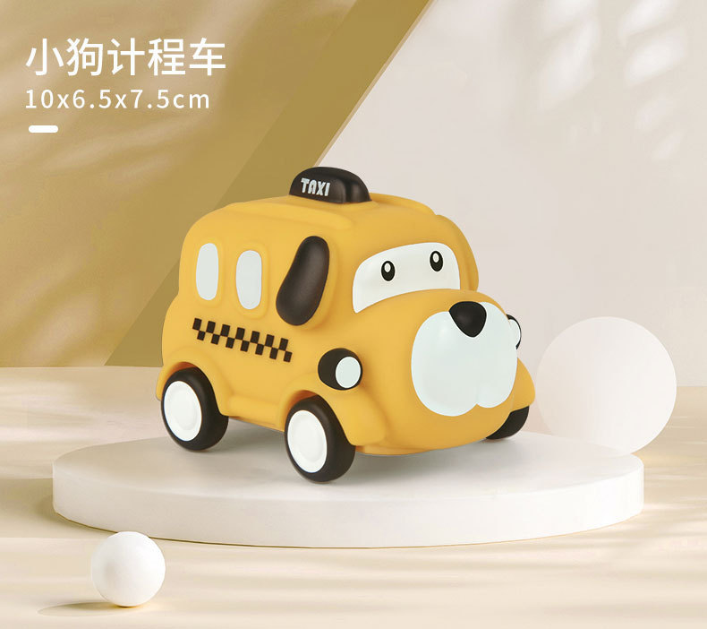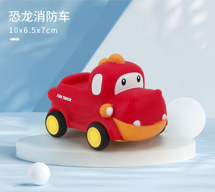 폭발성 만화 장난감 자동차 비닐 동물 관성 자동차 부드러운 고무 공룡 바이트 방지 미니 자동차