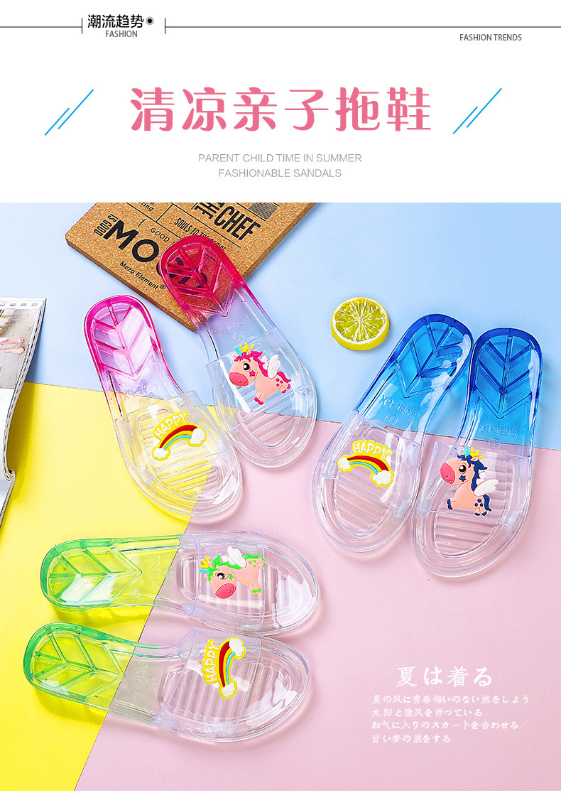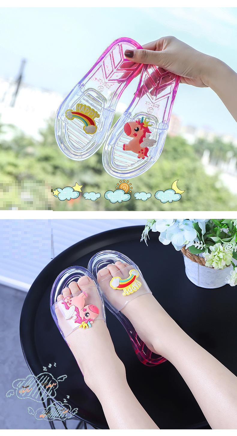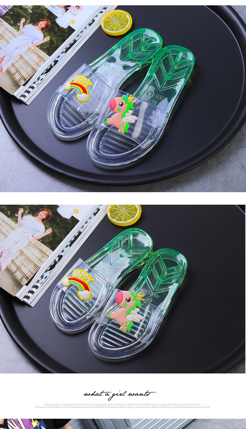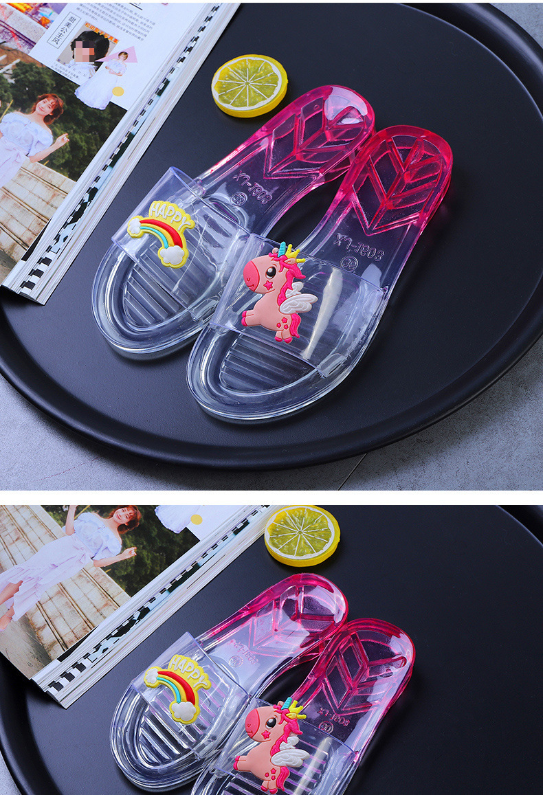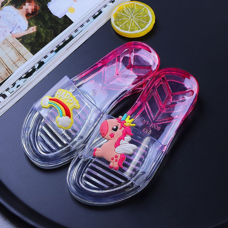 어린이 슬리퍼 부모-어린이 소녀의 유행 경고 소프트 하단 슬라이드 소녀 크리스탈 투명 플랫 샌들 여름
