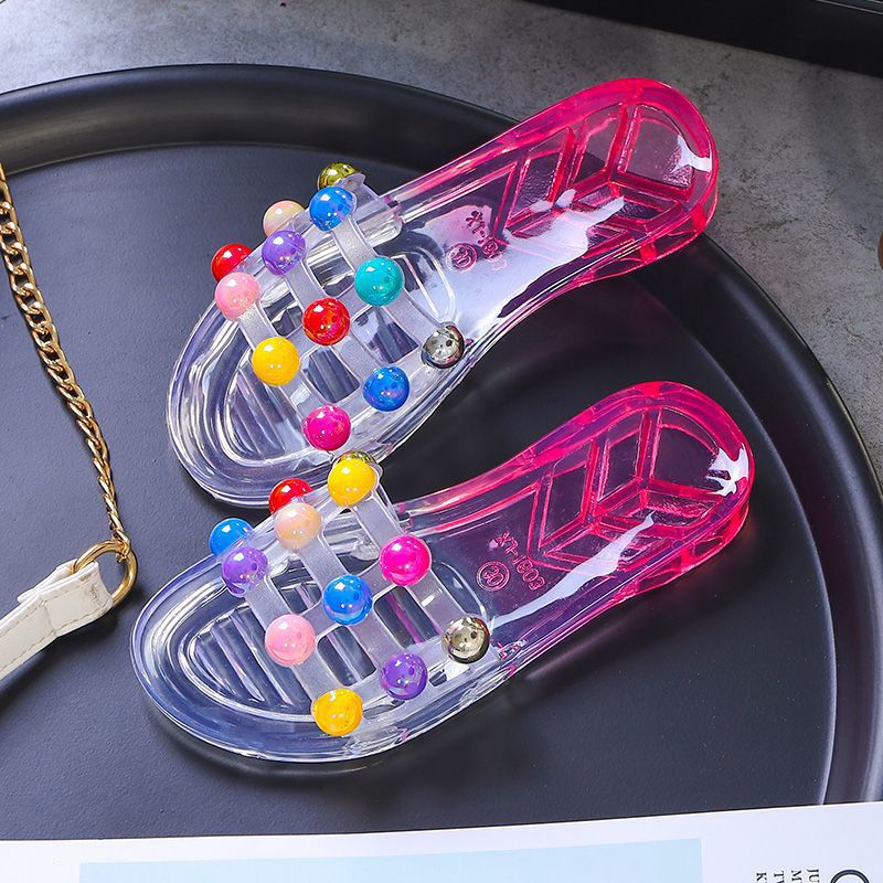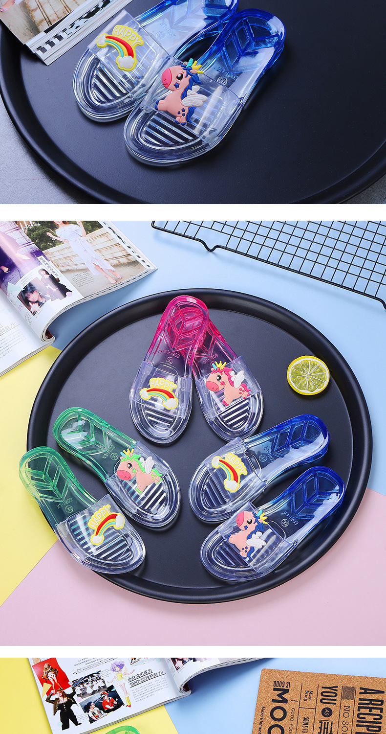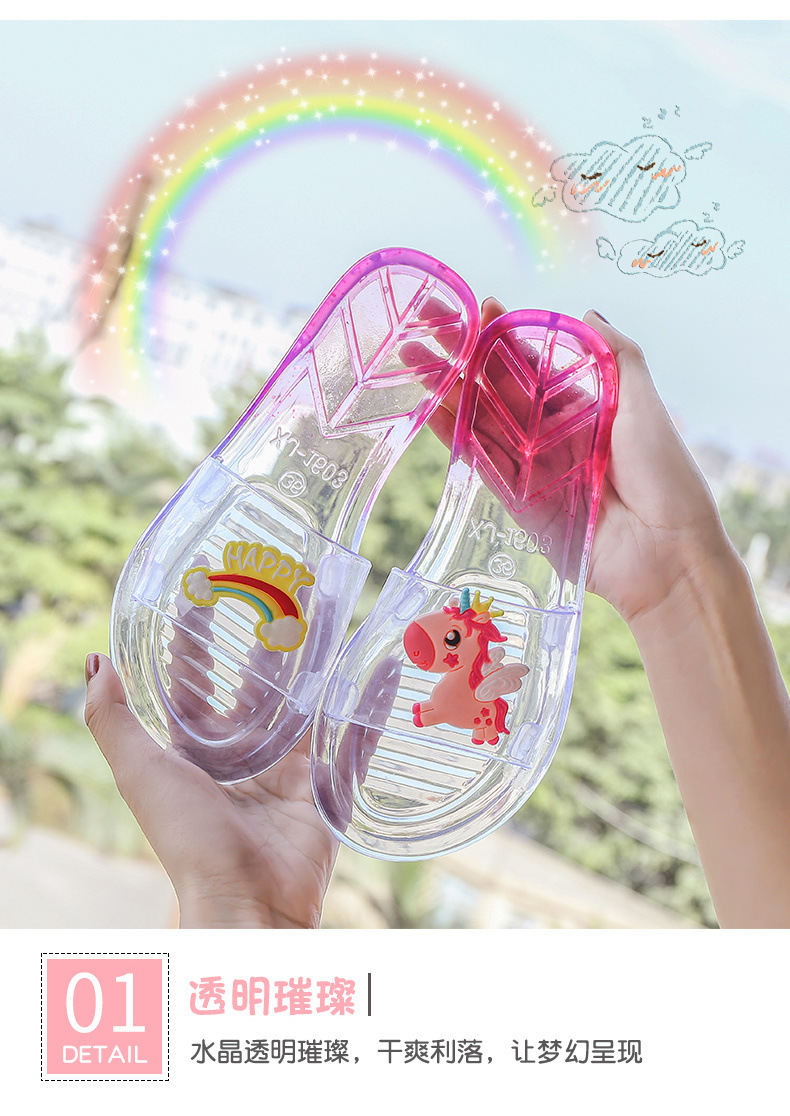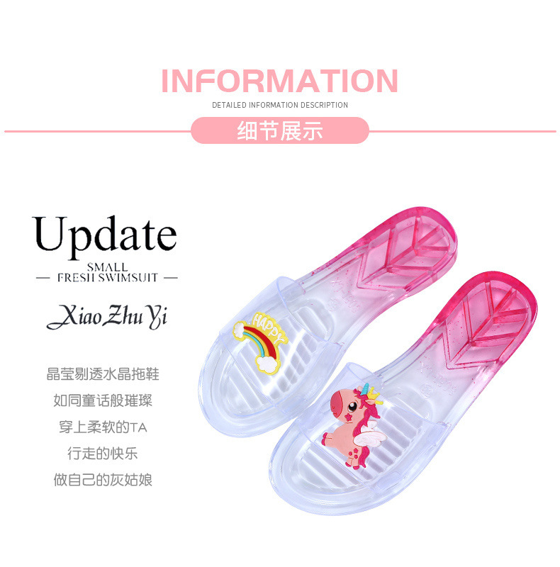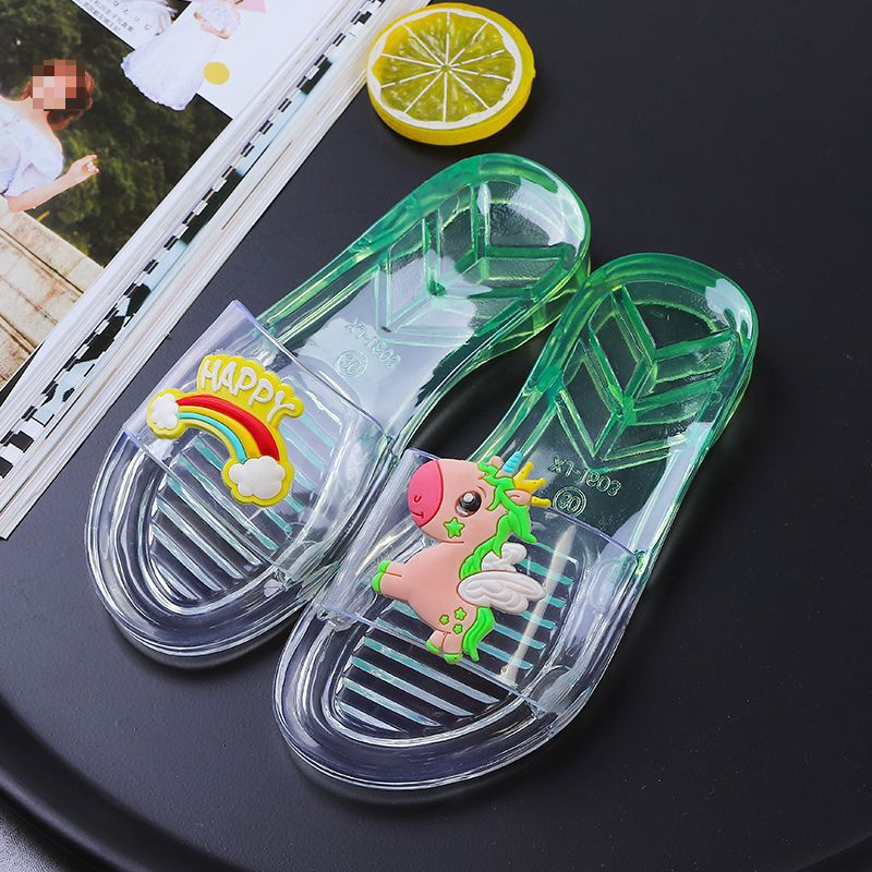 어린이 슬리퍼 부모-어린이 소녀의 유행 경고 소프트 하단 슬라이드 소녀 크리스탈 투명 플랫 샌들 여름