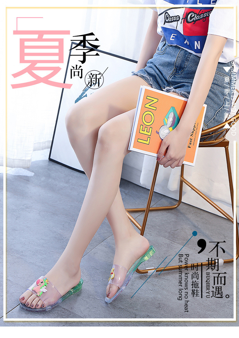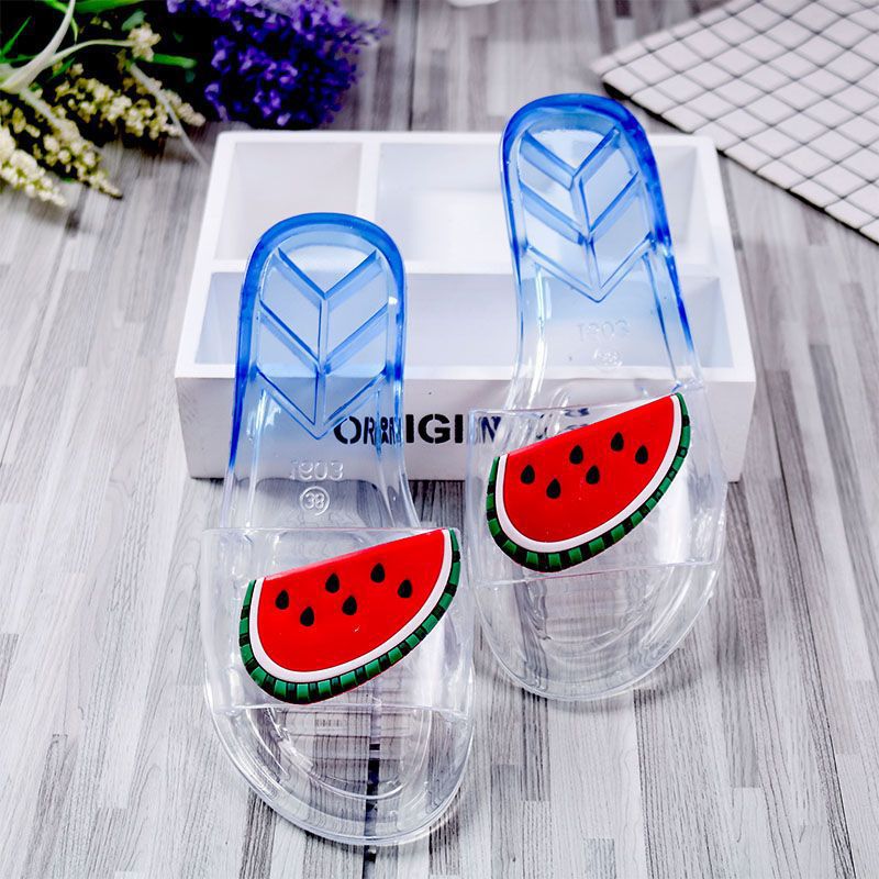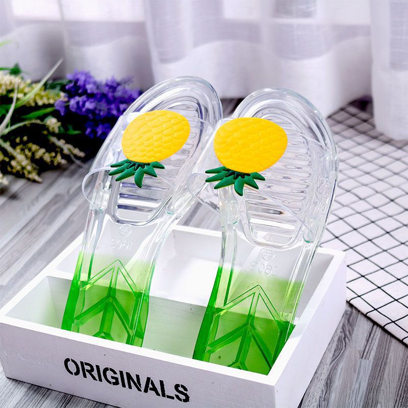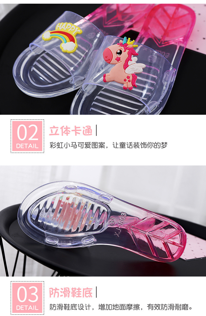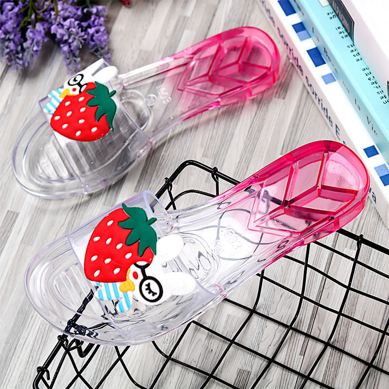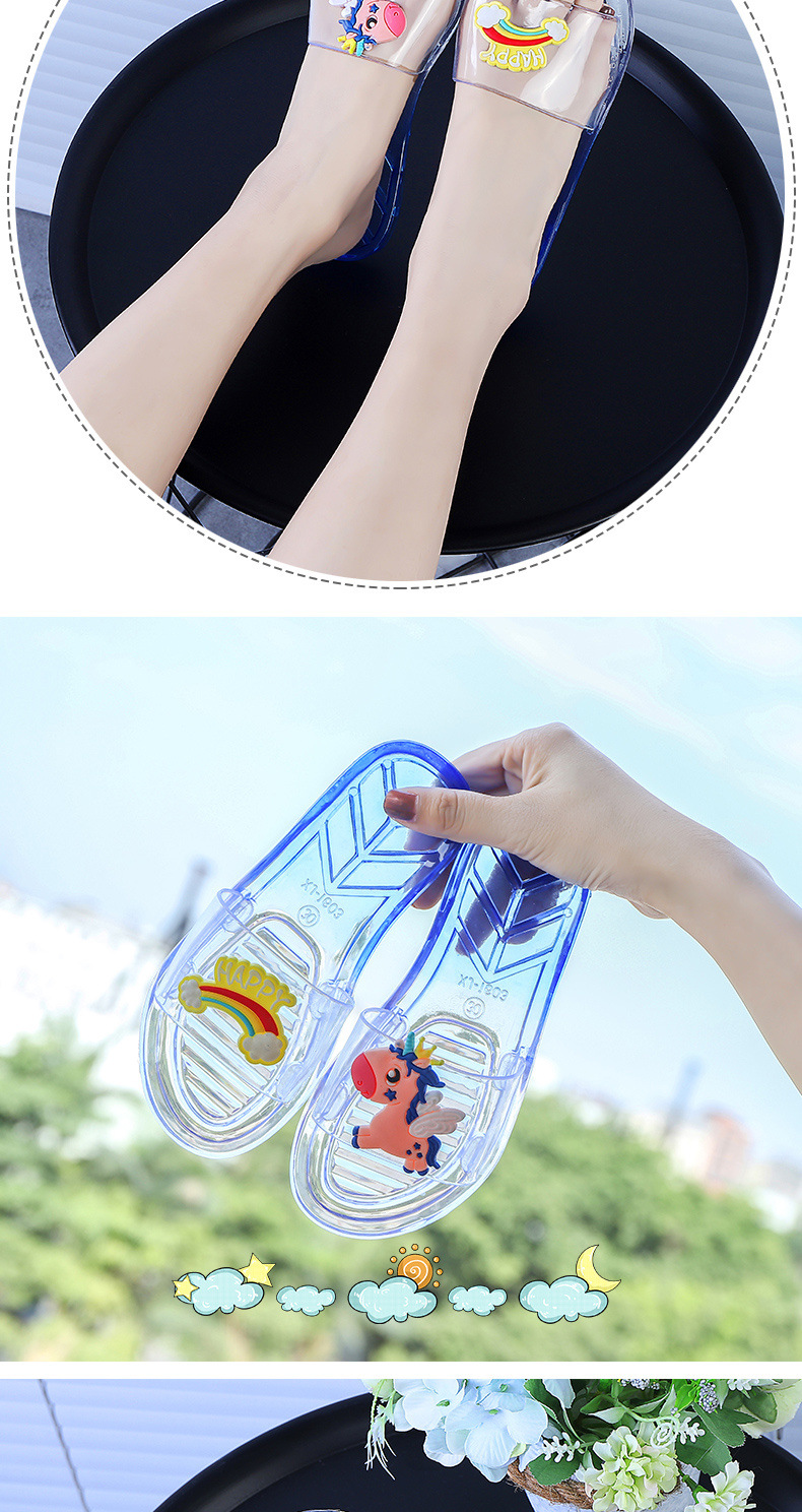 어린이 슬리퍼 부모-어린이 소녀의 유행 경고 소프트 하단 슬라이드 소녀 크리스탈 투명 플랫 샌들 여름
