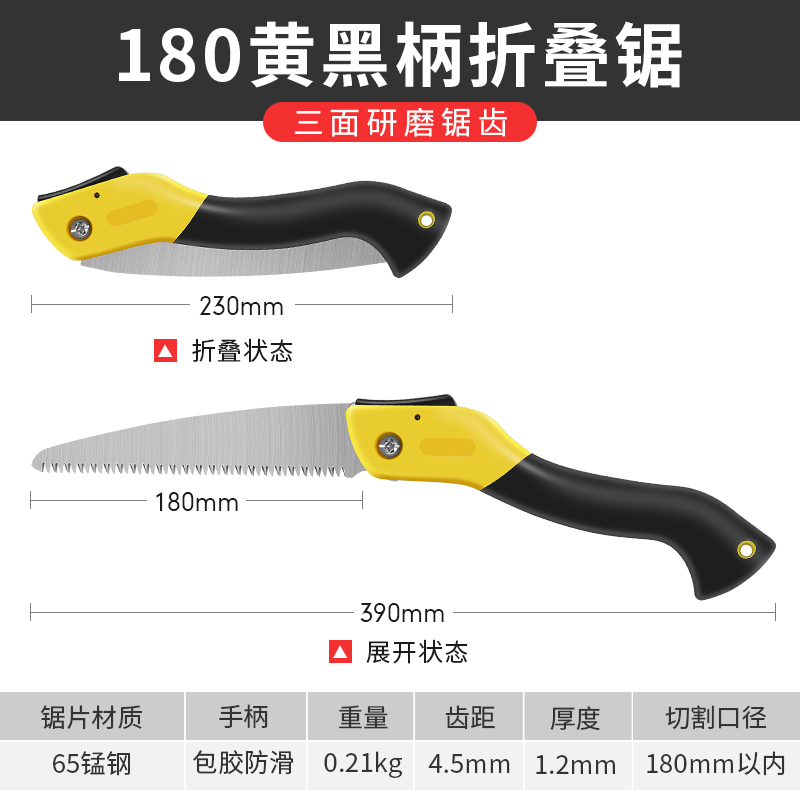 • 180 노란색과 검정색 핸들 접이식 톱