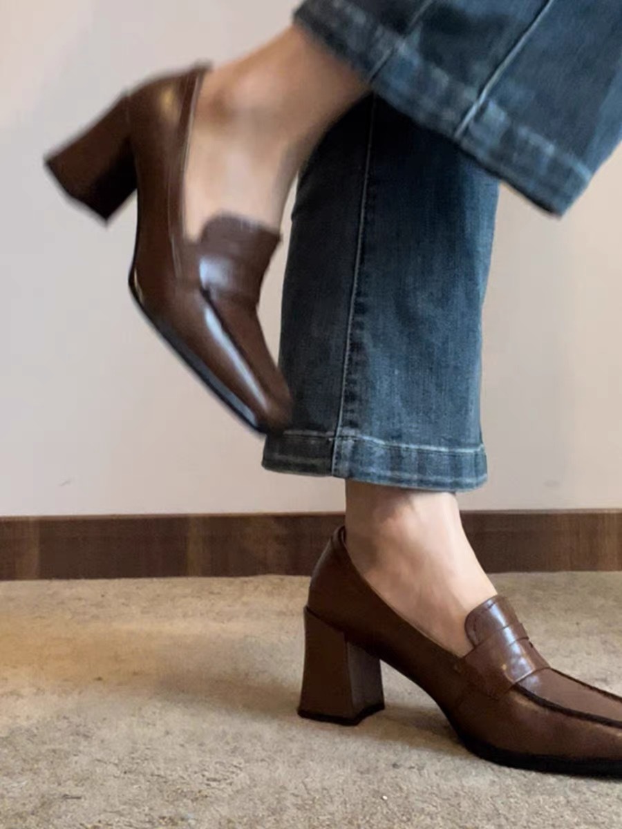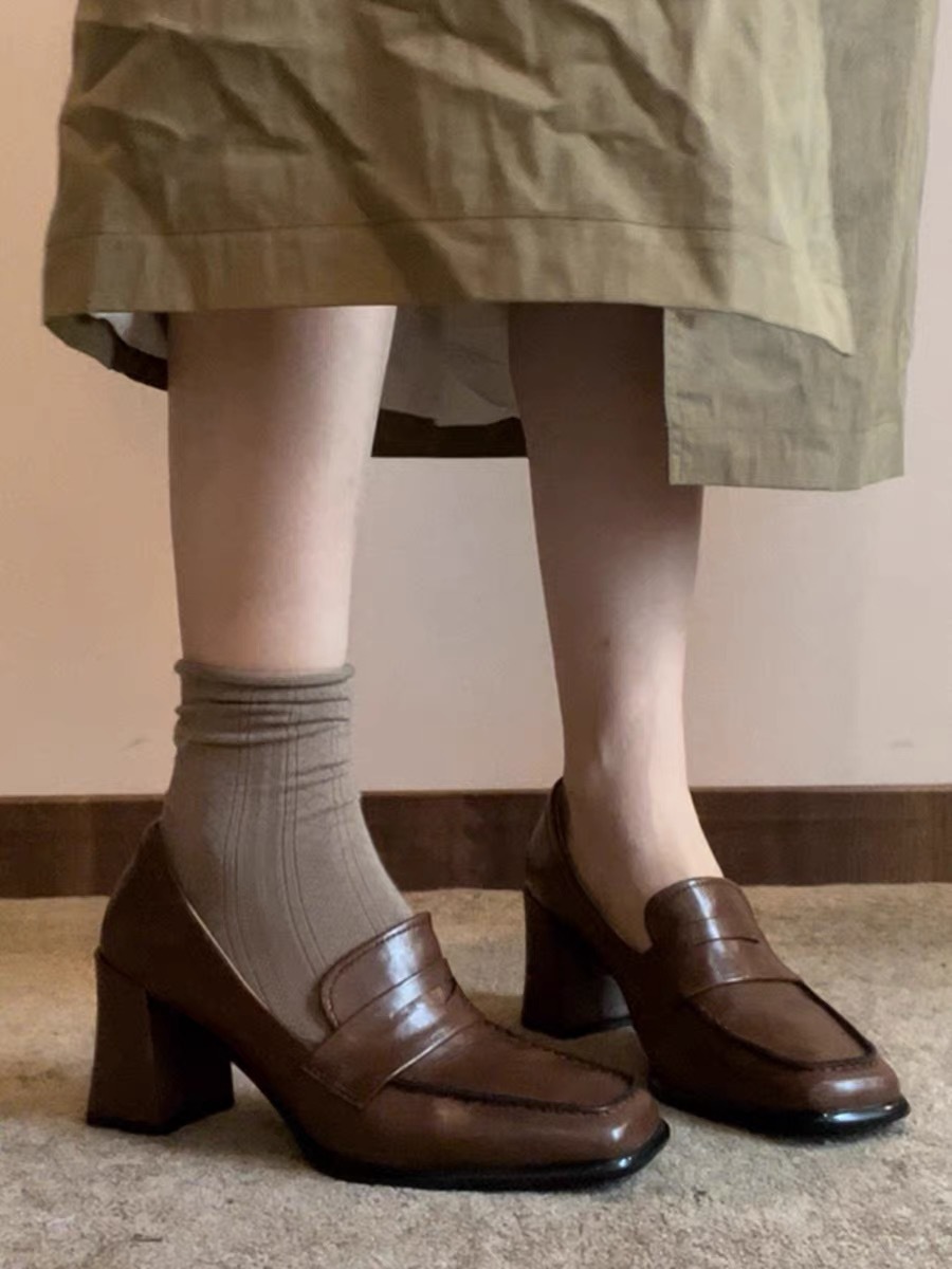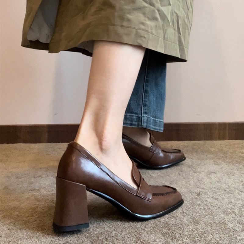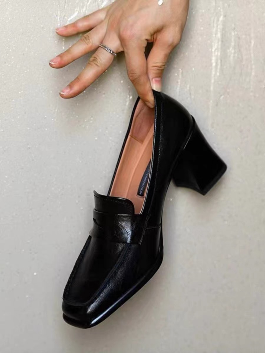 로퍼 여성 원피스 두꺼운 힐 하이힐 영국 스타일 작은 가죽 신발 편안한 우아한 스퀘어 헤드 새로운 블랙 싱글 신발스토어 가기