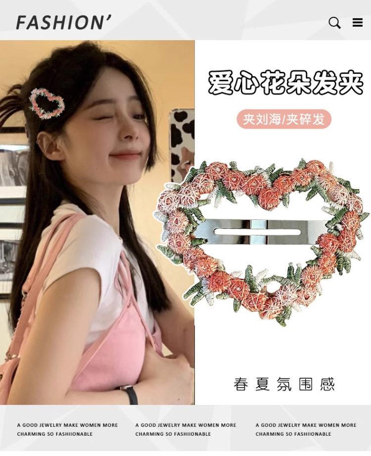목가적 인 복숭아 핑크 꽃 머리핀 여성의 2025 봄 새로운 스타일 신선한 머리 상어 클립 헤어 액세서리 클립스토어 가기