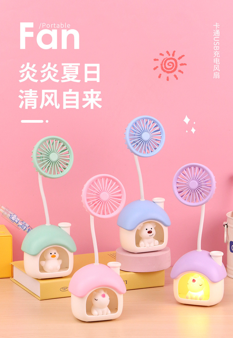 2025 새로운 스타일 접이식 미니 하우스 USB 충전 팬 하우스 작은 책상 램프 기숙사 야간 어린이 선물스토어 가기