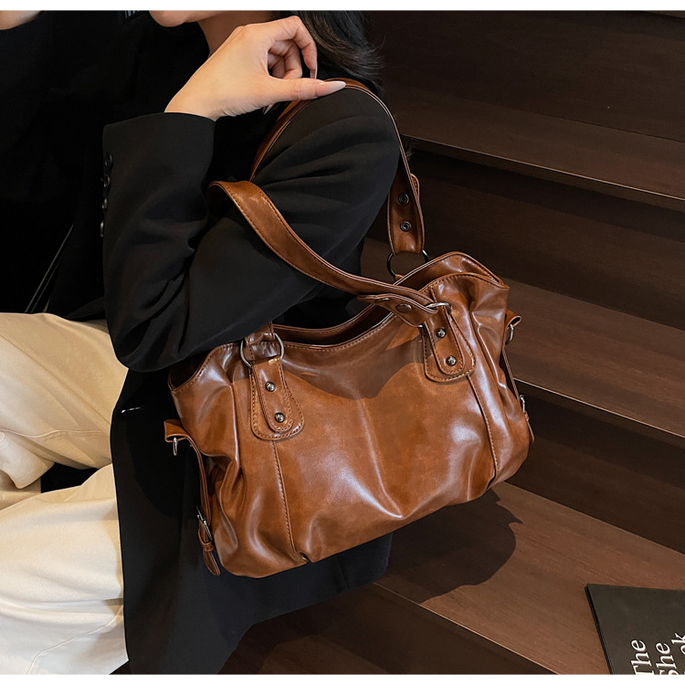 유럽과 미국의 레트로 캐주얼 하이 엔드 니치 숄더 토트 백 대용량 휴대용 유행 올 매치 통근 크로스 바디 백