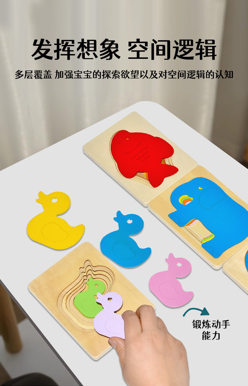 Muzhile 다층 나무 3 차원 동물 직소 퍼즐 보드 어린이 조기 교육 퍼즐 컬러인지 퍼즐 교육 장난감스토어 가기