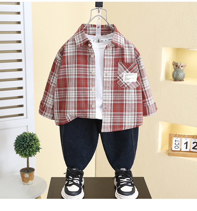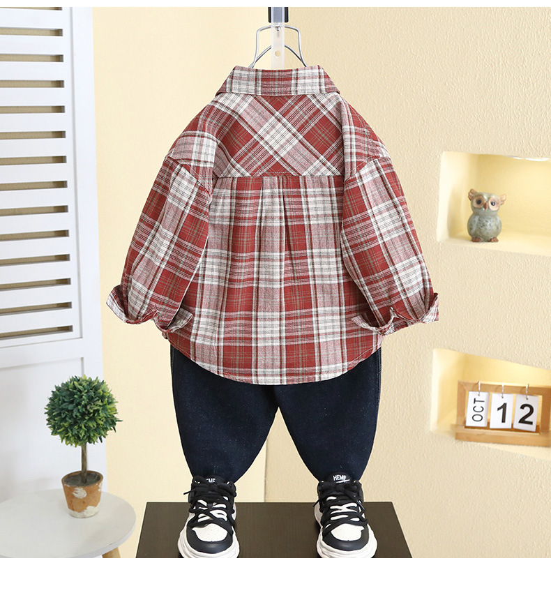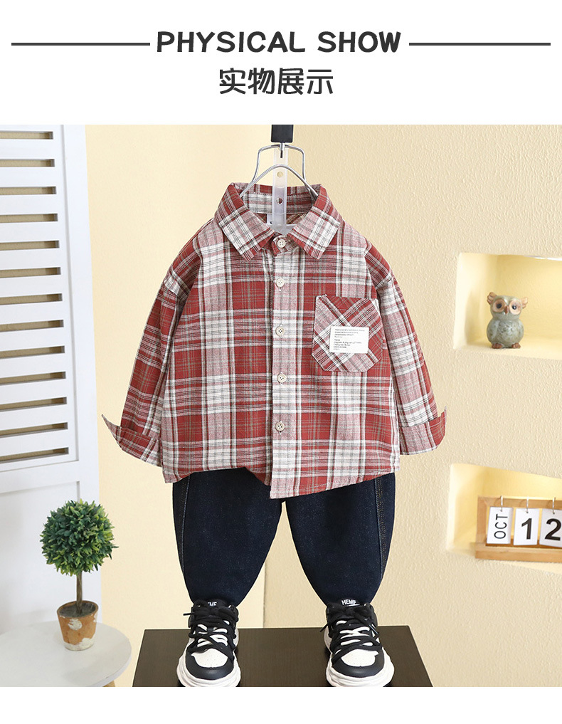 7791 아동복 소년 셔츠 봄 2025 새 아기 봄 한국 코트 어린이 잘 생긴 격자 무늬 셔츠스토어 가기
