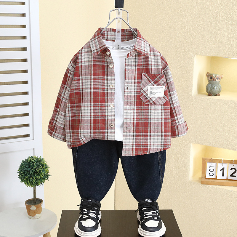 7791 아동복 소년 셔츠 봄 2025 새 아기 봄 한국 코트 어린이 잘 생긴 격자 무늬 셔츠